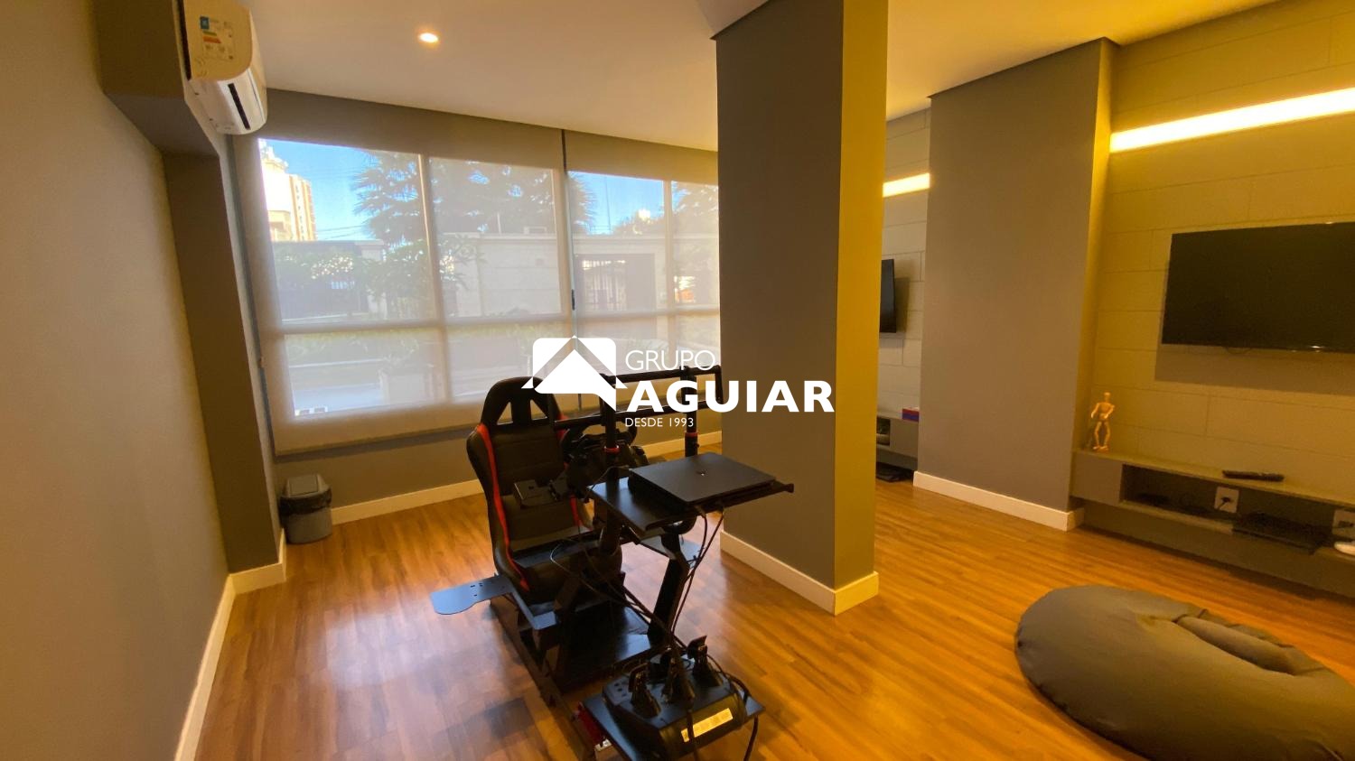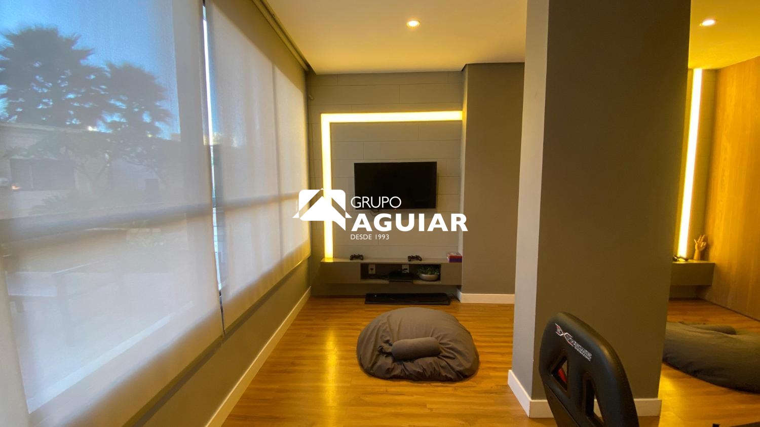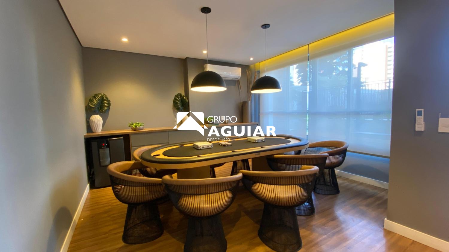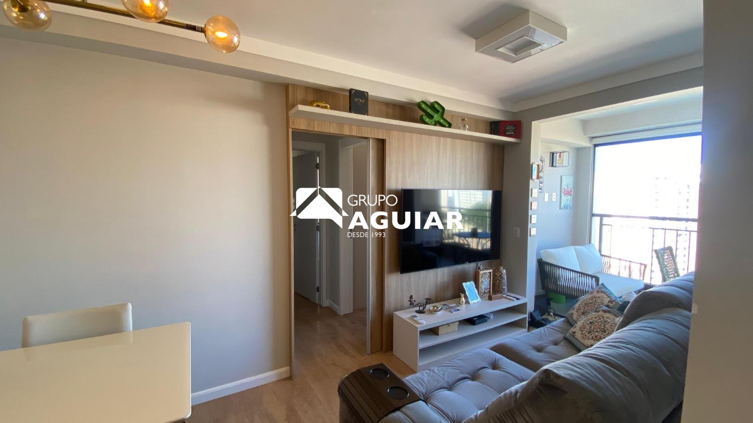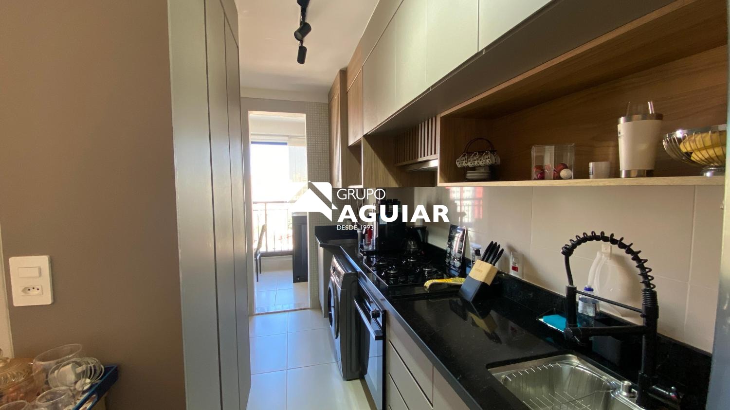 O apartamento possui 64m² muito bem aproveitados, oferecendo dois quartos, sendo uma suíte com closet, além de um banheiro social. A área social integra sala de jantar e sala de TV, criando um espaço moderno e acolhedor. A cozinha é equipada com armários planejados de excelente qualidade, cooktop, forno e coifa, e conta com lavanderia integrada. A varanda gourmet, com linda vista e churrasqueira elétrica, é ideal para receber amigos e familiares. O imóvel recebe o agradável sol da manhã, possui ar-condicionado em todos os ambientes e foi totalmente planejado com marcenaria de alto padrão, incluindo persianas e luminárias.