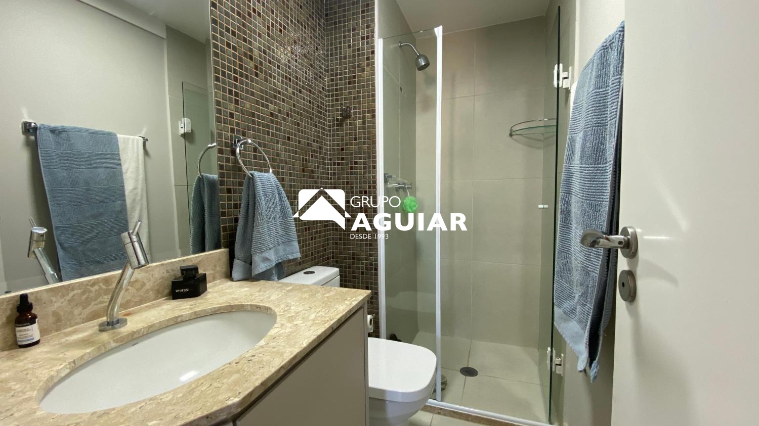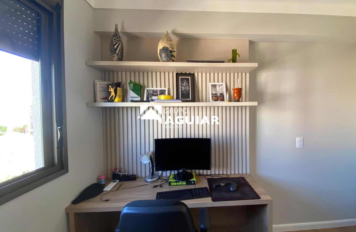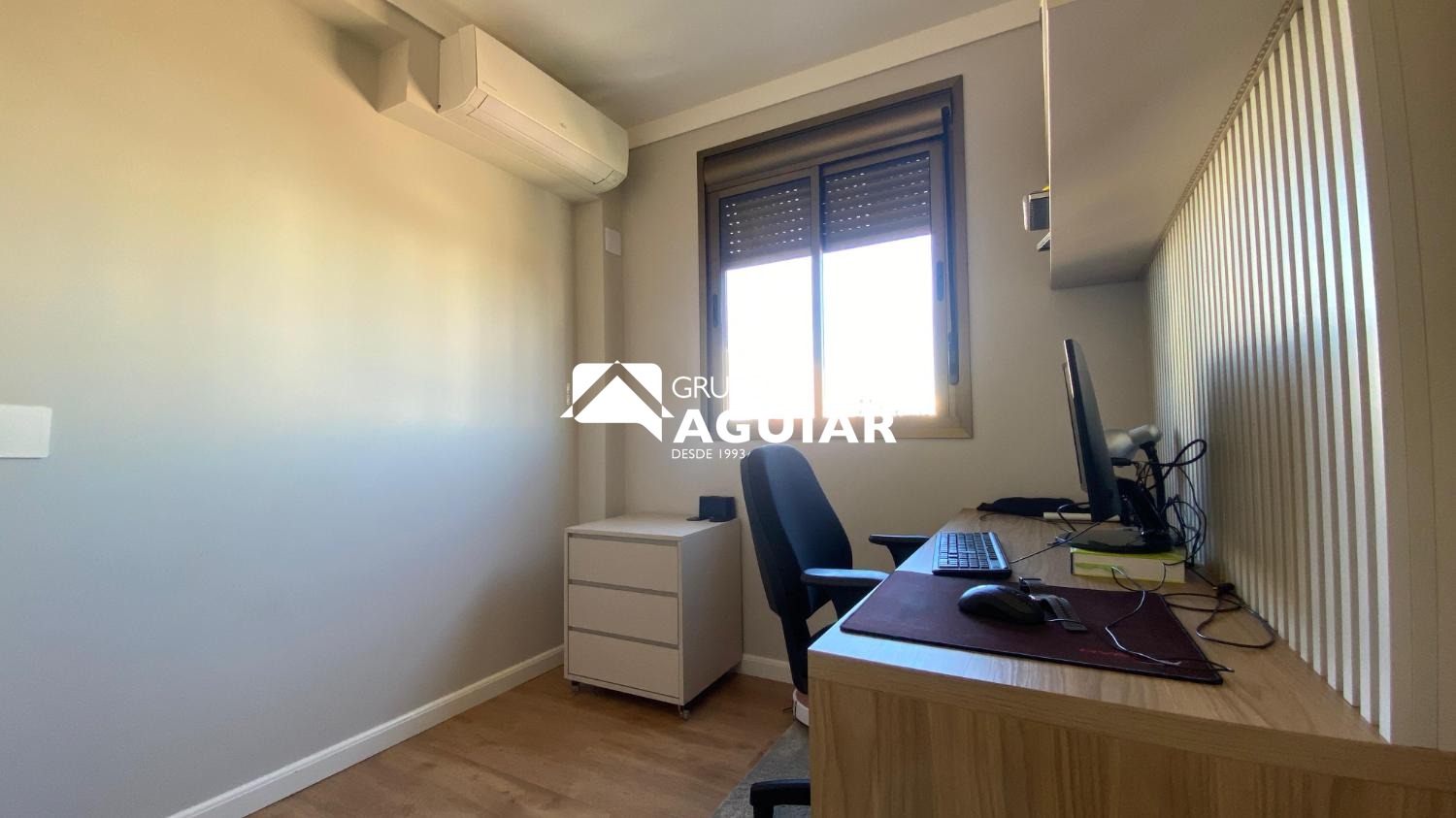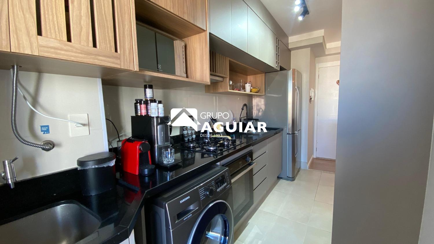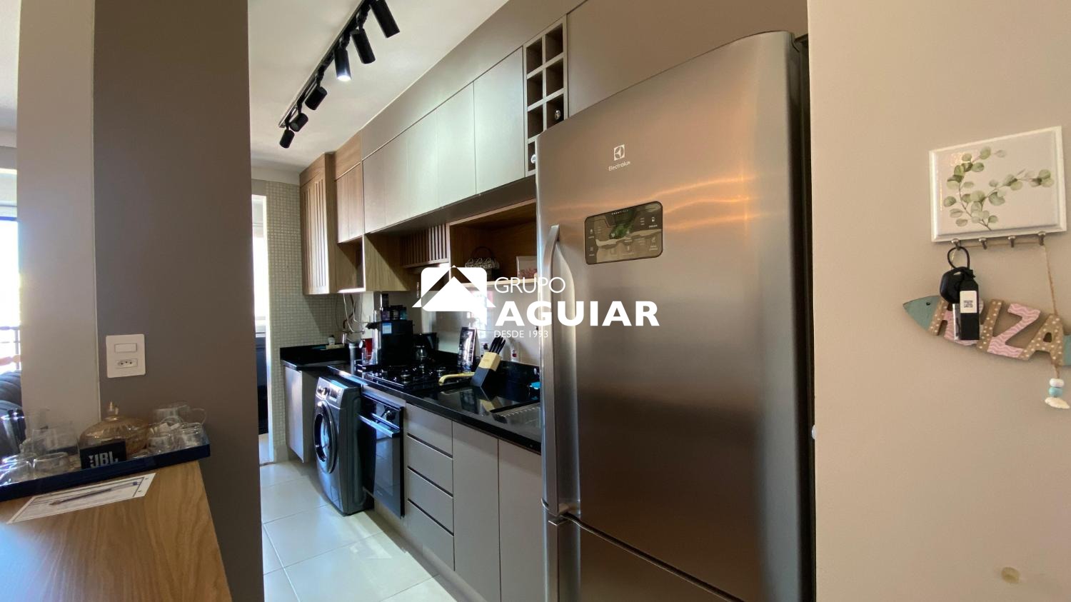 O apartamento possui 64m² muito bem aproveitados, oferecendo dois quartos, sendo uma suíte com closet, além de um banheiro social. A área social integra sala de jantar e sala de TV, criando um espaço moderno e acolhedor. A cozinha é equipada com armários planejados de excelente qualidade, cooktop, forno e coifa, e conta com lavanderia integrada. A varanda gourmet, com linda vista e churrasqueira elétrica, é ideal para receber amigos e familiares. O imóvel recebe o agradável sol da manhã, possui ar-condicionado em todos os ambientes e foi totalmente planejado com marcenaria de alto padrão, incluindo persianas e luminárias.