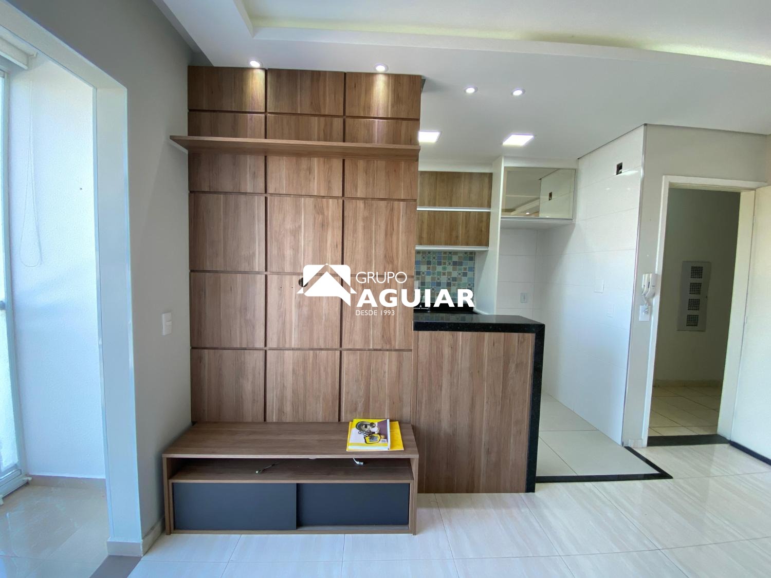 Lindo apartamento com 02 dormitórios, sendo um deles com armário planejado, cabeceira e luminárias. A área social conta com sala de TV integrada à sala de jantar, proporcionando amplitude e conforto, além de uma cozinha planejada equipada com fogão e coifa.