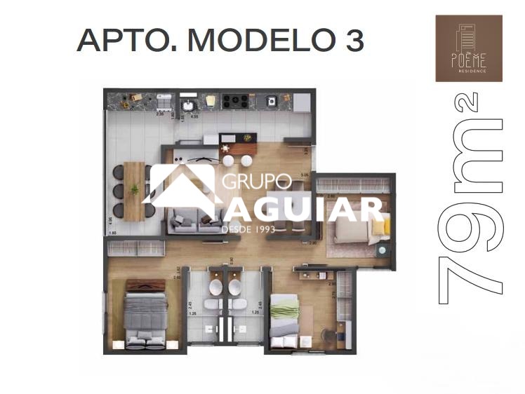 Apartamento de 3 Dormitórios com Suíte à Venda – 79 m² – 2 Vagas – Poème Residence – Valinhos/SP