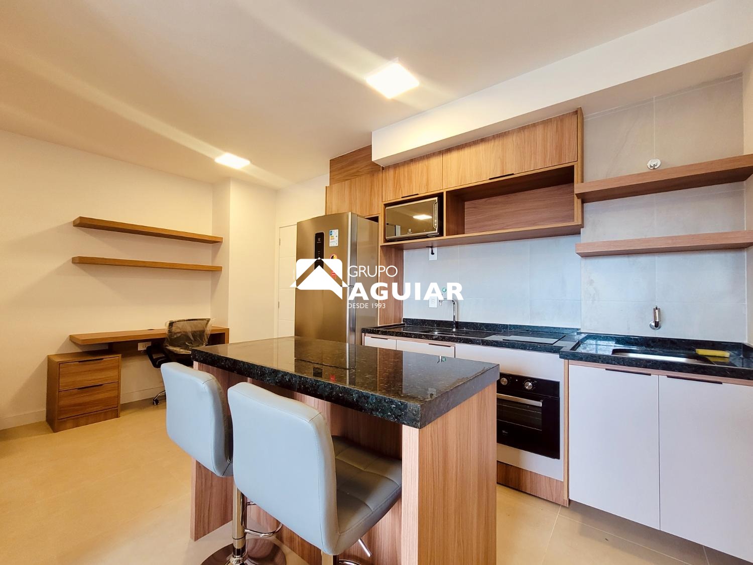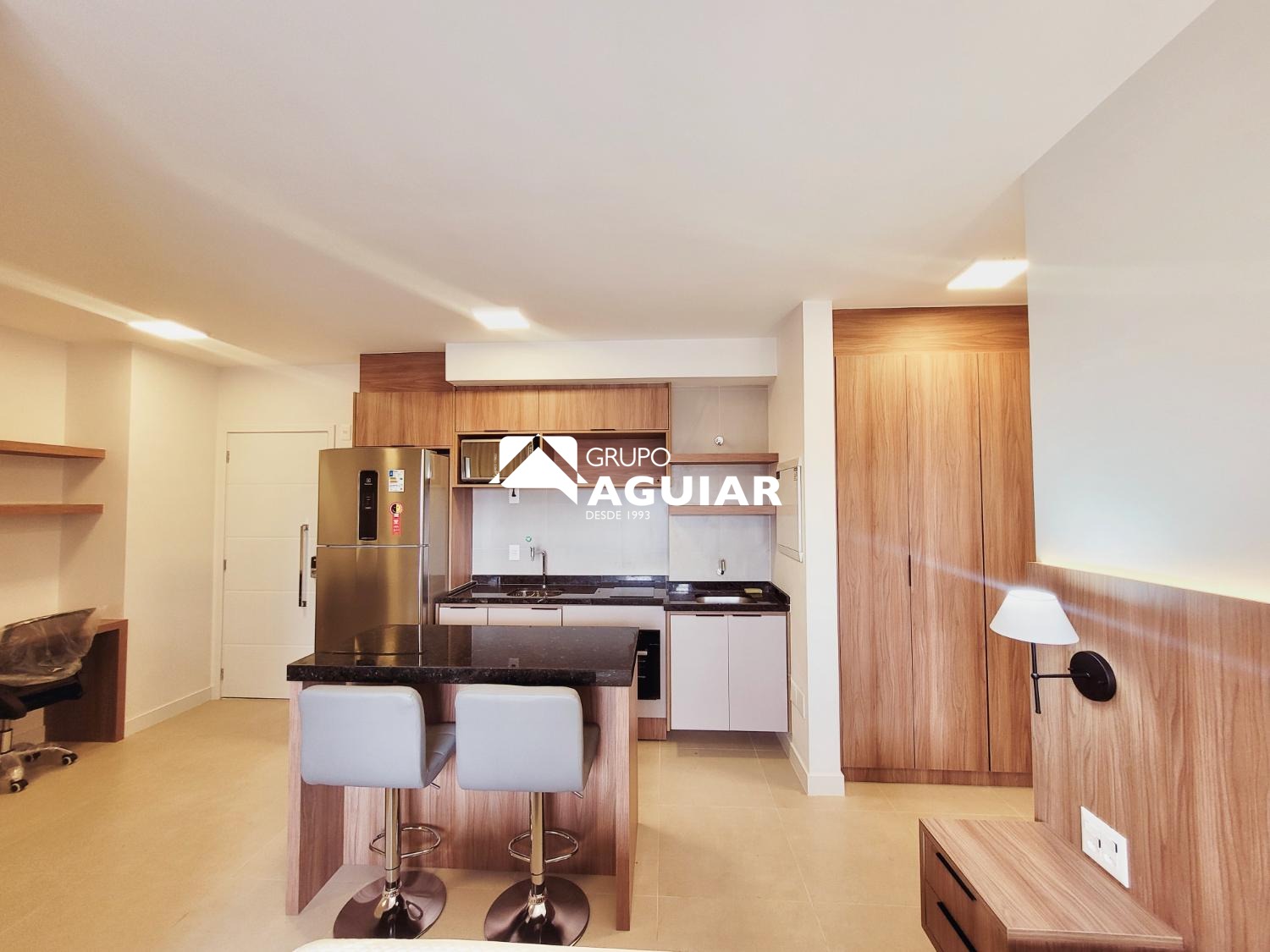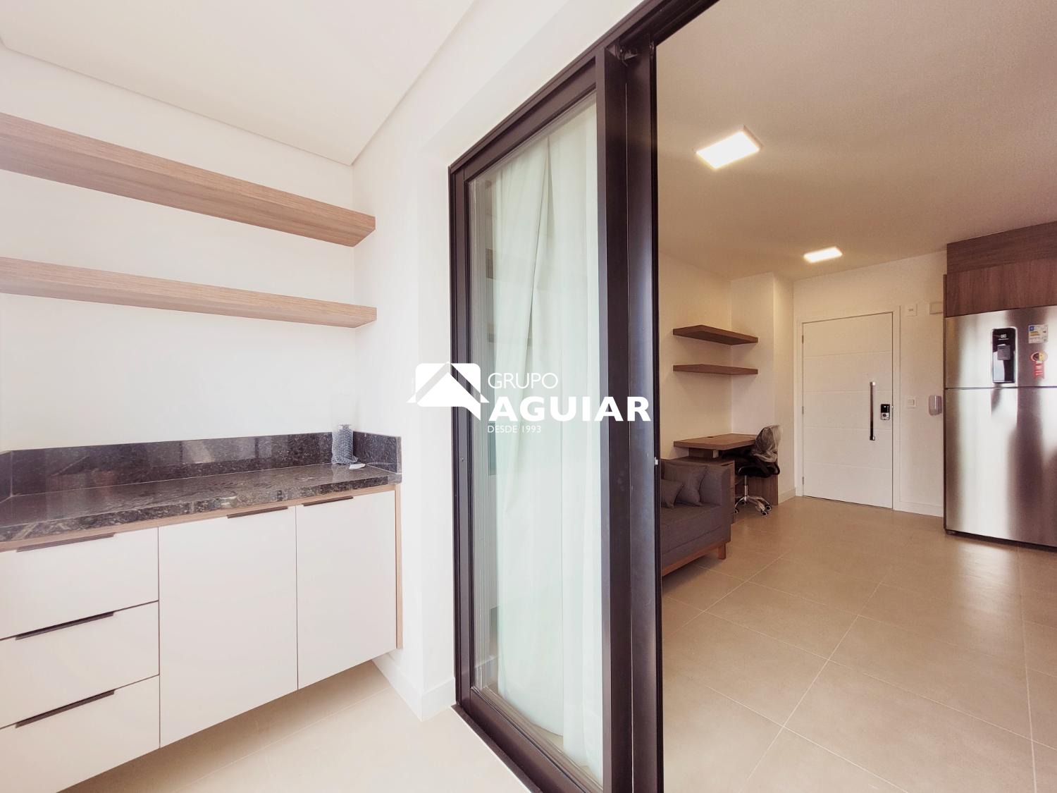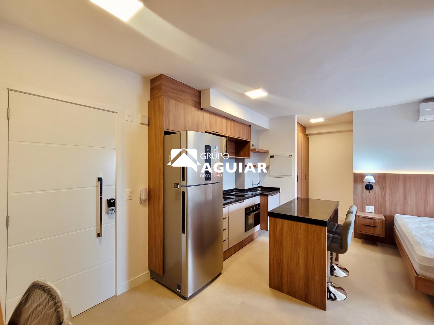 Este apartamento com 46M no formato studio é entregue totalmente mobiliado e pronto para morar, sem necessidade de trazer móveis ou eletrodomésticos., varanda com ponto para churrasco (grill) . Possui acabamento em piso porcelanato em todos os ambientes, fechadura biométrica com senha na porta de entrada e infraestrutura completa para a instalação de ar-condicionado. A vaga de garagem conta com infraestrutura elétrica e medição individual de consumo.