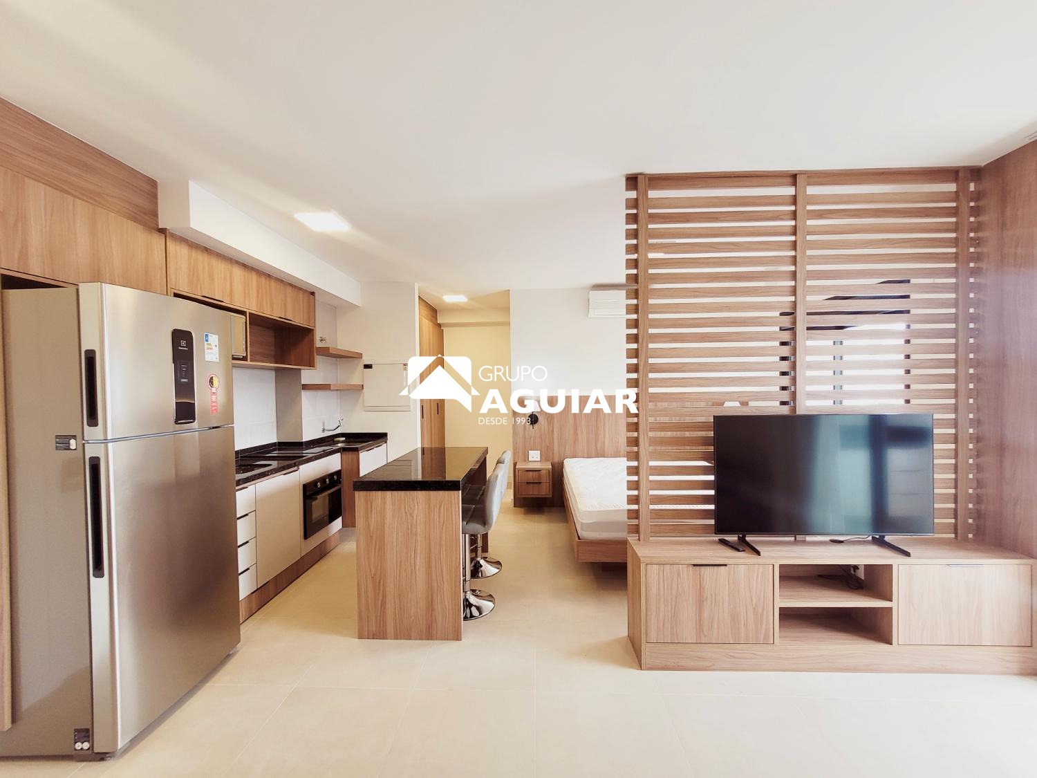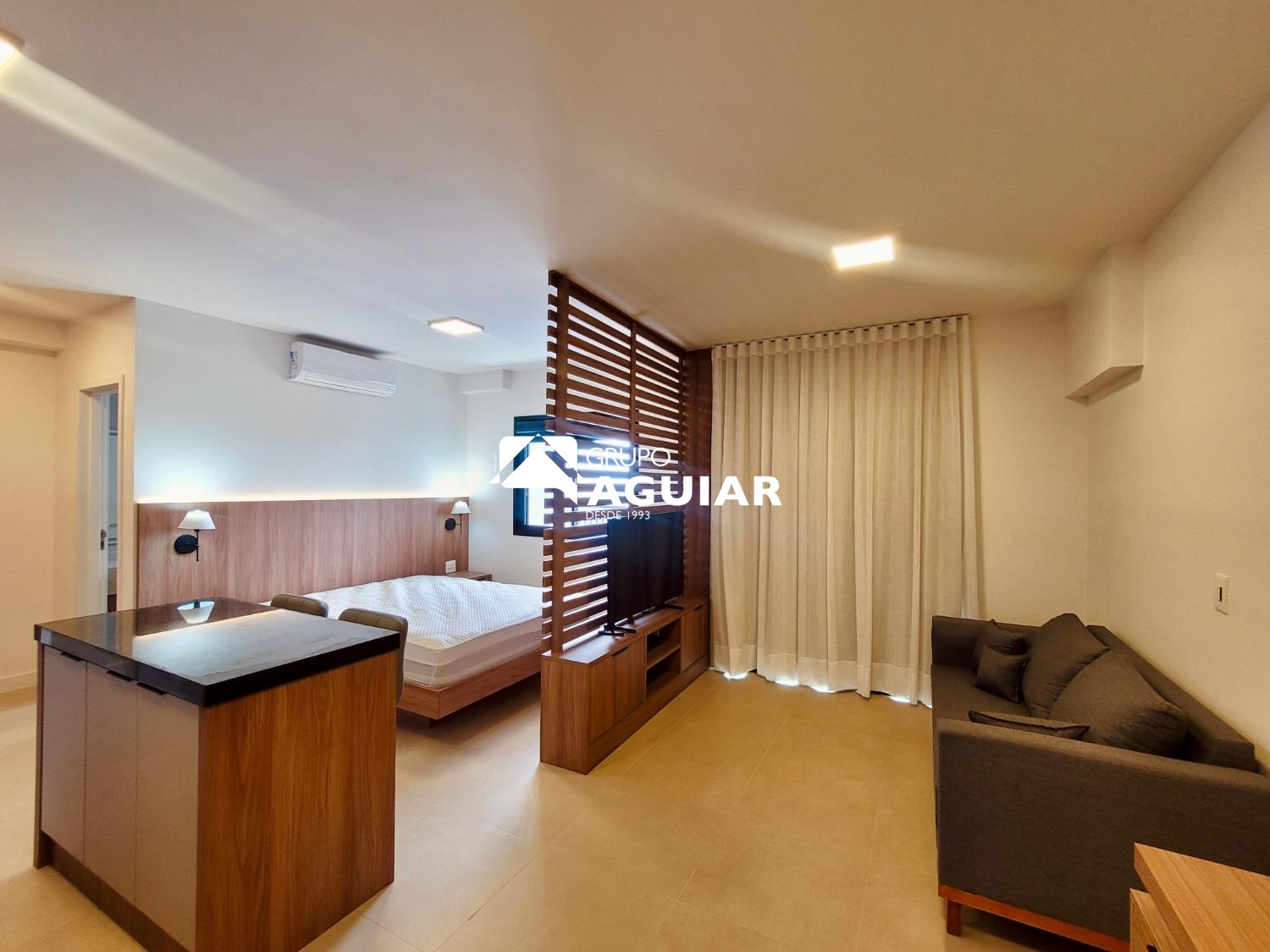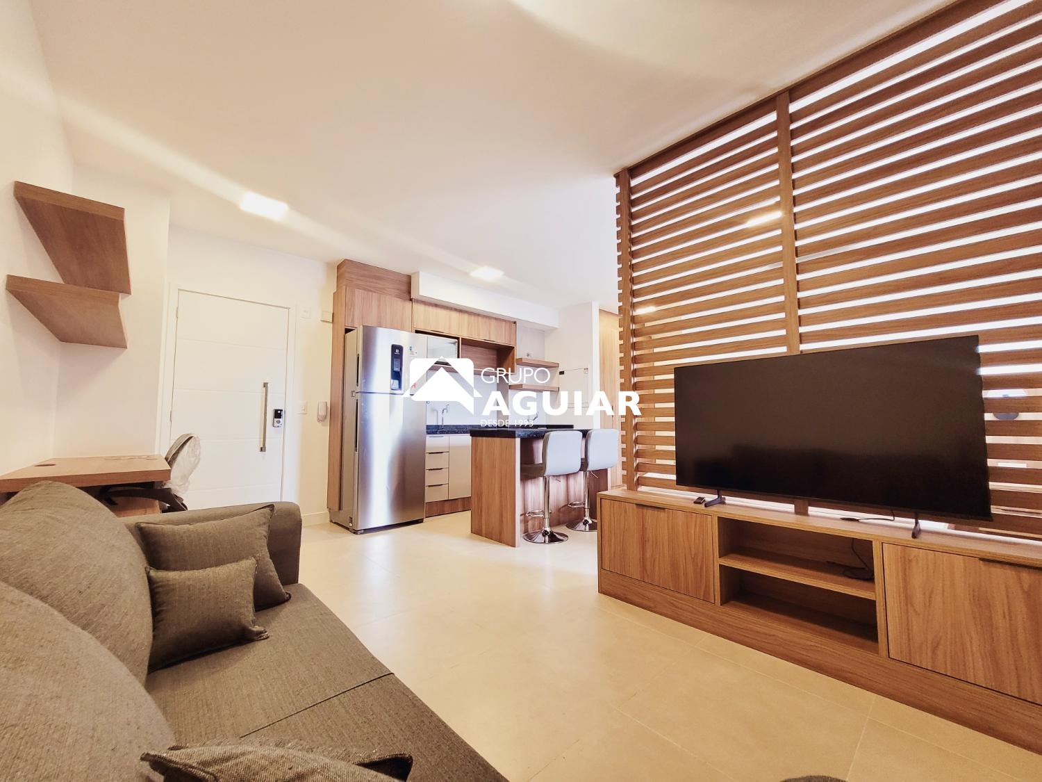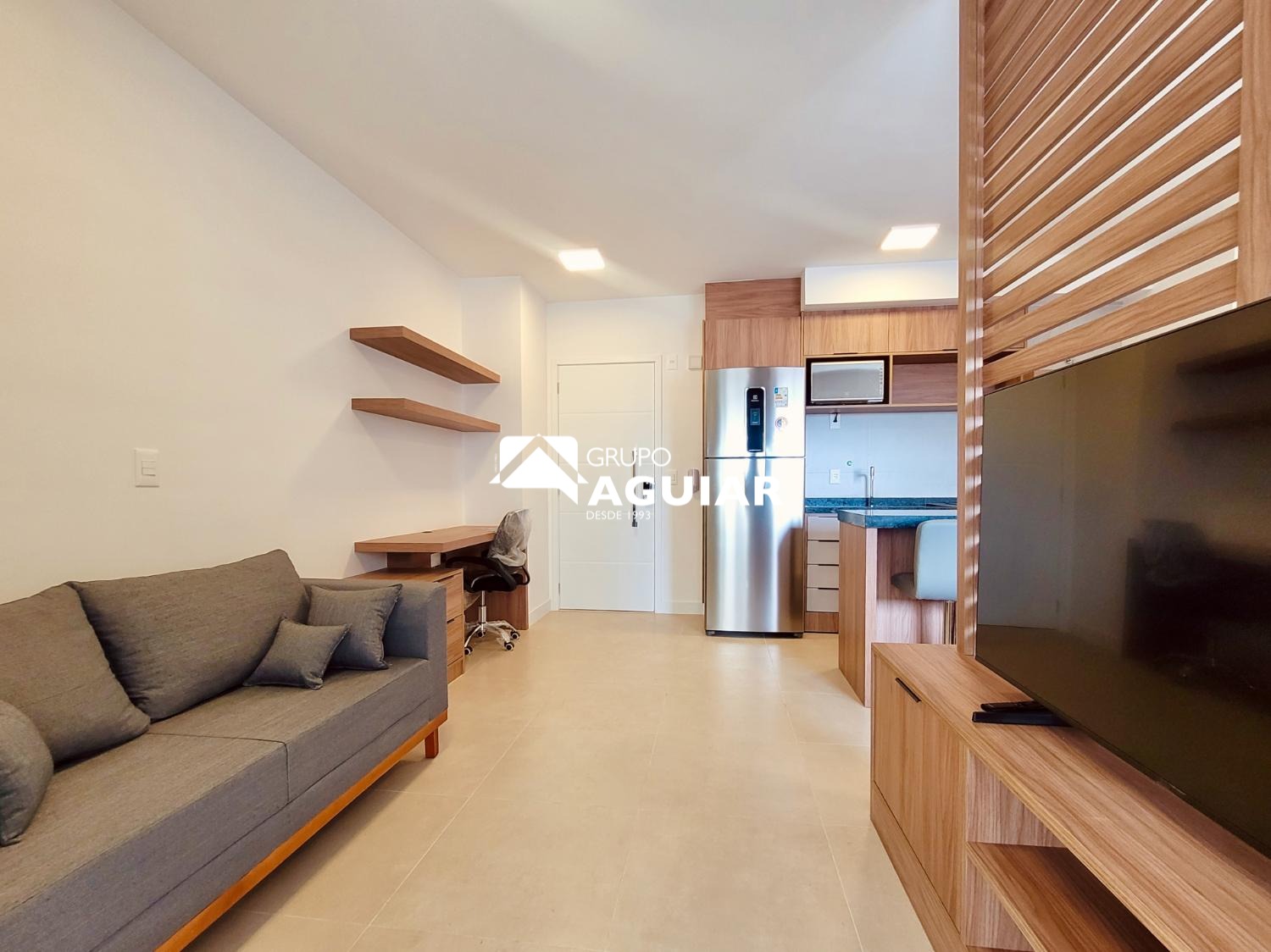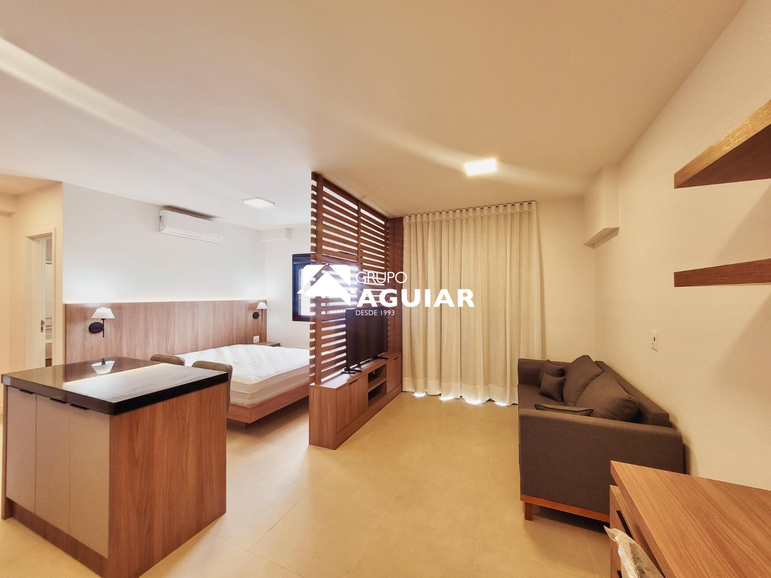 Este apartamento com 46M no formato studio é entregue totalmente mobiliado e pronto para morar, sem necessidade de trazer móveis ou eletrodomésticos., varanda com ponto para churrasco (grill) . Possui acabamento em piso porcelanato em todos os ambientes, fechadura biométrica com senha na porta de entrada e infraestrutura completa para a instalação de ar-condicionado. A vaga de garagem conta com infraestrutura elétrica e medição individual de consumo.