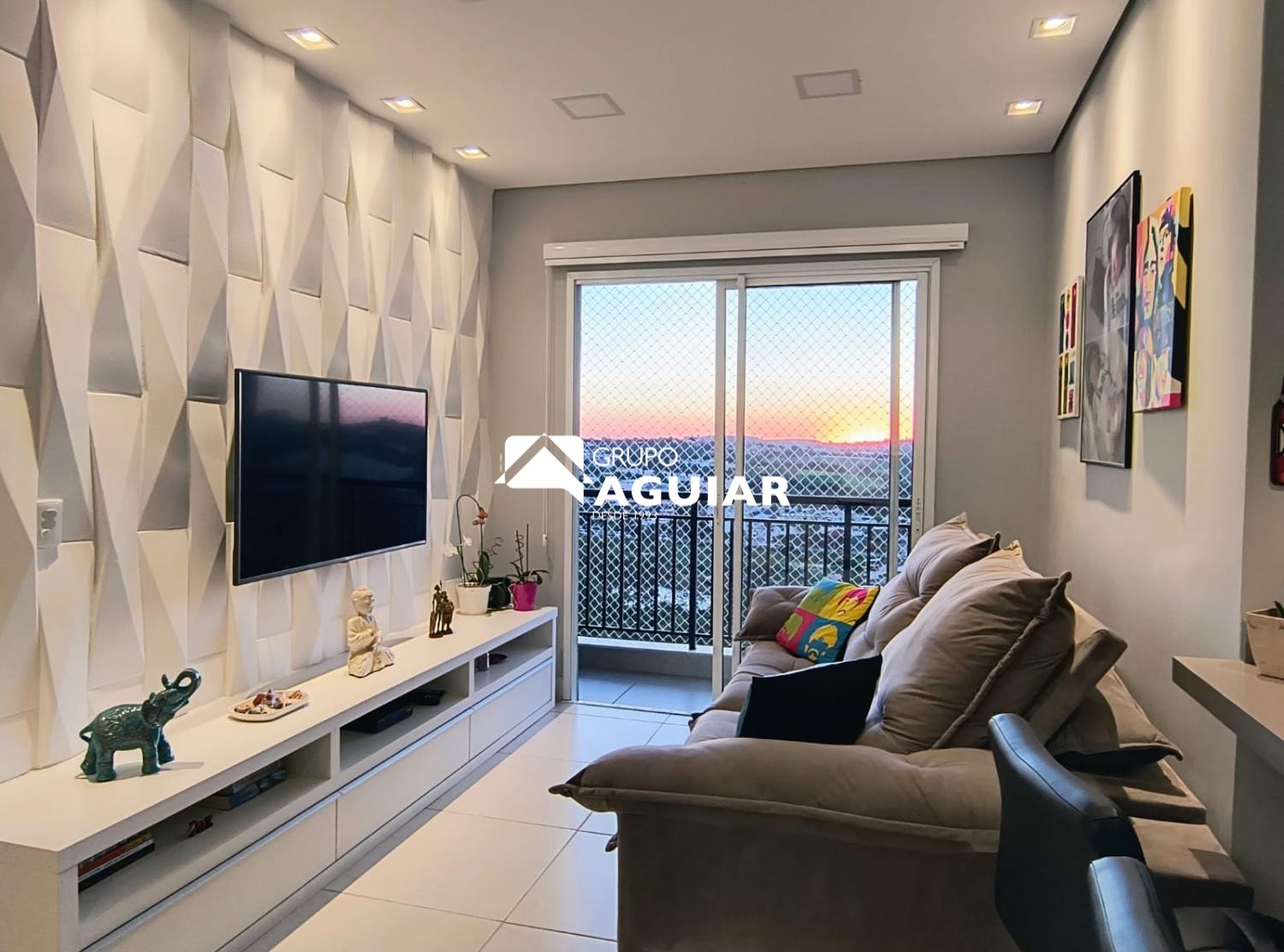 O apartamento possui 2 dormitórios, sendo 1 suíte, com armários planejados, além de sala para dois ambientes, criando um espaço ideal para receber visitas e aproveitar momentos em família.