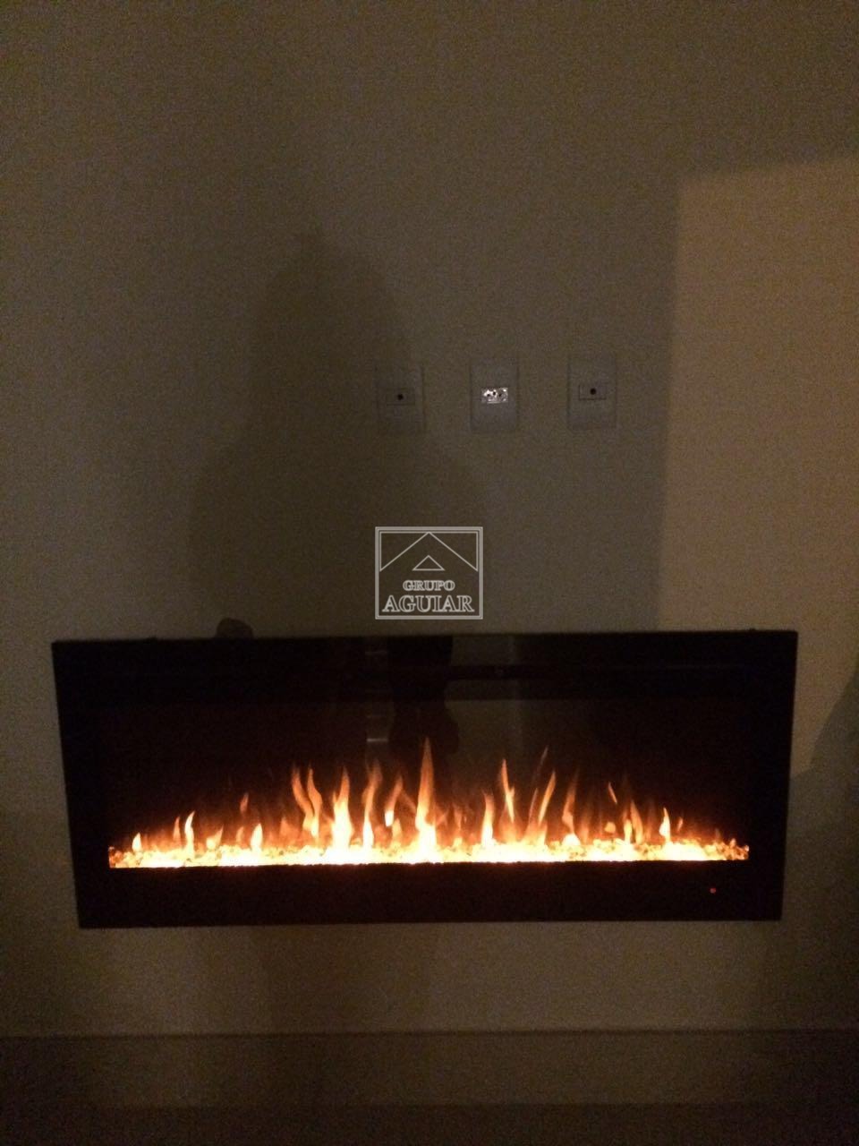Sala de estar com lareira, sala de jantar e ampla sala de TV;