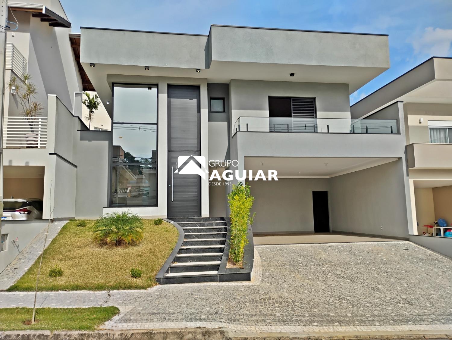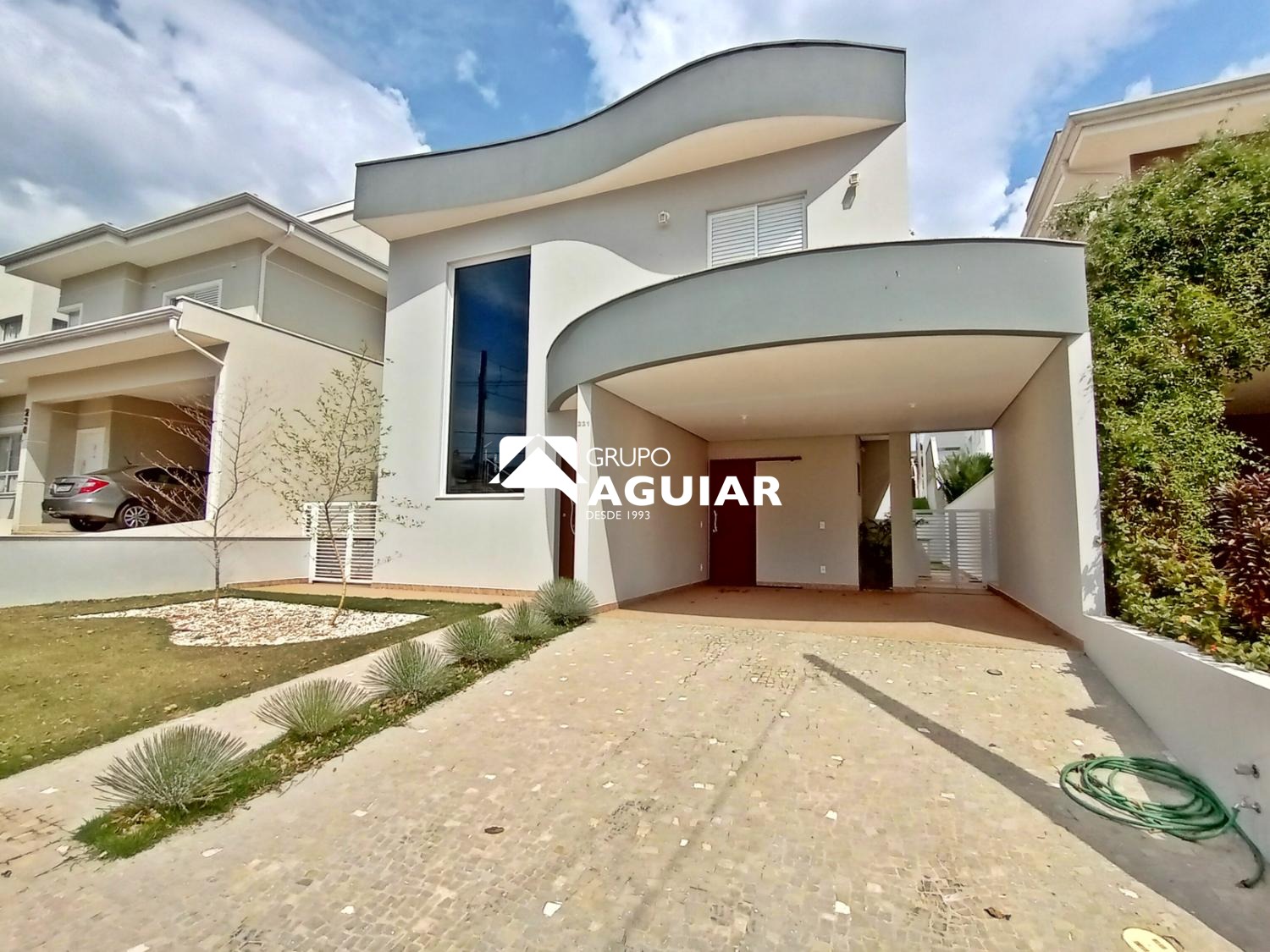 Localizada no Portal do Jequitibá, condomínio com segurança 24 horas, controle de acesso e excelente padrão construtivo, a residência une arquitetura contemporânea, integração de ambientes e acabamento de alto nível.
