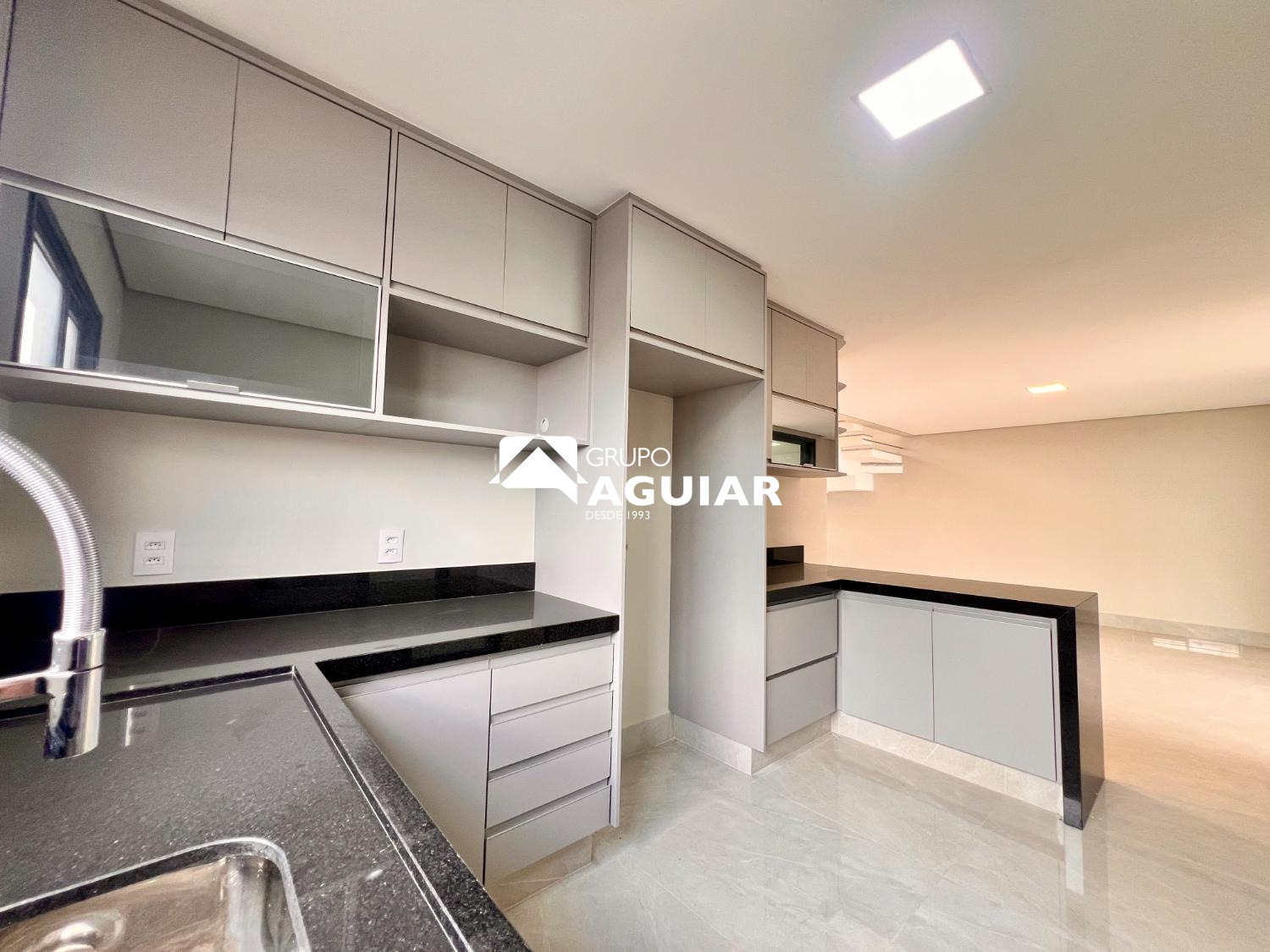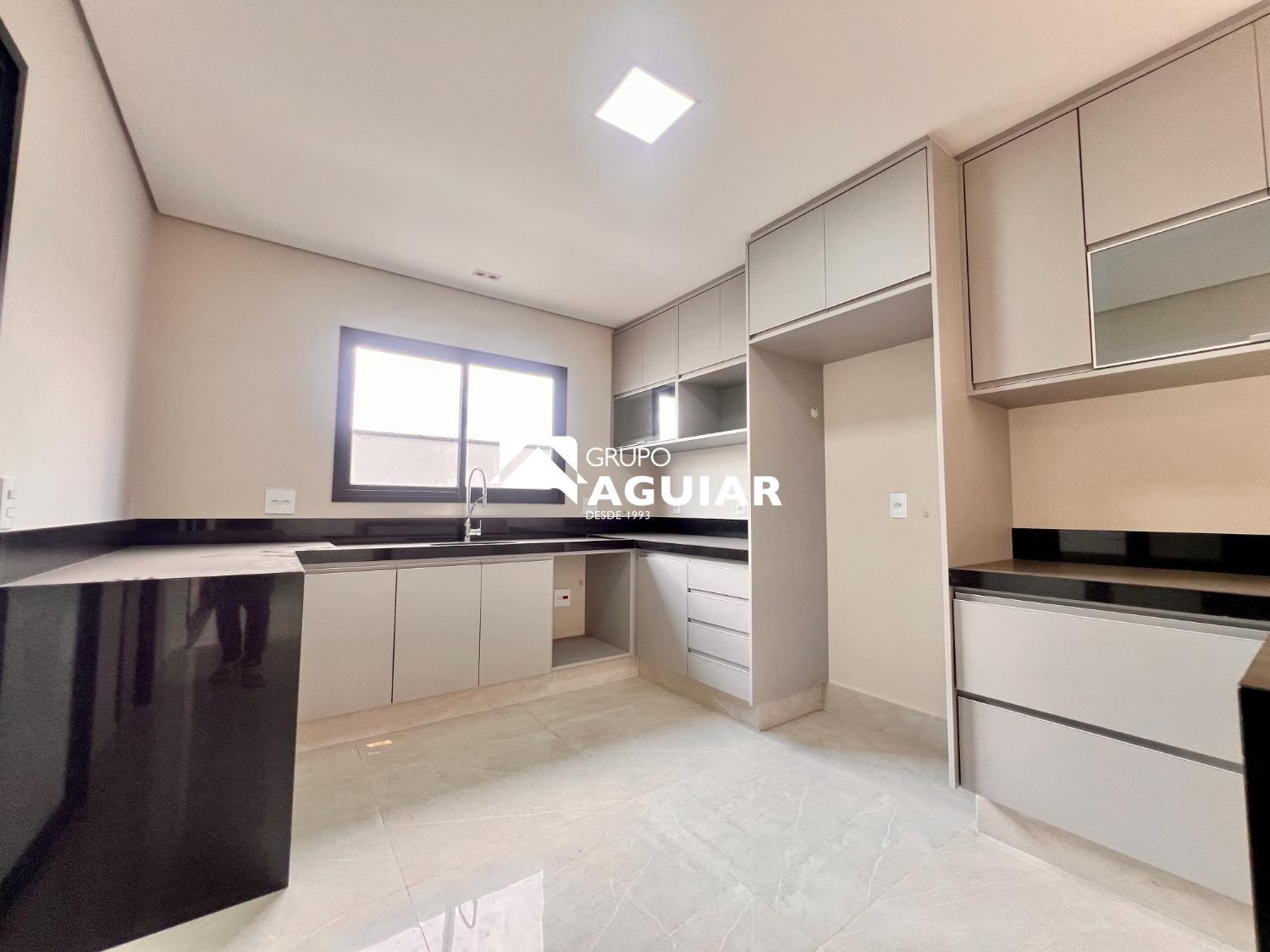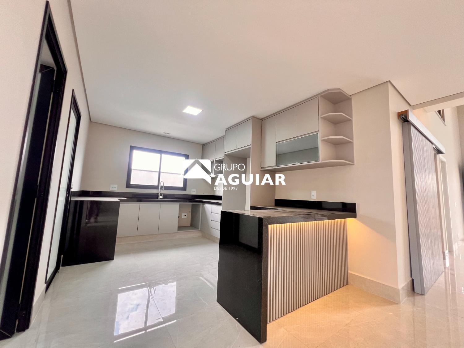 Rica em móveis planejados e acabamentos de alto padrão (porcelanato, vinílico, bancadas em mármore, esquadrias pretas em alumínio)