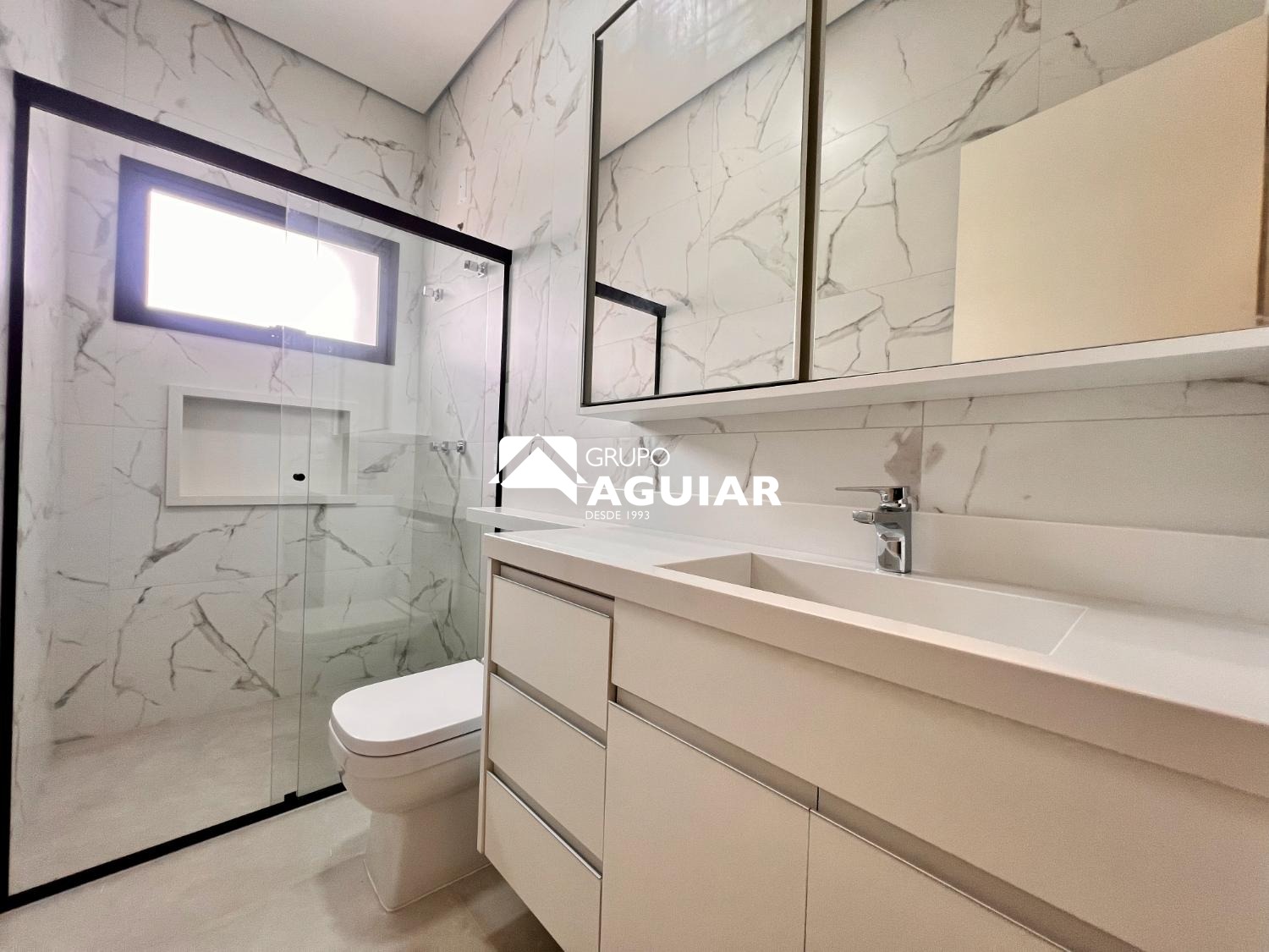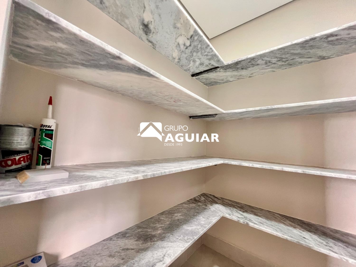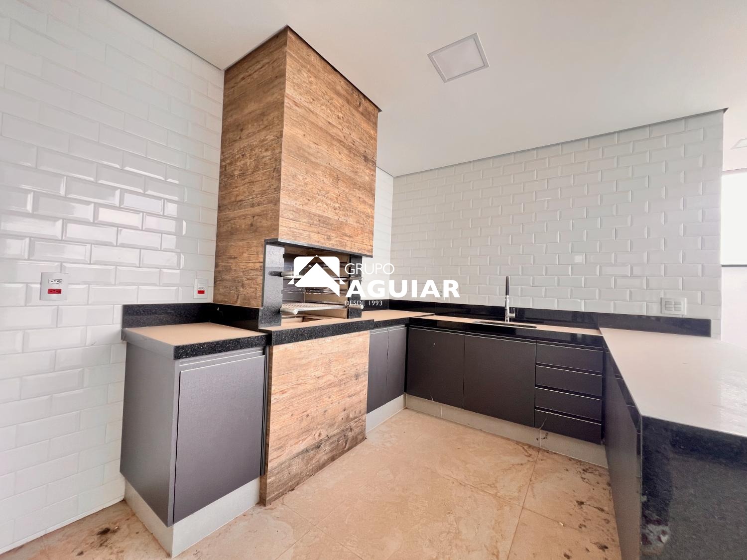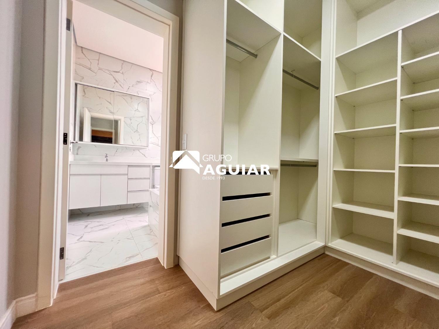 Rica em móveis planejados e acabamentos de alto padrão (porcelanato, vinílico, bancadas em mármore, esquadrias pretas em alumínio)