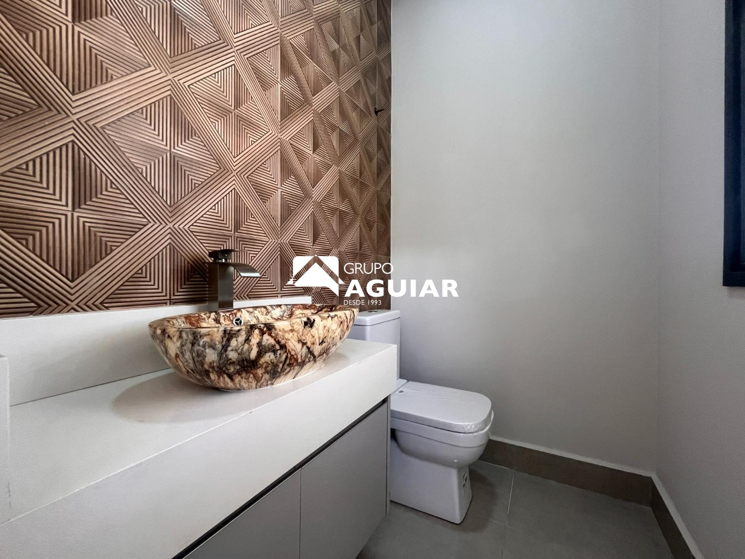 Casa térrea à venda com 3 suítes com persianas automatizadas, pé direito duplo, living 2 ambientes bem arejados, cozinha planejada, lavanderia, piscina com hidro e uma belíssima cascata, lavanderia, rico em armários planejados.