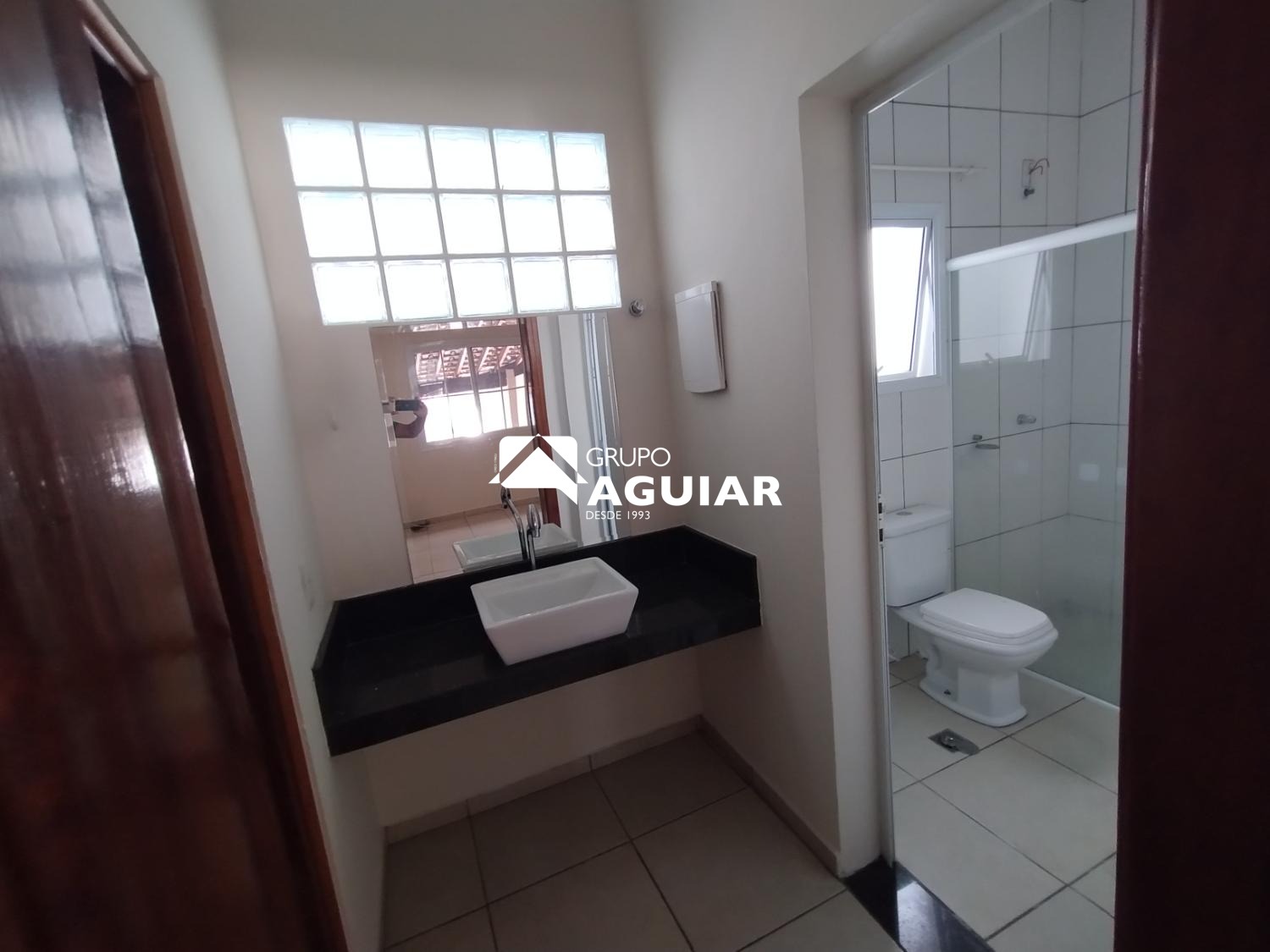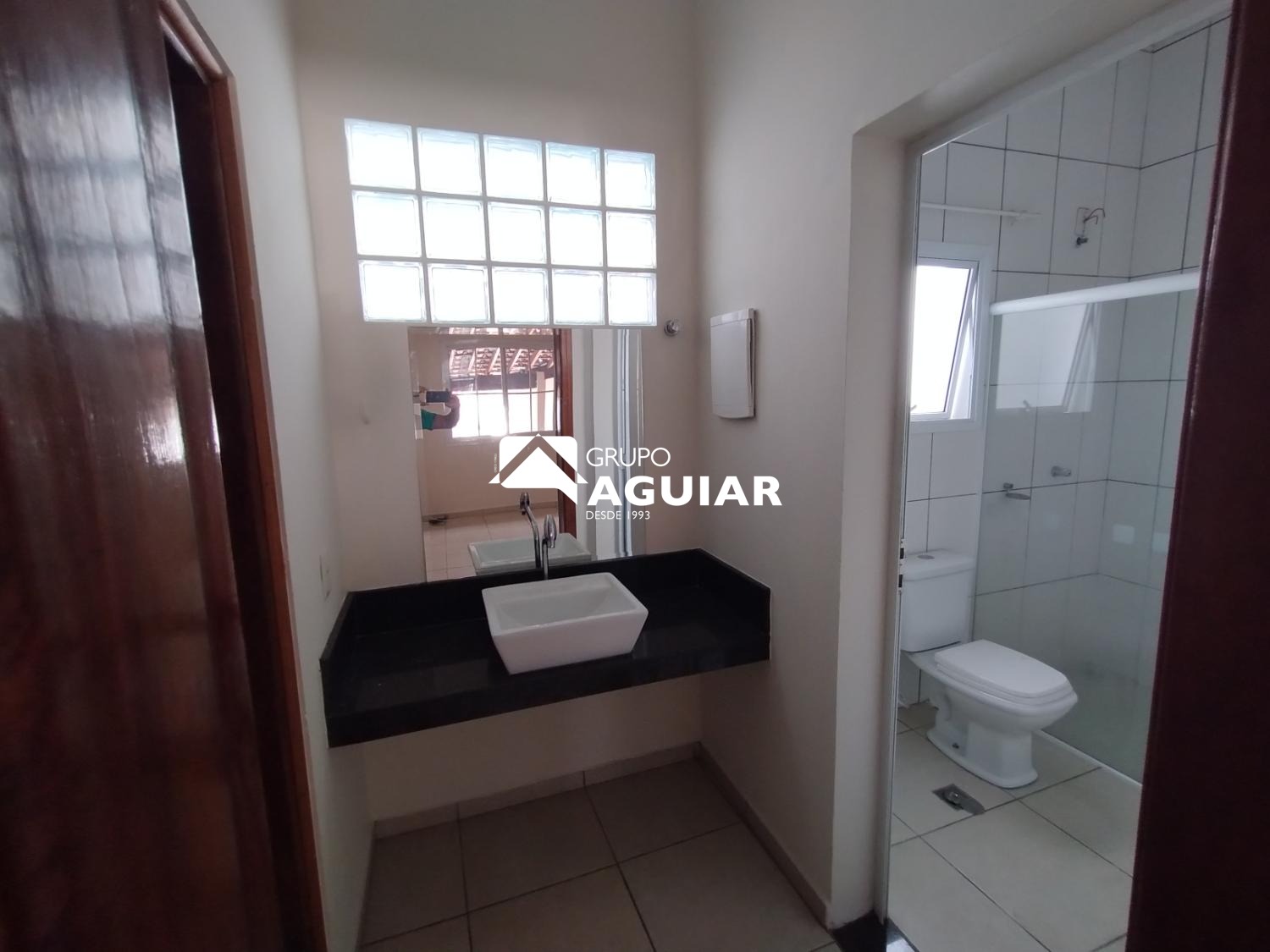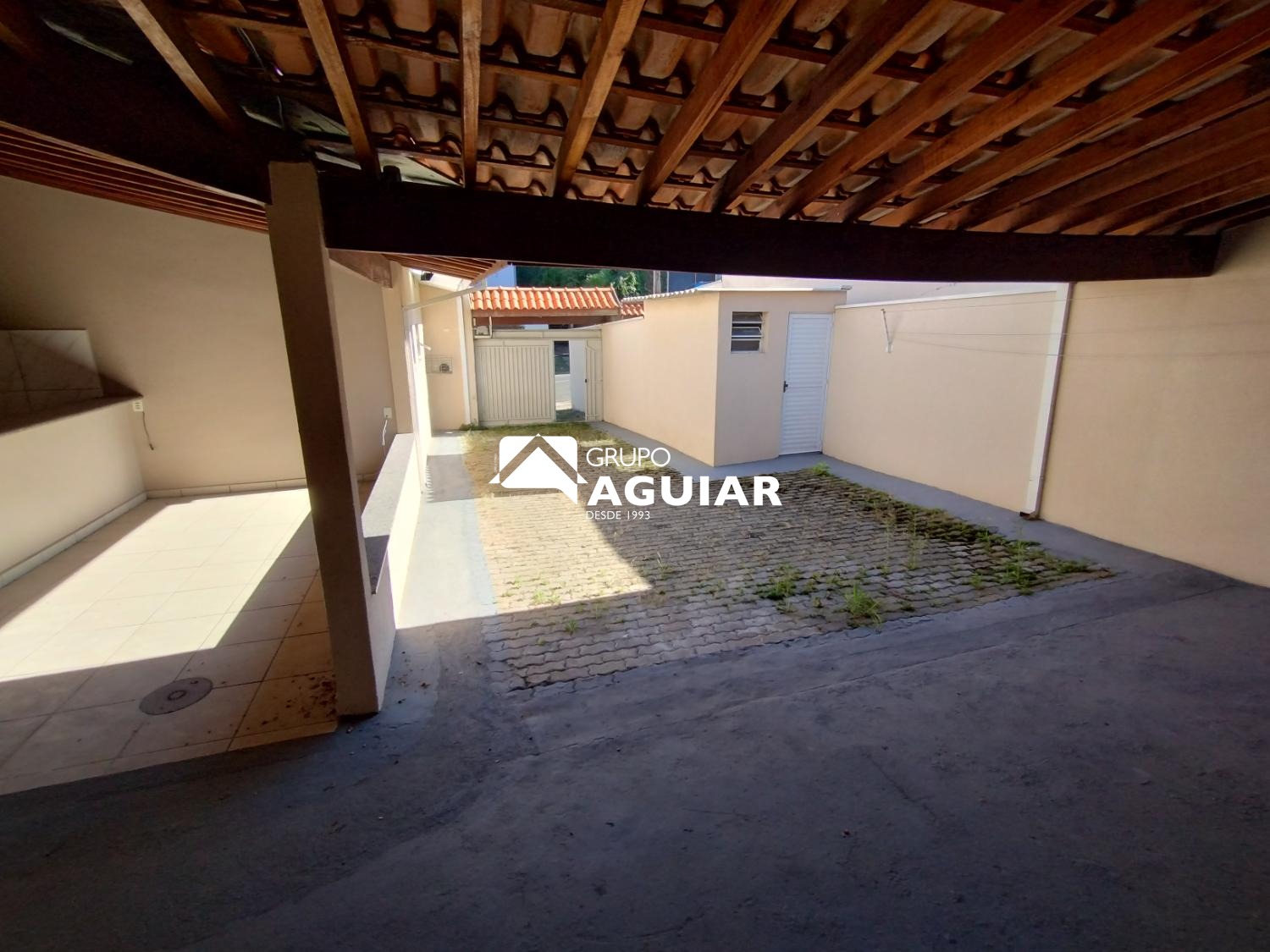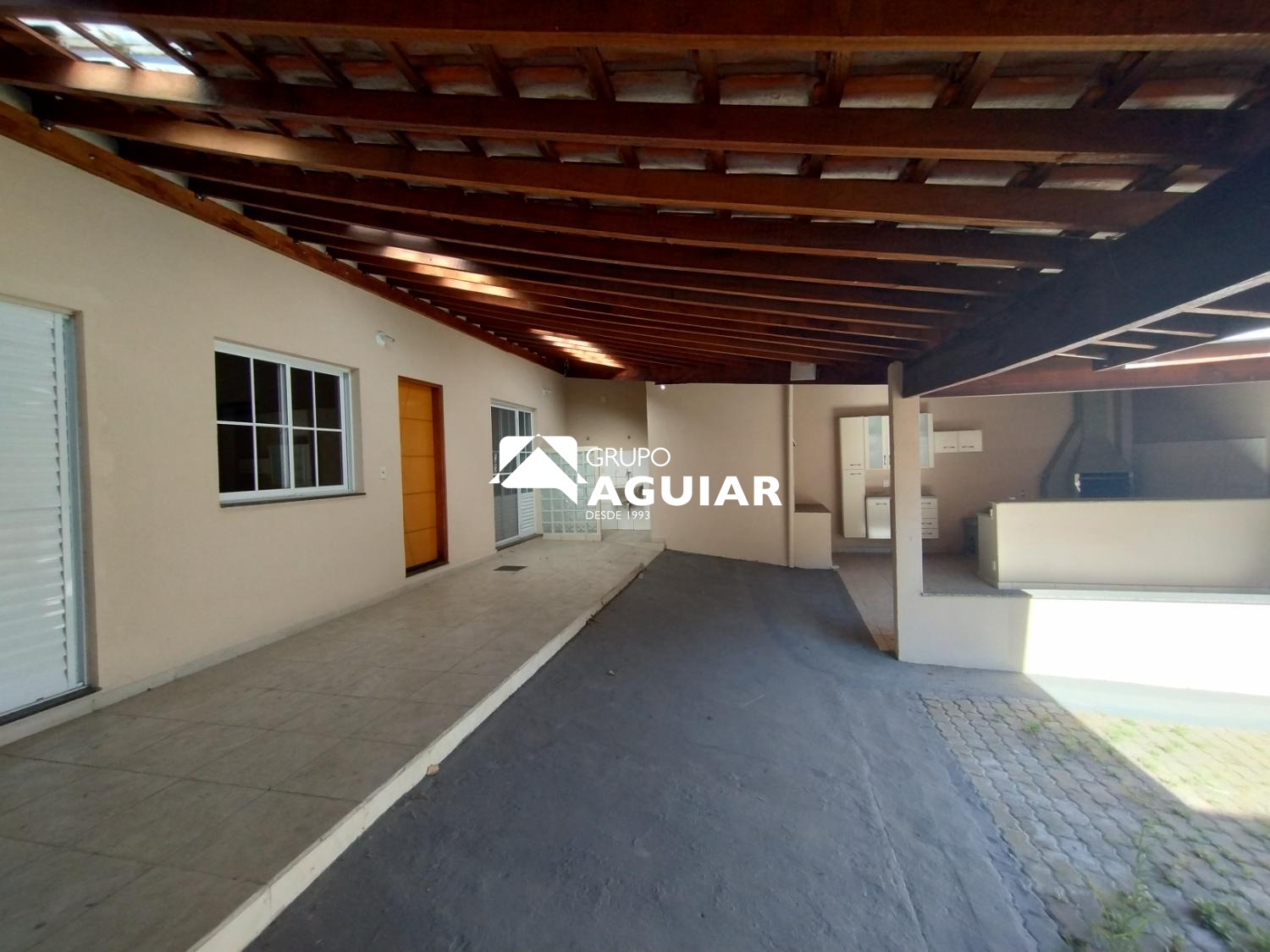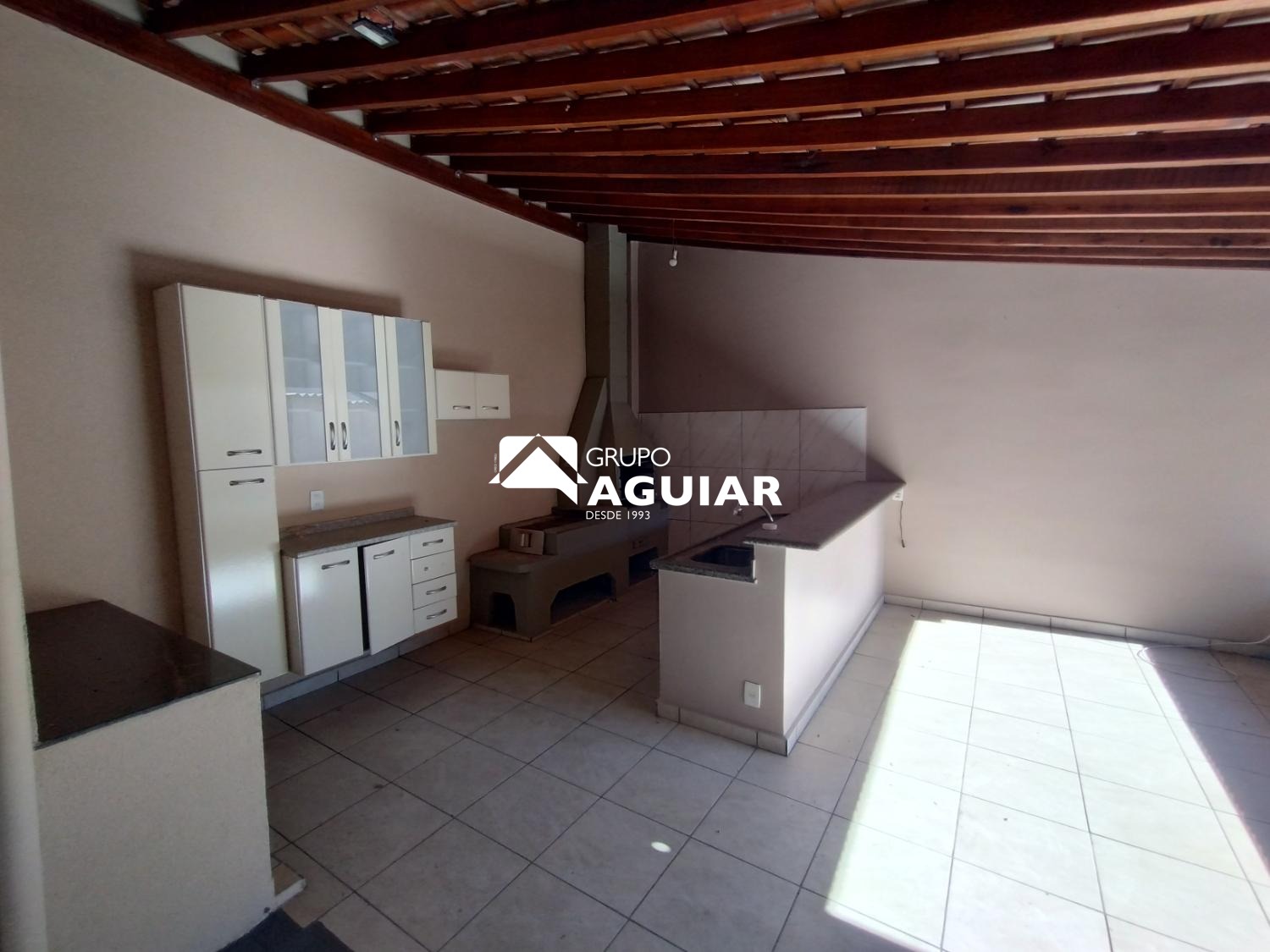 A casa possui acabamentos que incluem cozinha planejada com cooktop, armários, churrasqueira e espaço gourmet. O imóvel dispõe de sala de estar, sala de jantar, varanda com sacada, área de serviço, cozinha grande, quintal, despejo e portão eletrônico.