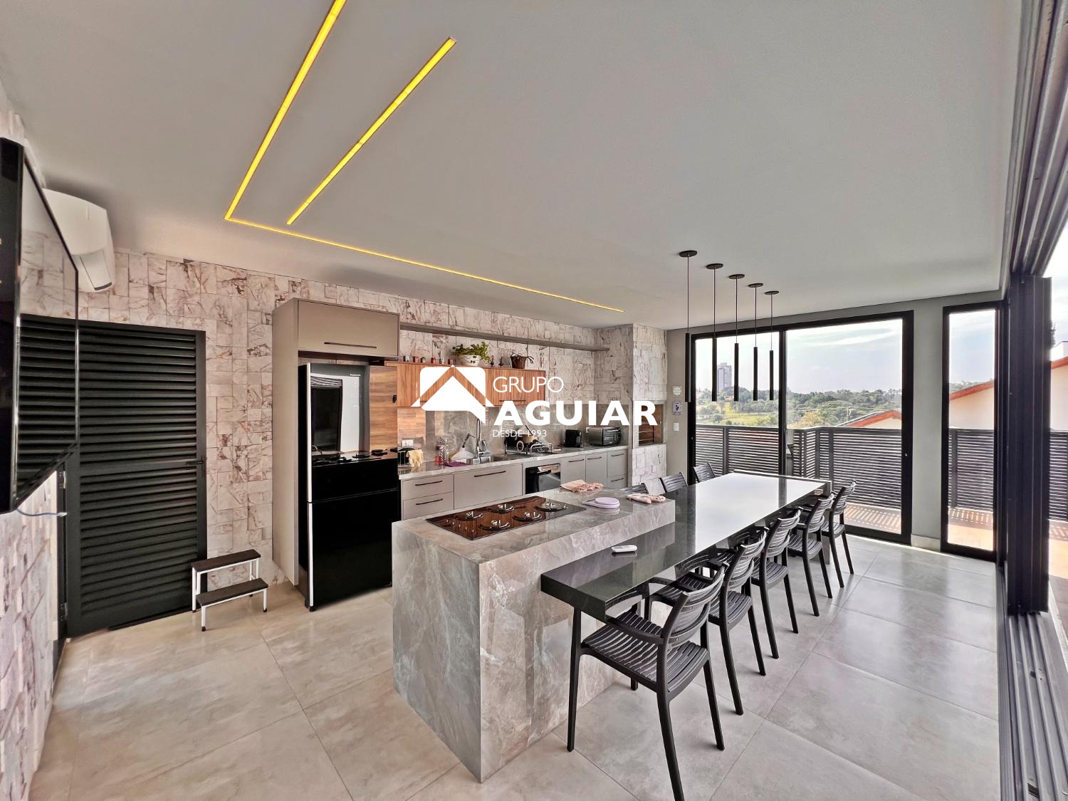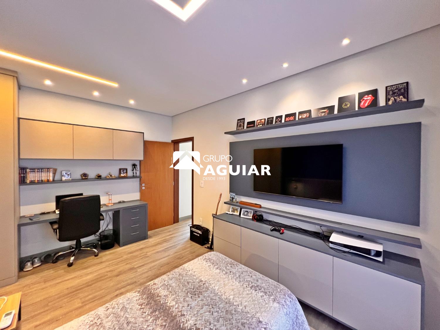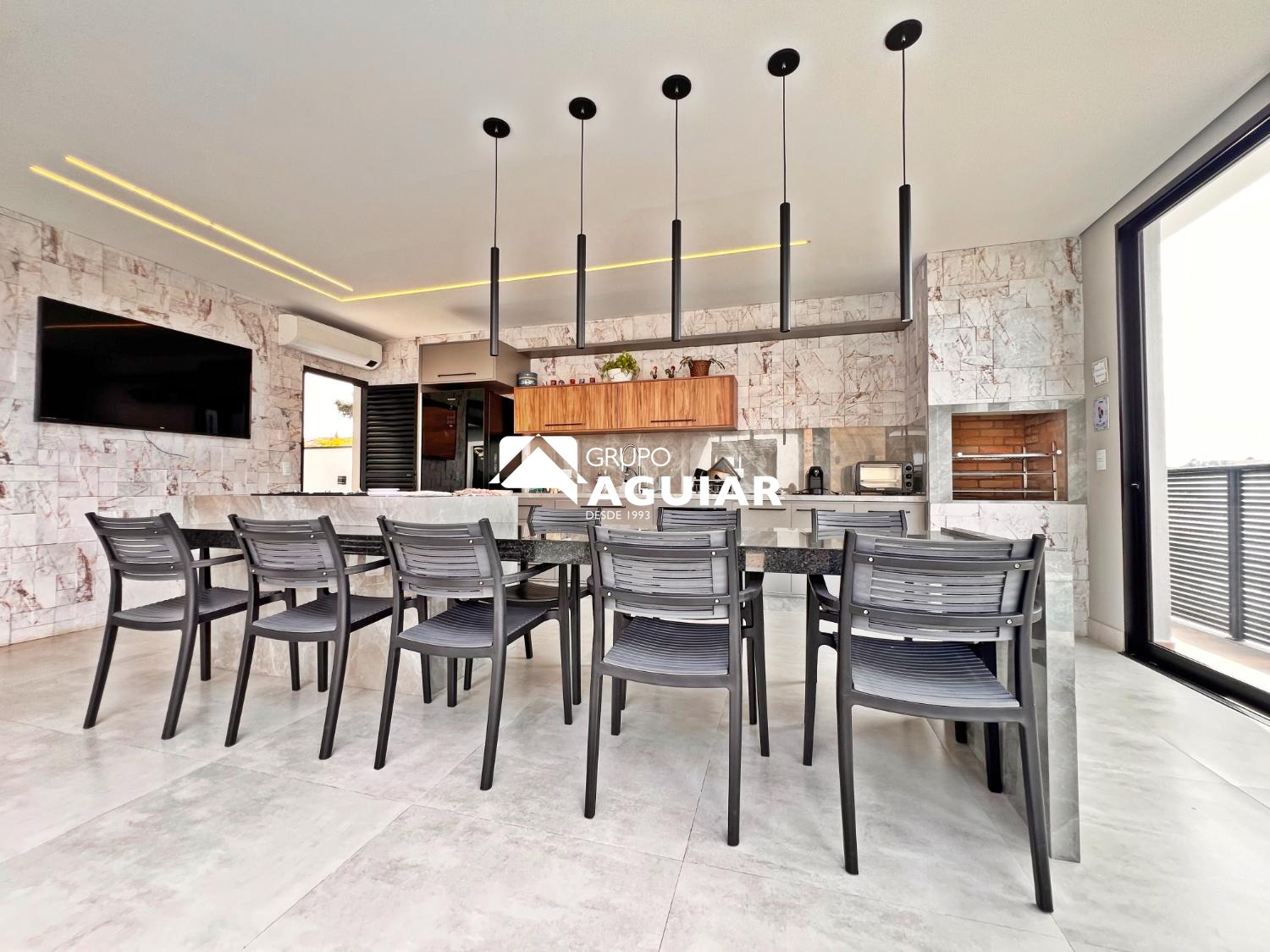 Marcenaria sob medida, iluminação completa, ar-condicionado na Sala de TV, no espaço gourmet, e em mais duas Suítes.