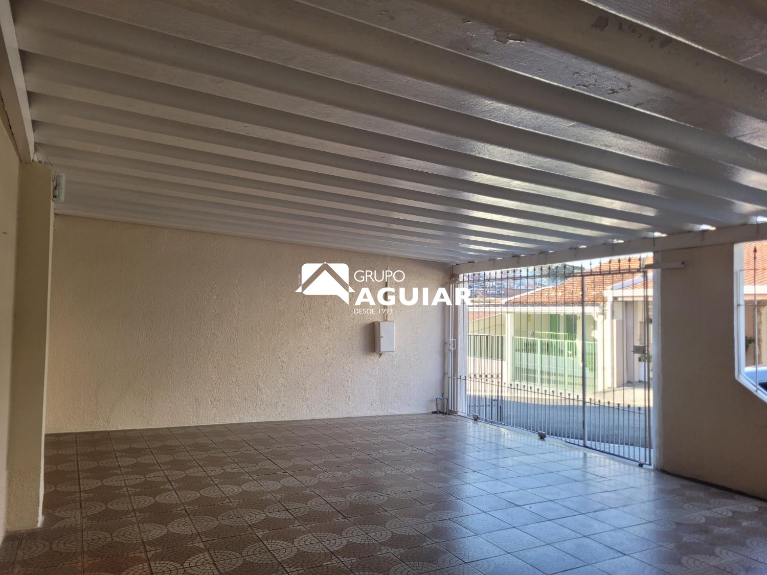 Garagem grande, coberta, para 2 veículos.