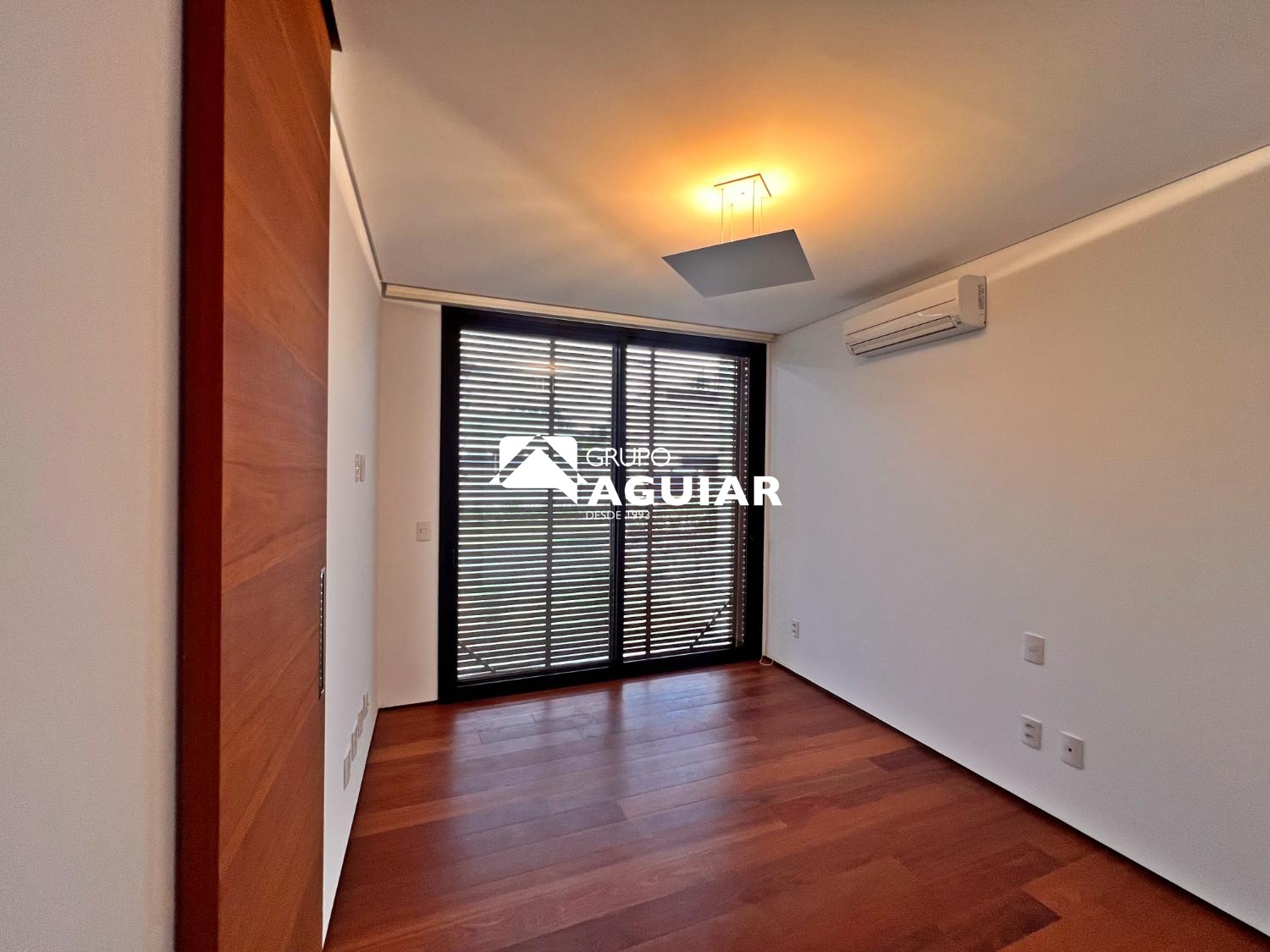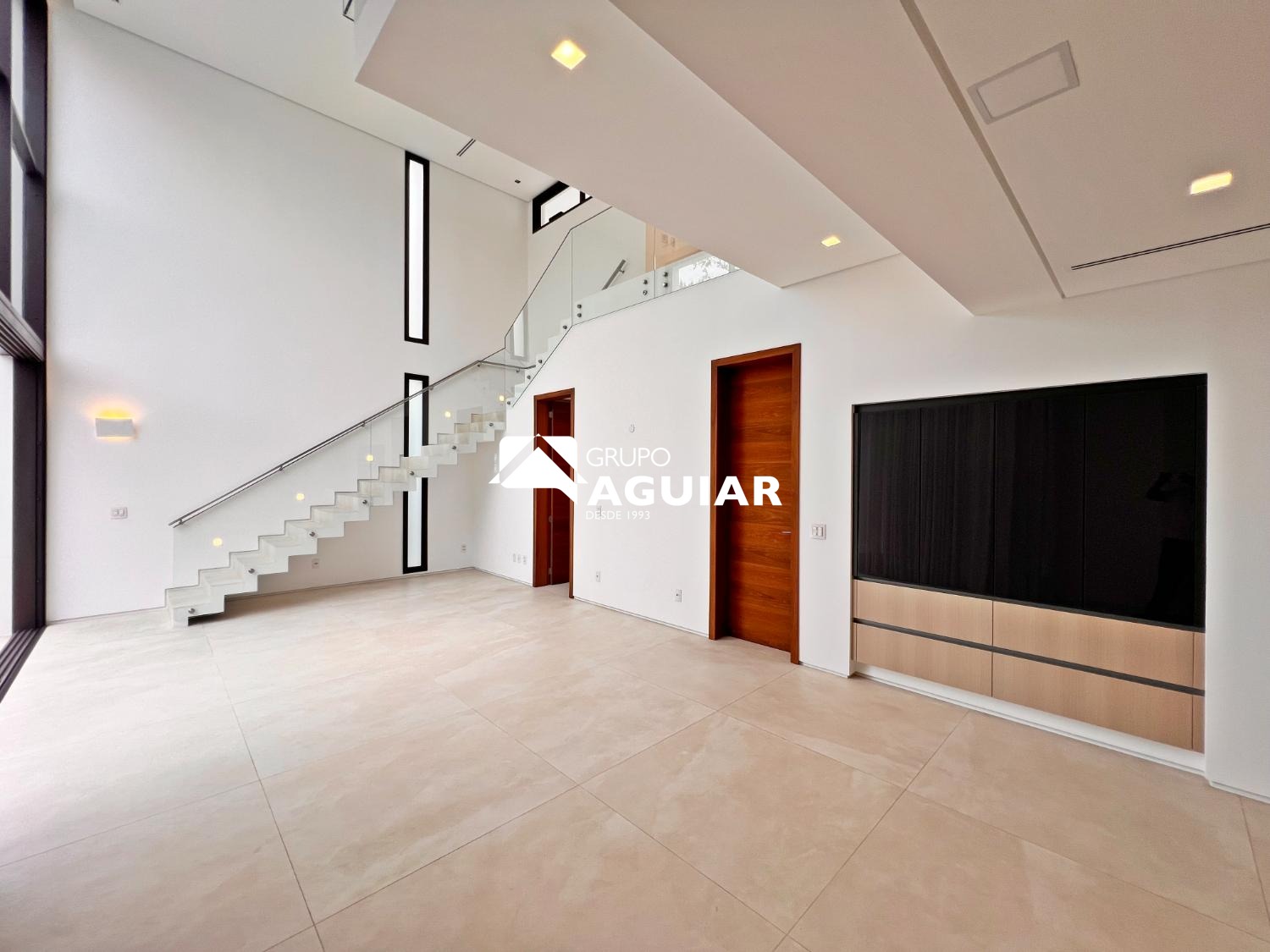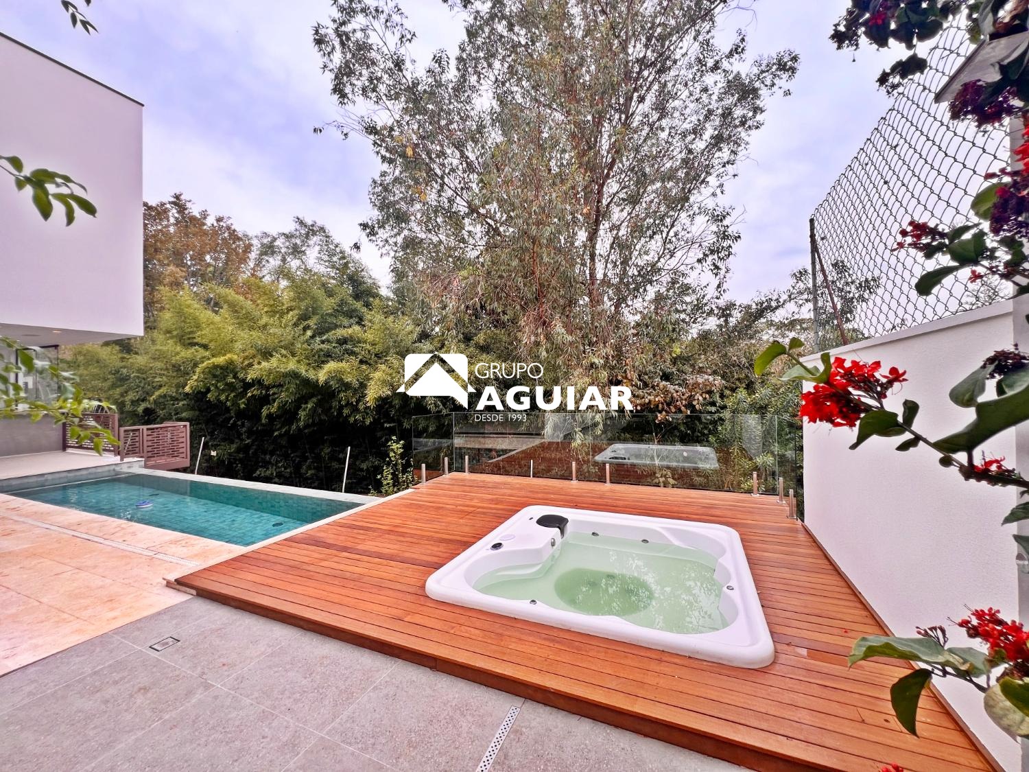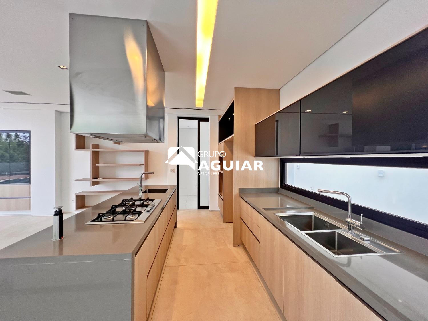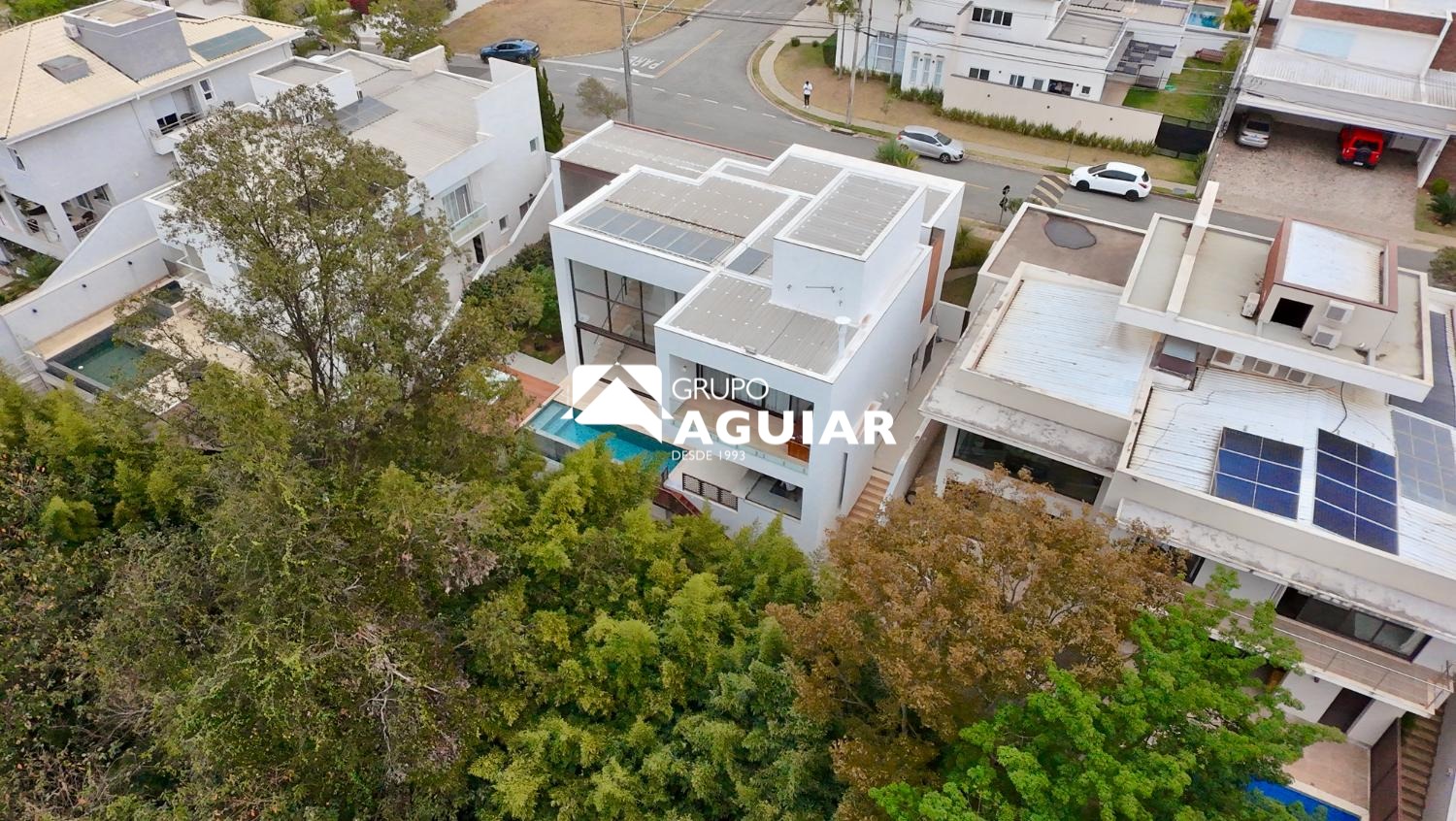 A casa conta com 5 dormitórios (4 suítes), incluindo suíte máster com isolamento acústico, varanda privativa e ofurô com vista para a mata. Ambientes amplos e integrados: sala de estar com pé-direito de 7m, home theater, sala de jantar e cozinha planejada Kitchens com espaço gourmet.