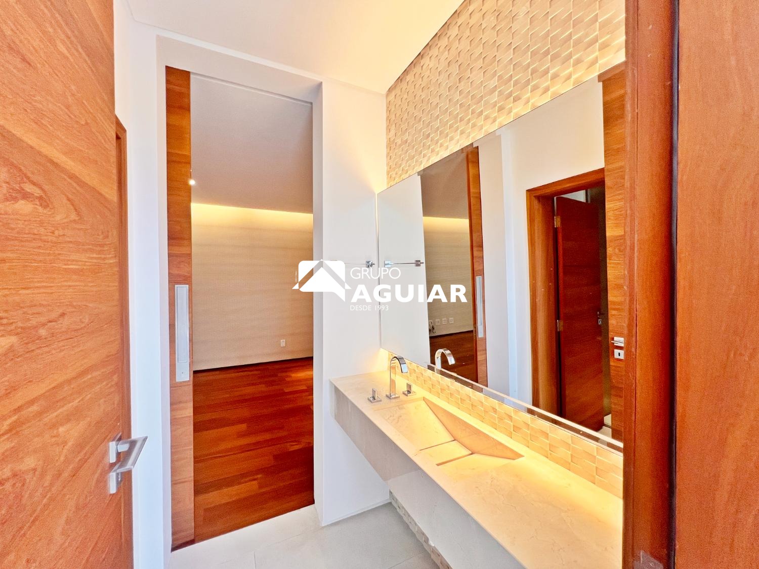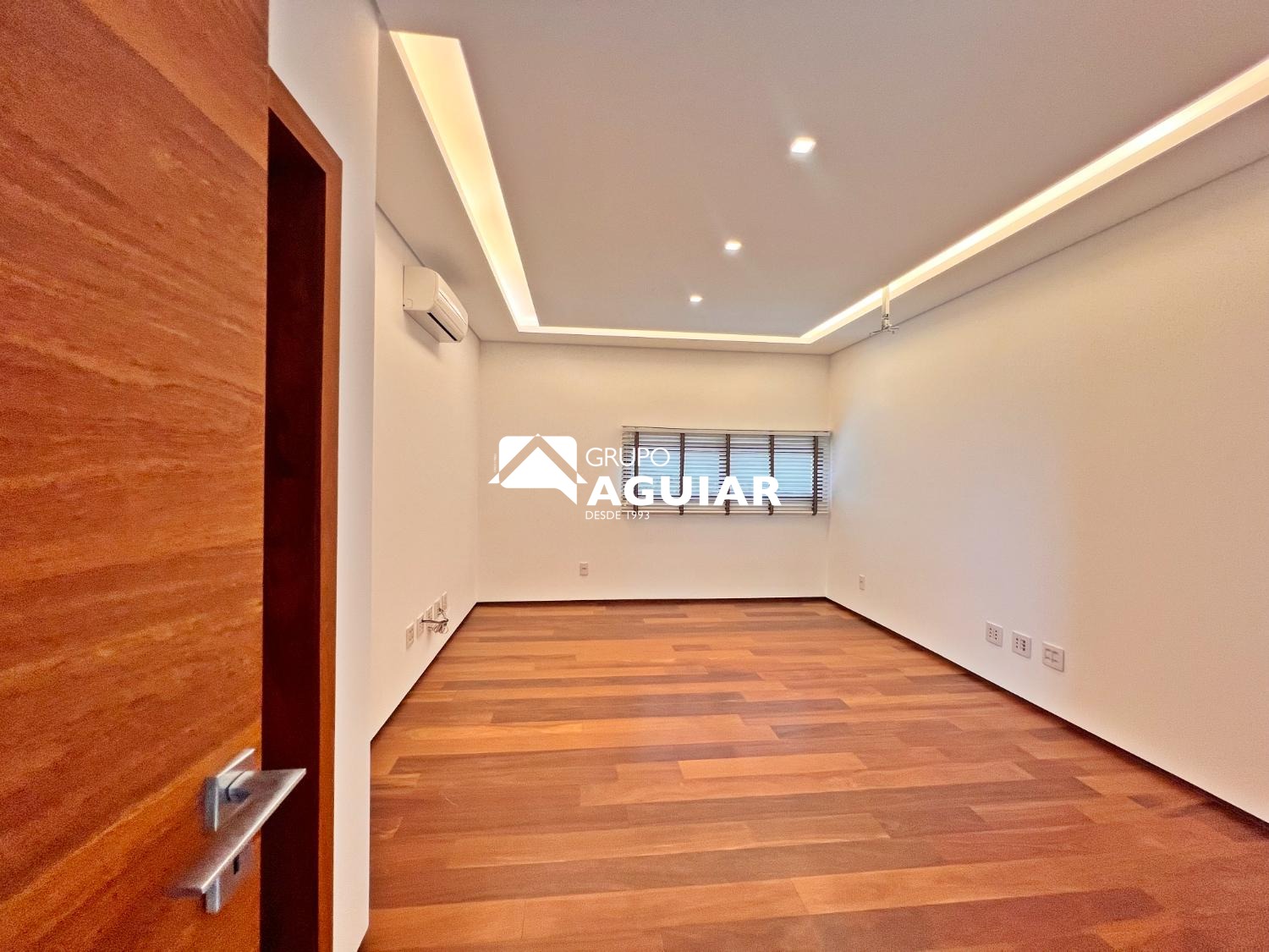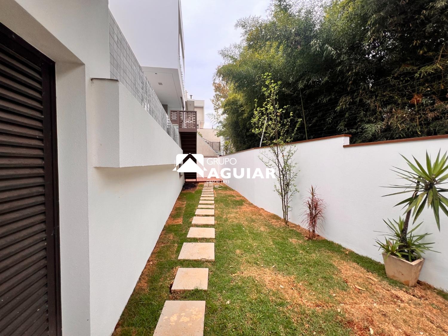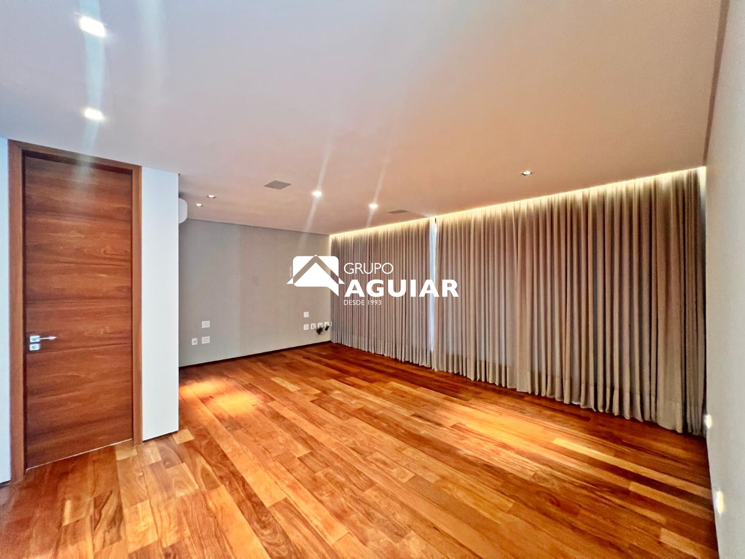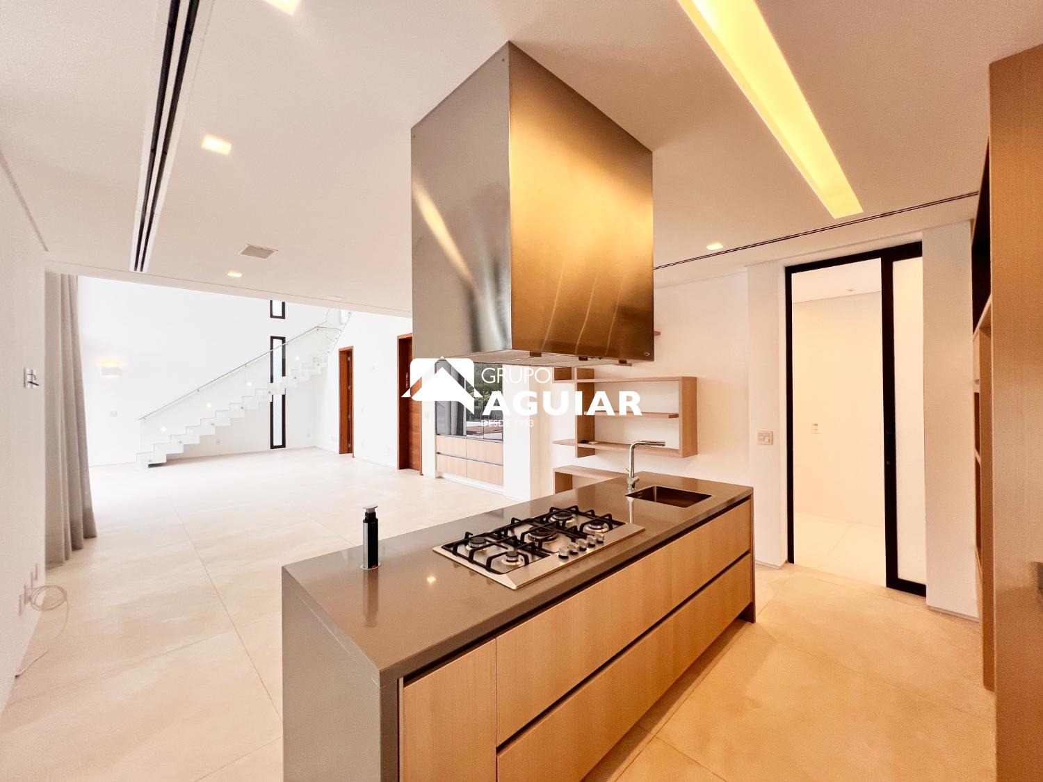 A casa conta com 5 dormitórios (4 suítes), incluindo suíte máster com isolamento acústico, varanda privativa e ofurô com vista para a mata. Ambientes amplos e integrados: sala de estar com pé-direito de 7m, home theater, sala de jantar e cozinha planejada Kitchens com espaço gourmet.