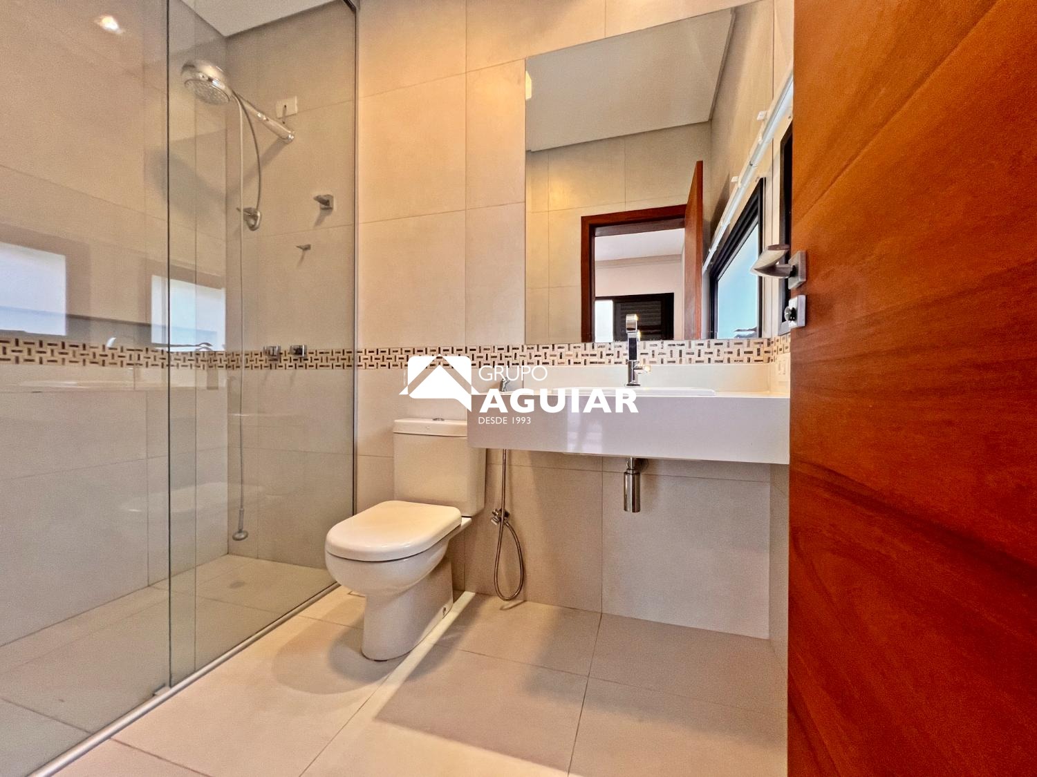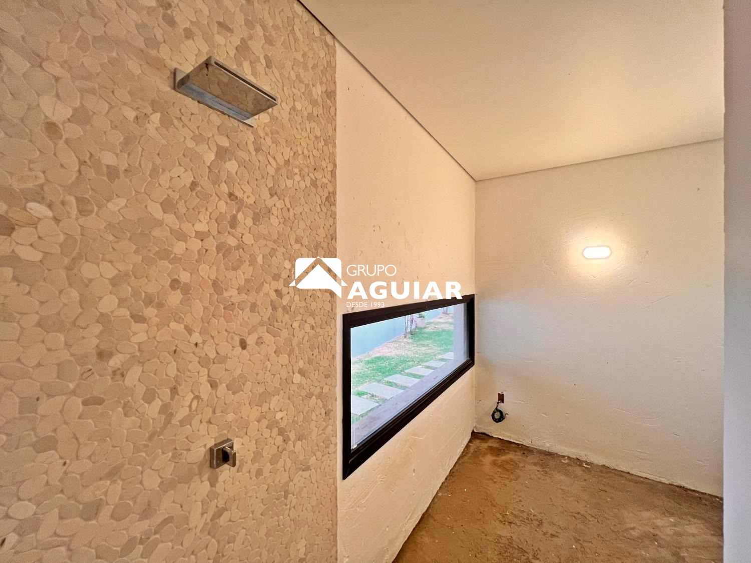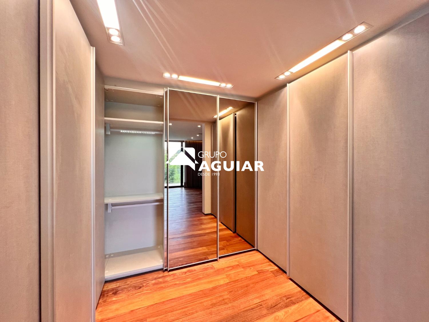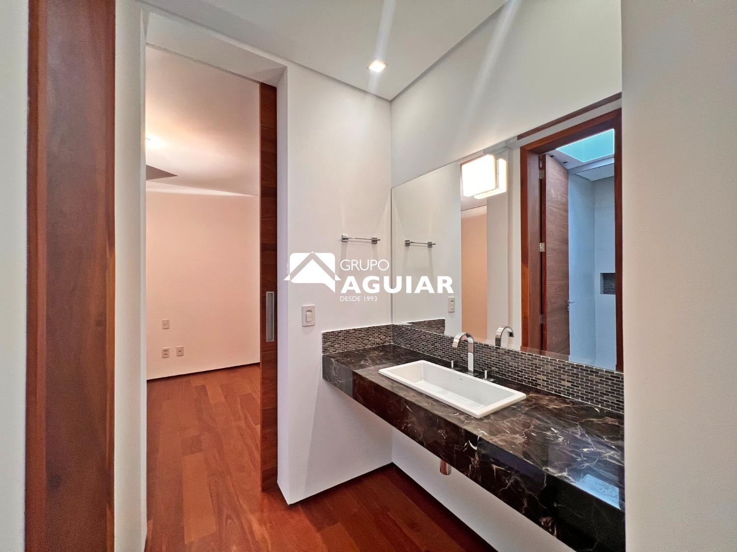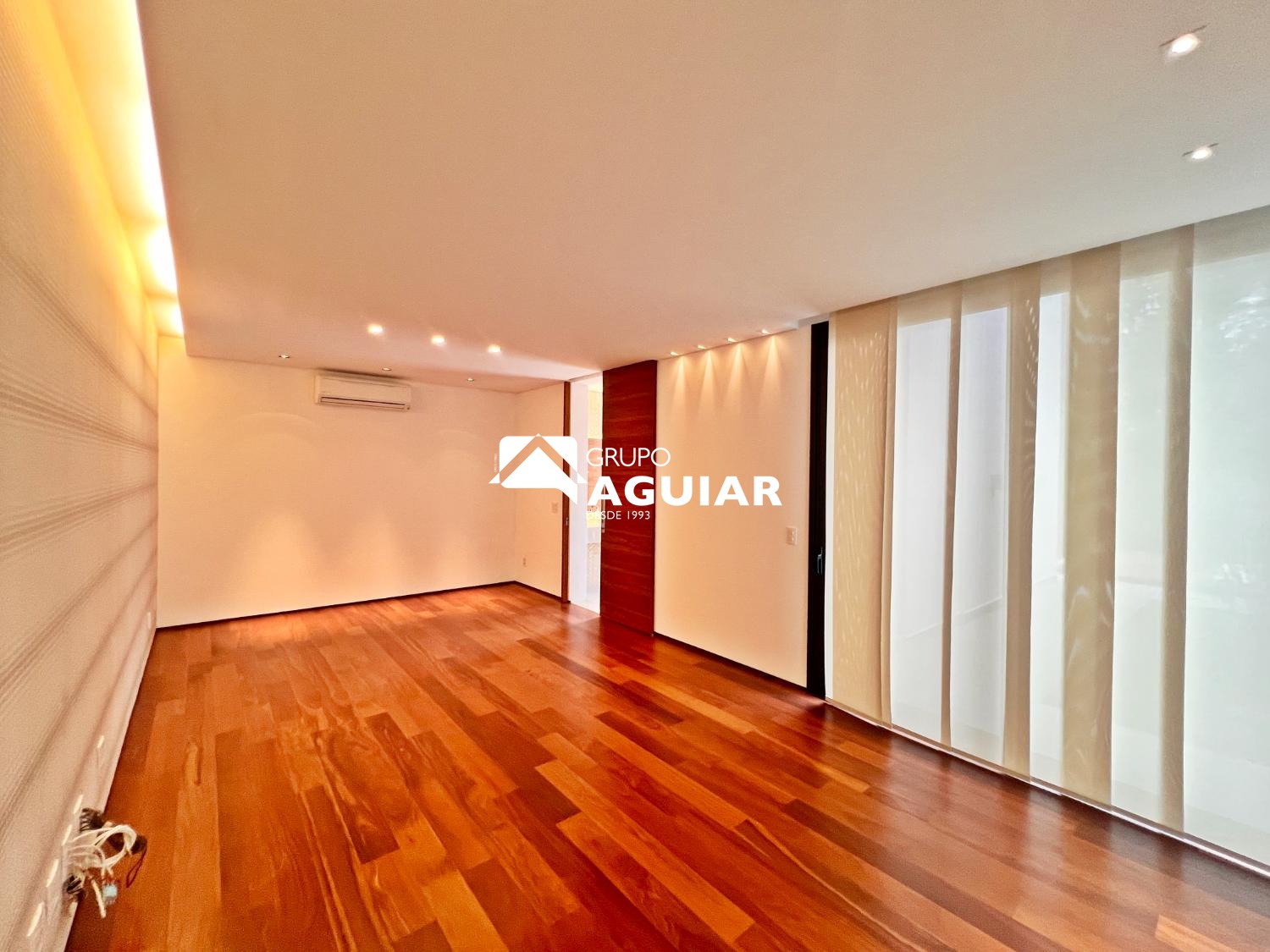 A casa conta com 5 dormitórios (4 suítes), incluindo suíte máster com isolamento acústico, varanda privativa e ofurô com vista para a mata. Ambientes amplos e integrados: sala de estar com pé-direito de 7m, home theater, sala de jantar e cozinha planejada Kitchens com espaço gourmet.