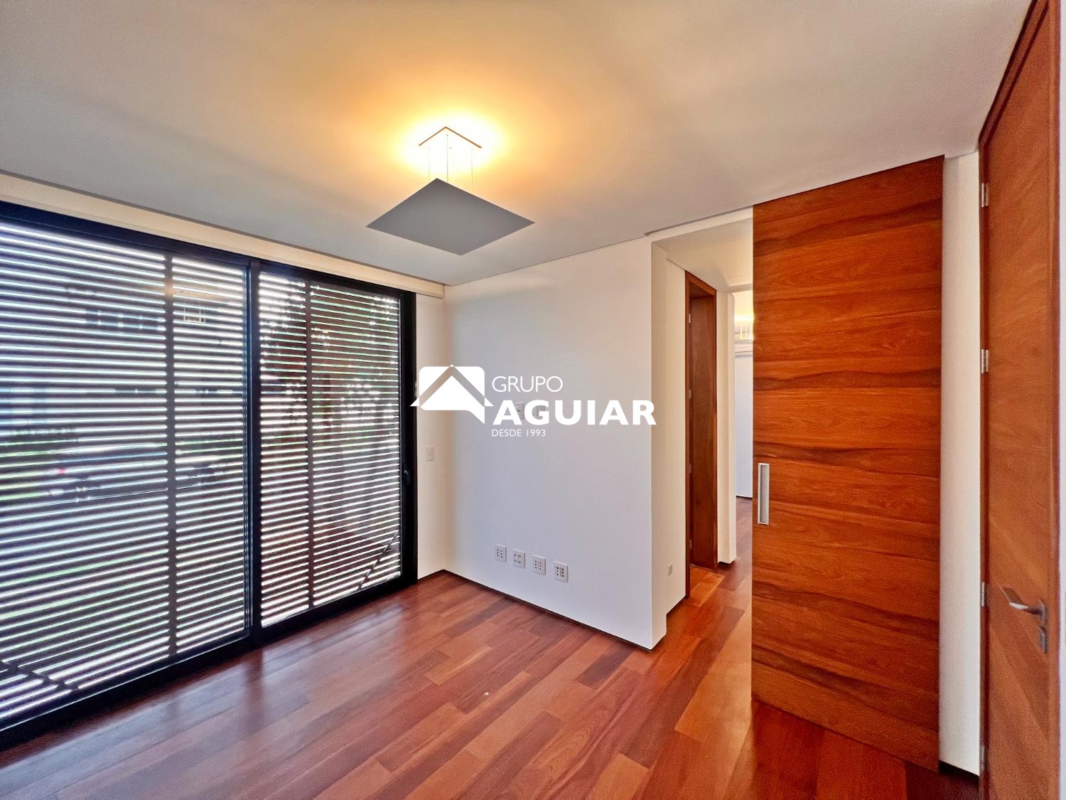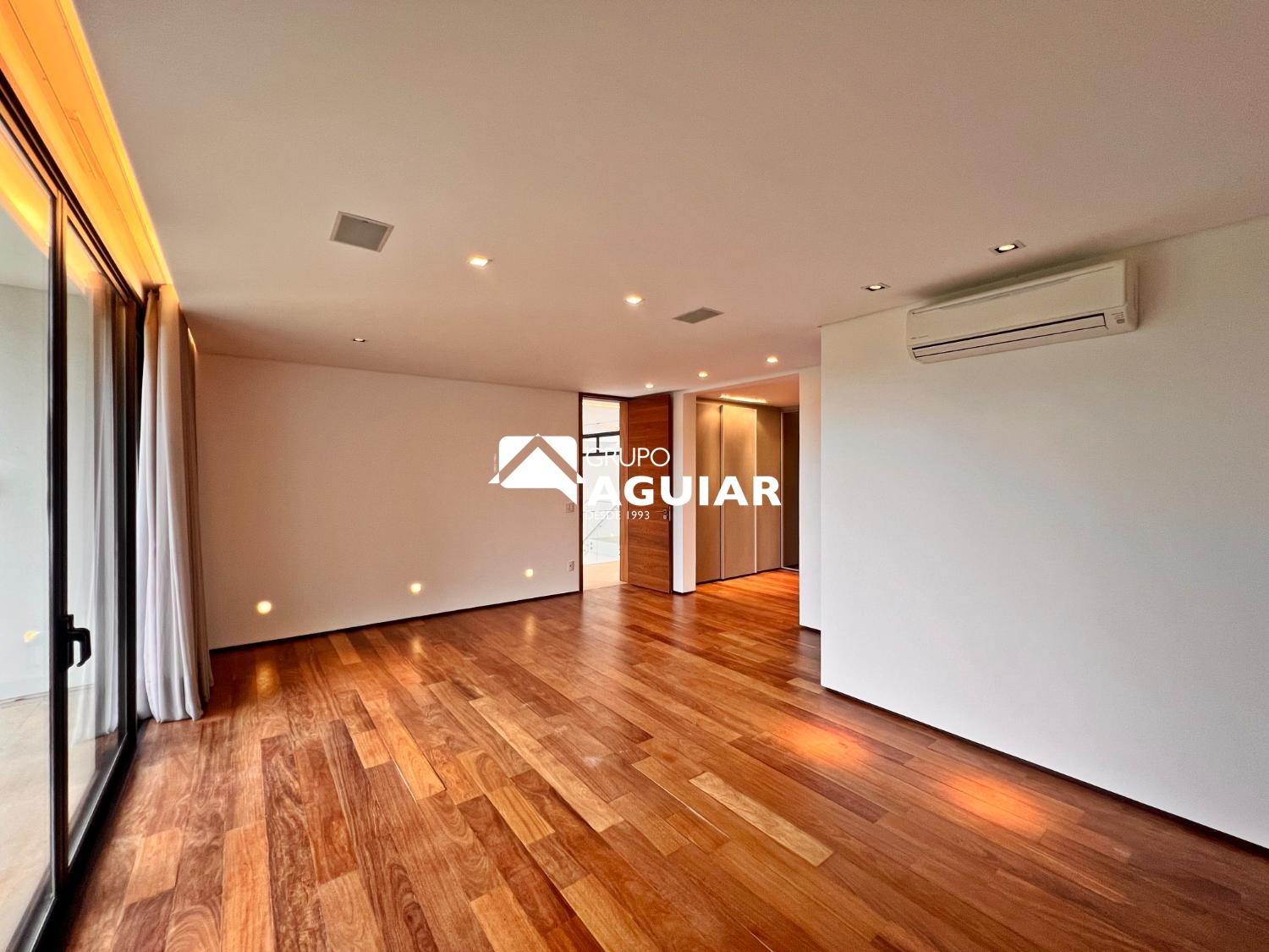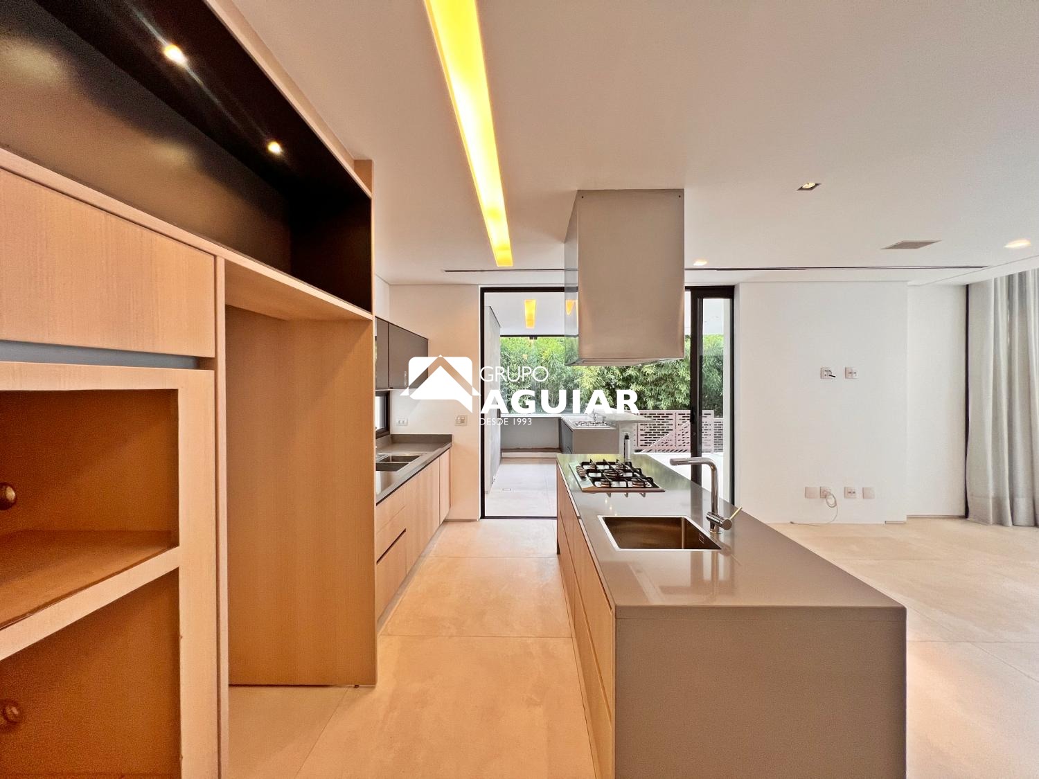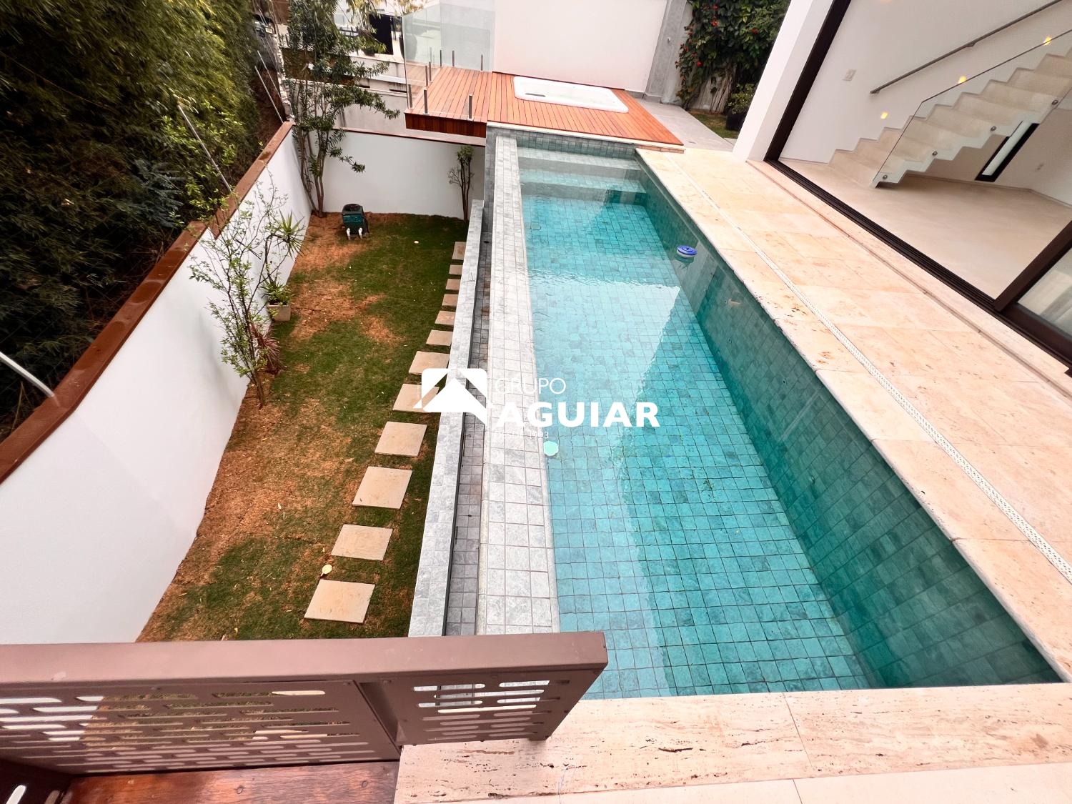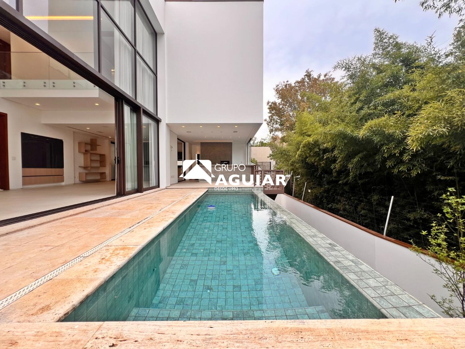 A casa conta com 5 dormitórios (4 suítes), incluindo suíte máster com isolamento acústico, varanda privativa e ofurô com vista para a mata. Ambientes amplos e integrados: sala de estar com pé-direito de 7m, home theater, sala de jantar e cozinha planejada Kitchens com espaço gourmet.