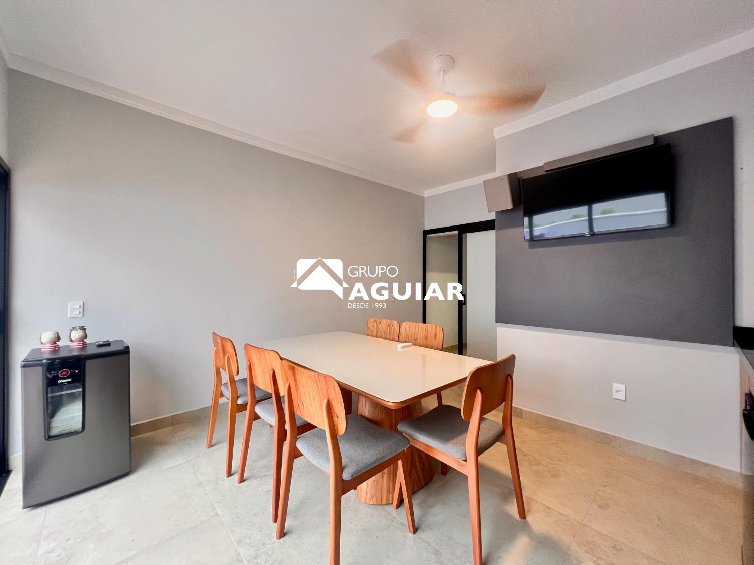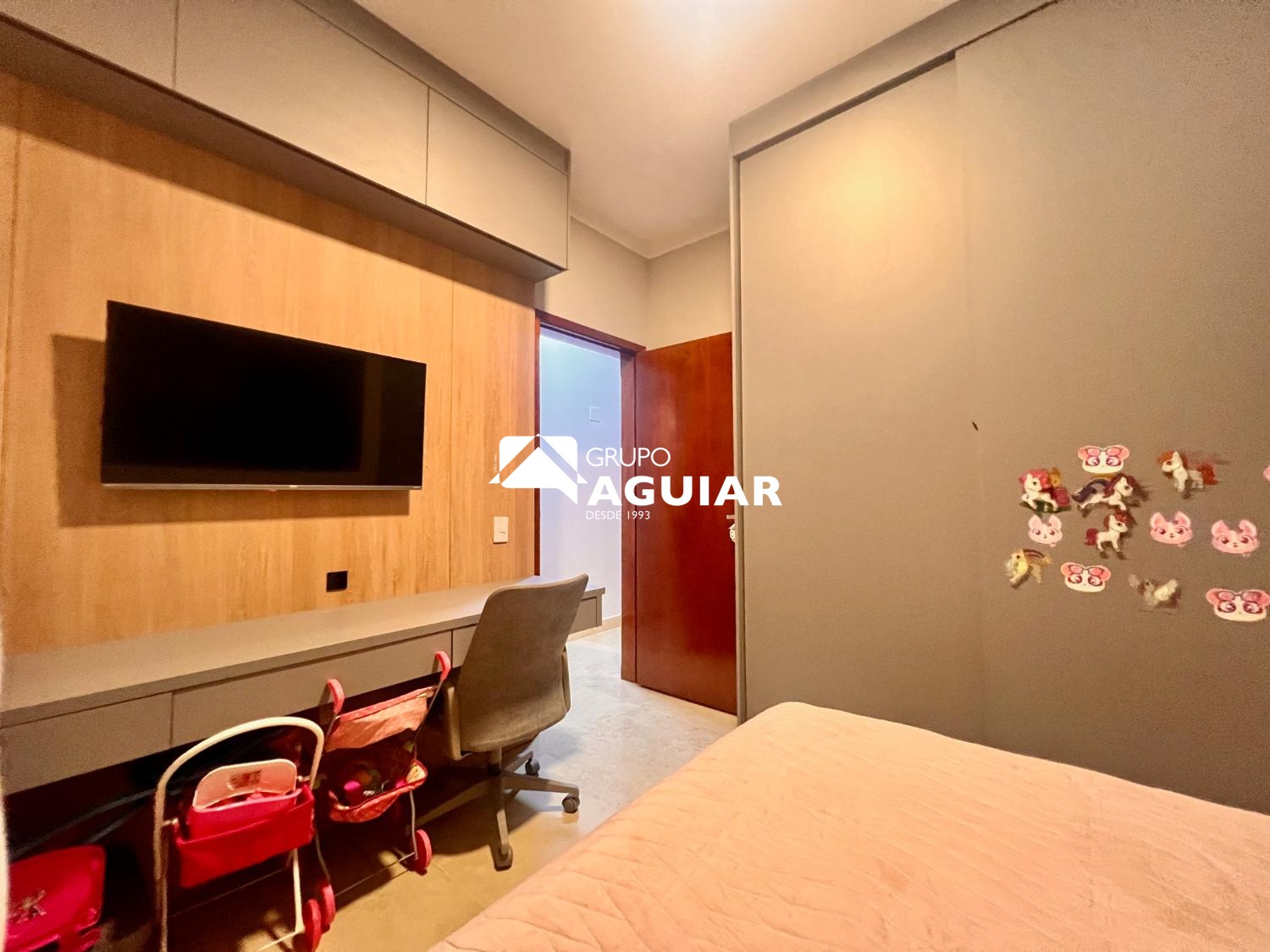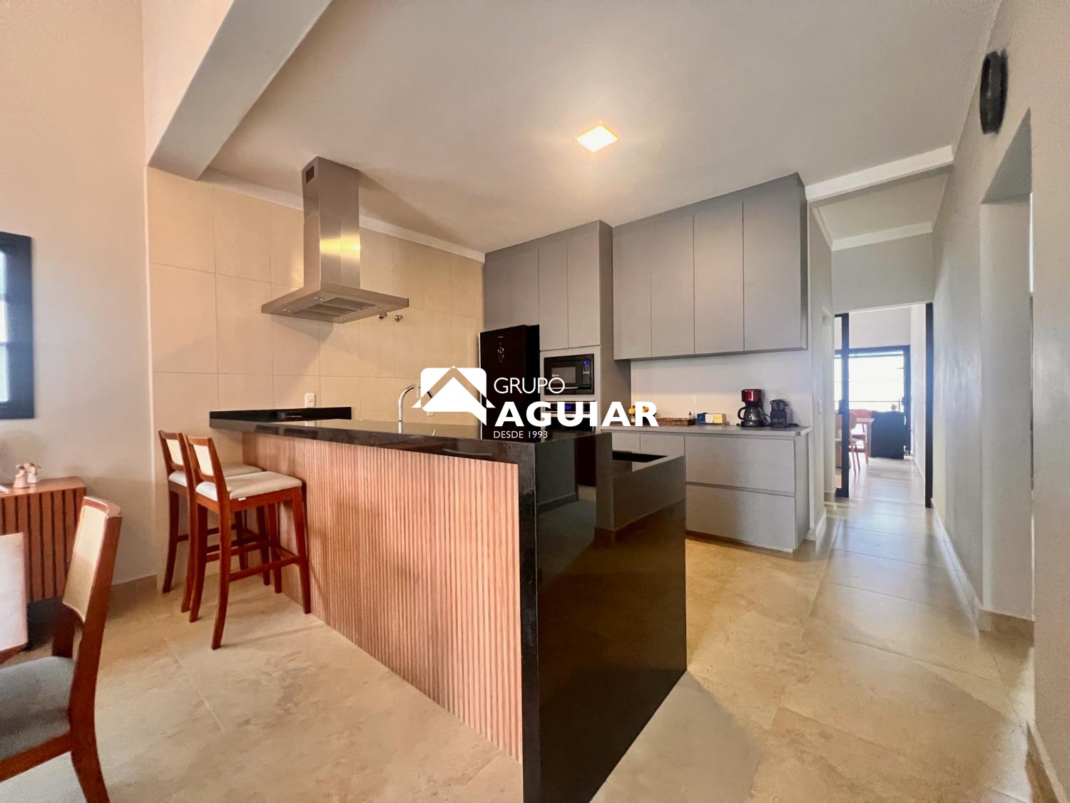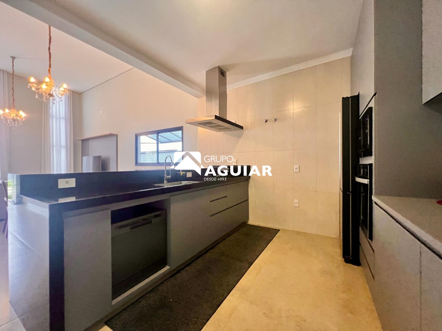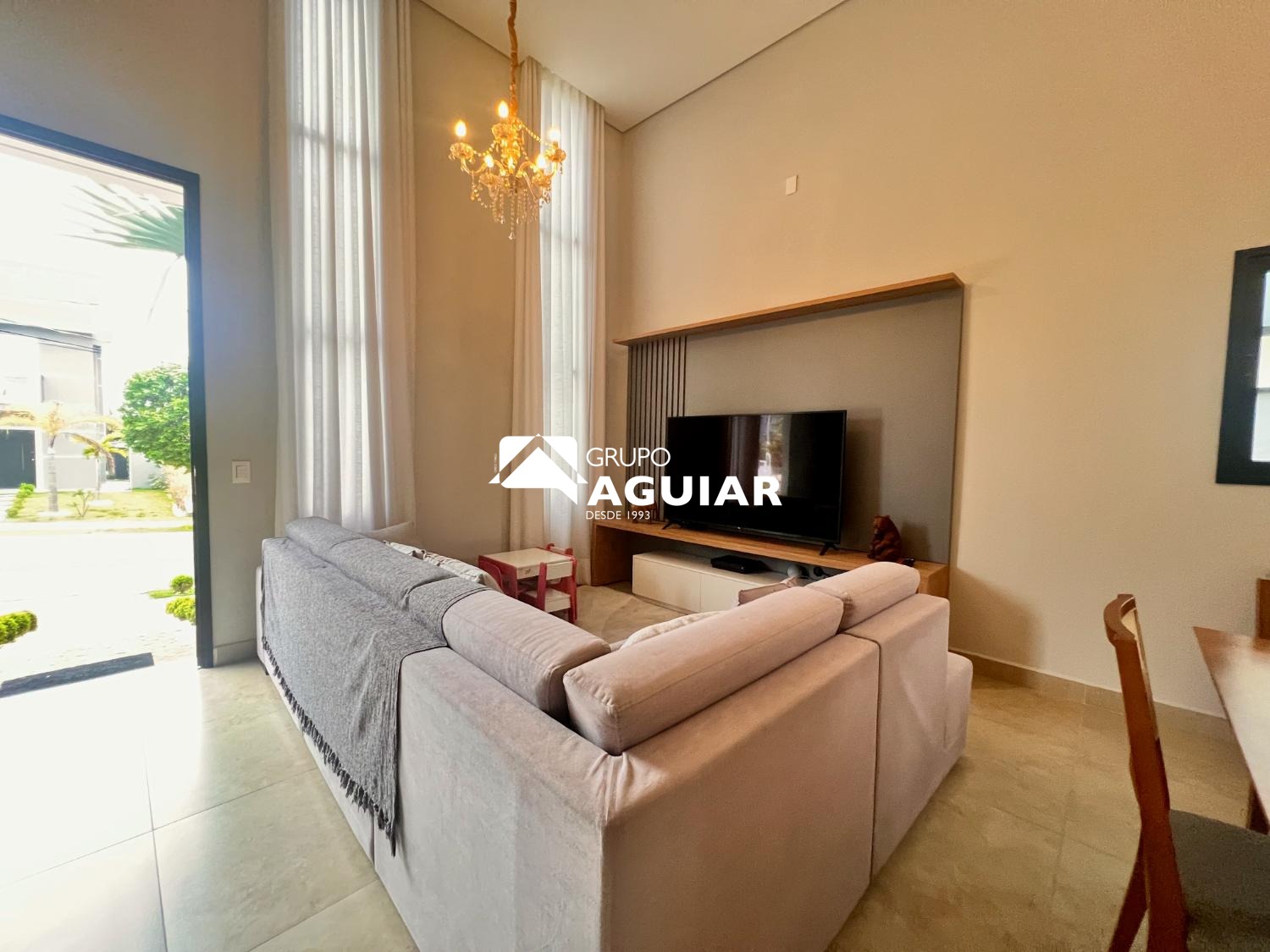 A casa conta com três dormitórios, sendo uma suíte, todos com planejados de excelente qualidade. O projeto moderno privilegia a integração dos ambientes e o pé-direito duplo nas salas garante amplitude e sofisticação.