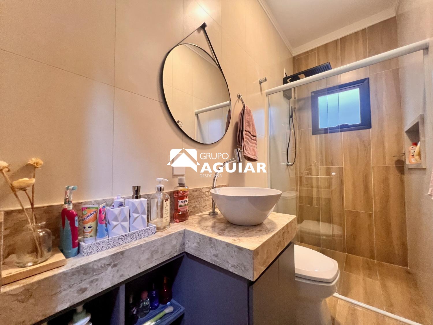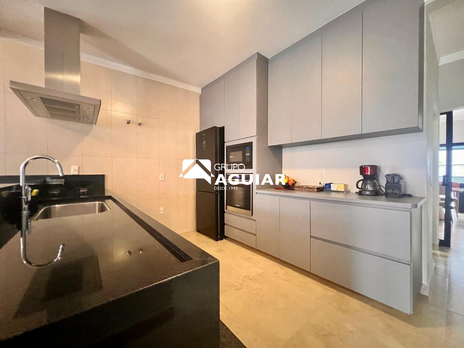 A cozinha planejada, rica em armários, foi cuidadosamente pensada para unir praticidade e elegância. São três banheiros com fino acabamento e detalhes de muito bom gosto.