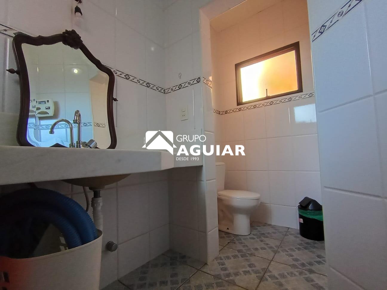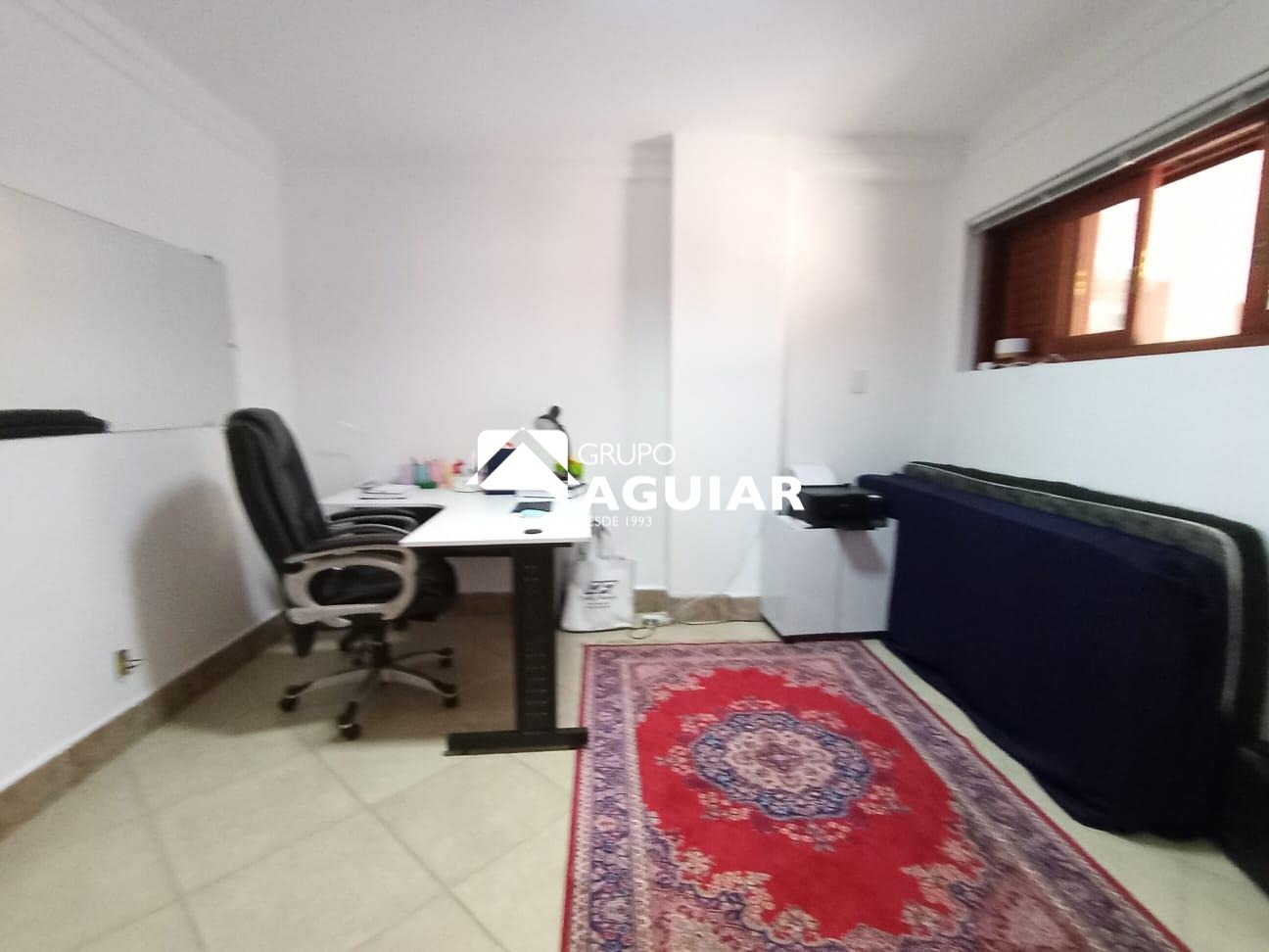 No piso inferior,escritório com banheiro e duas salas