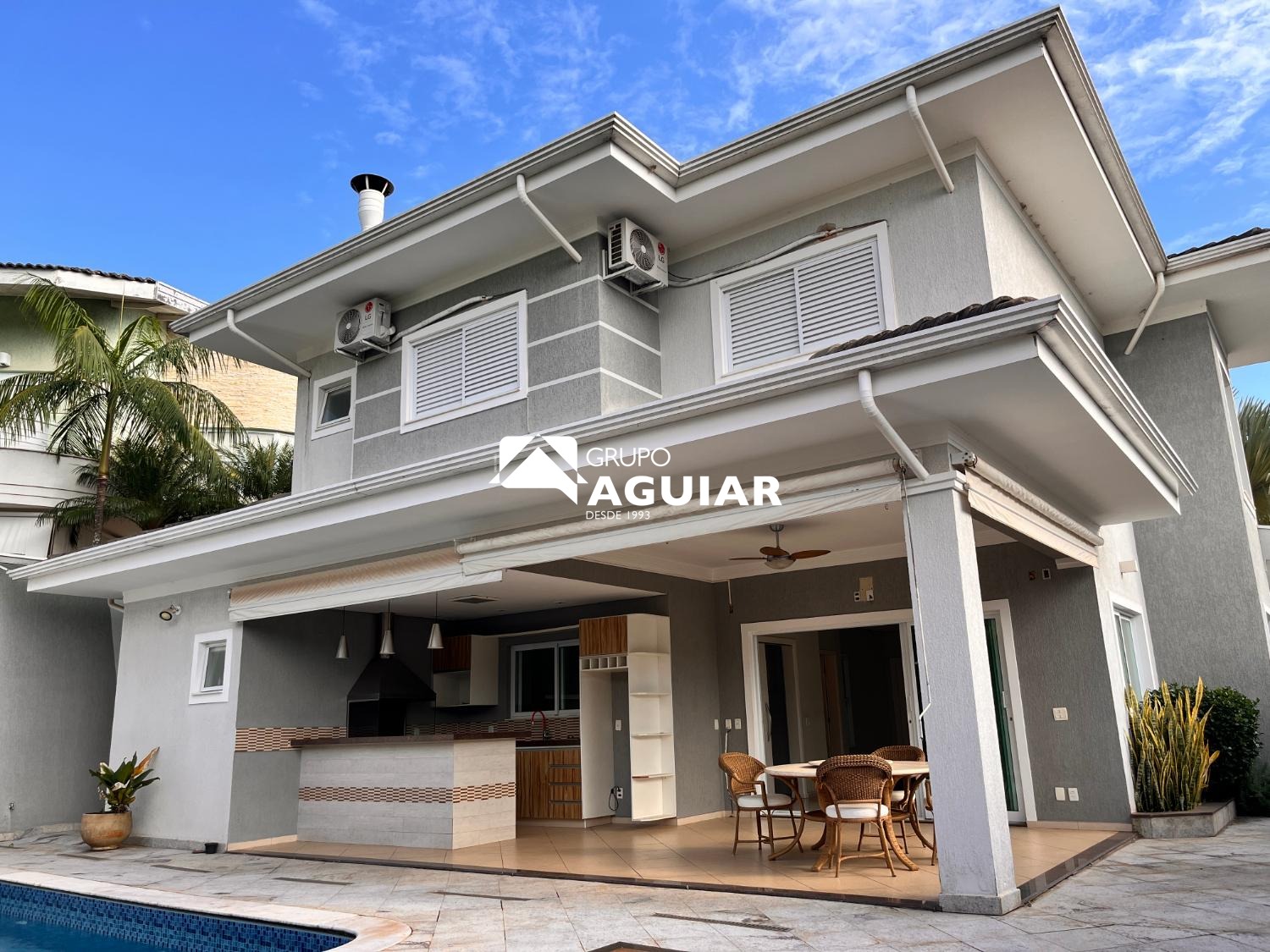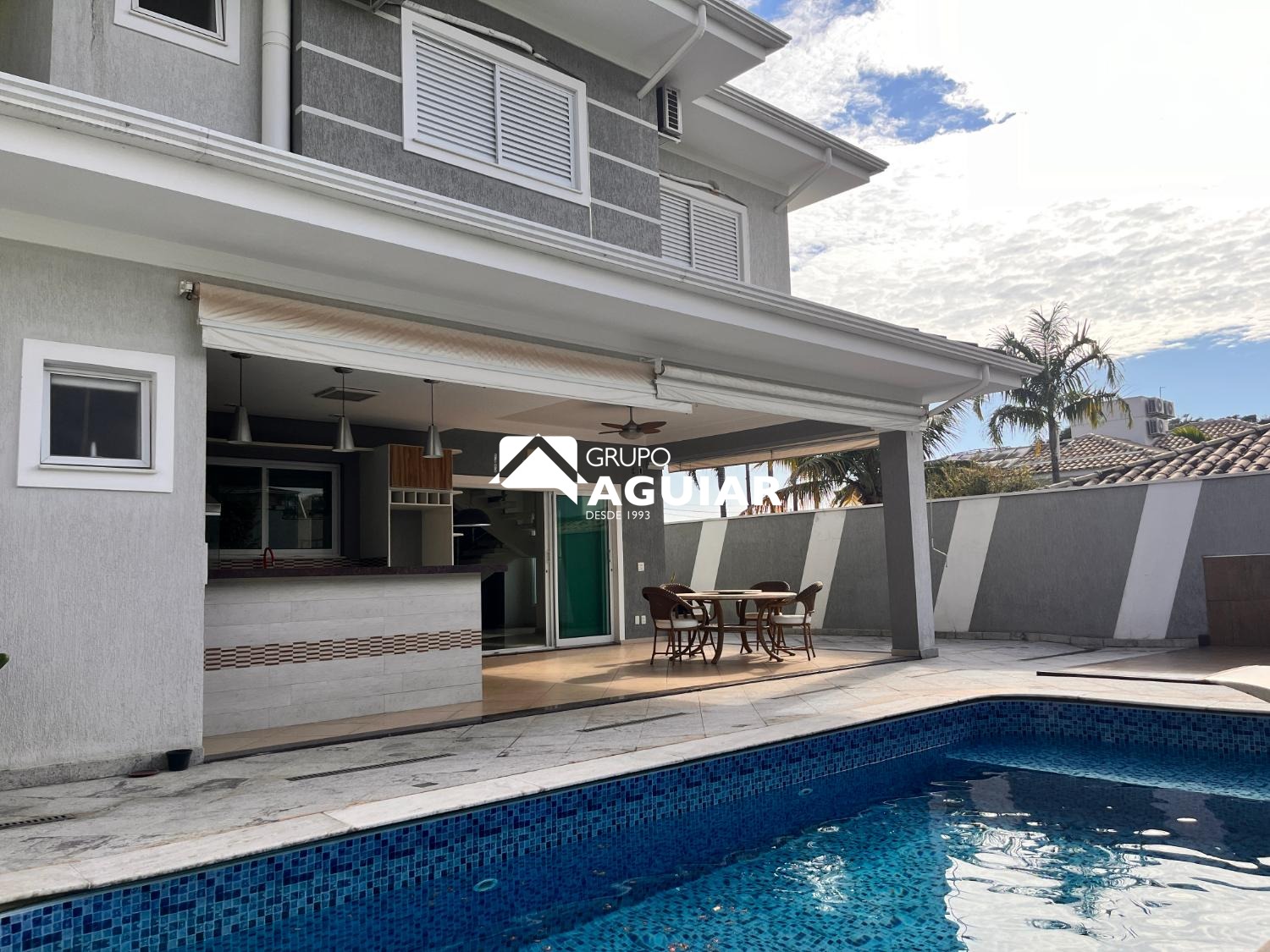 Na área externa, o lazer é um grande diferencial, com piscina de aproximadamente 24.000 litros e um espaço gourmet completo.