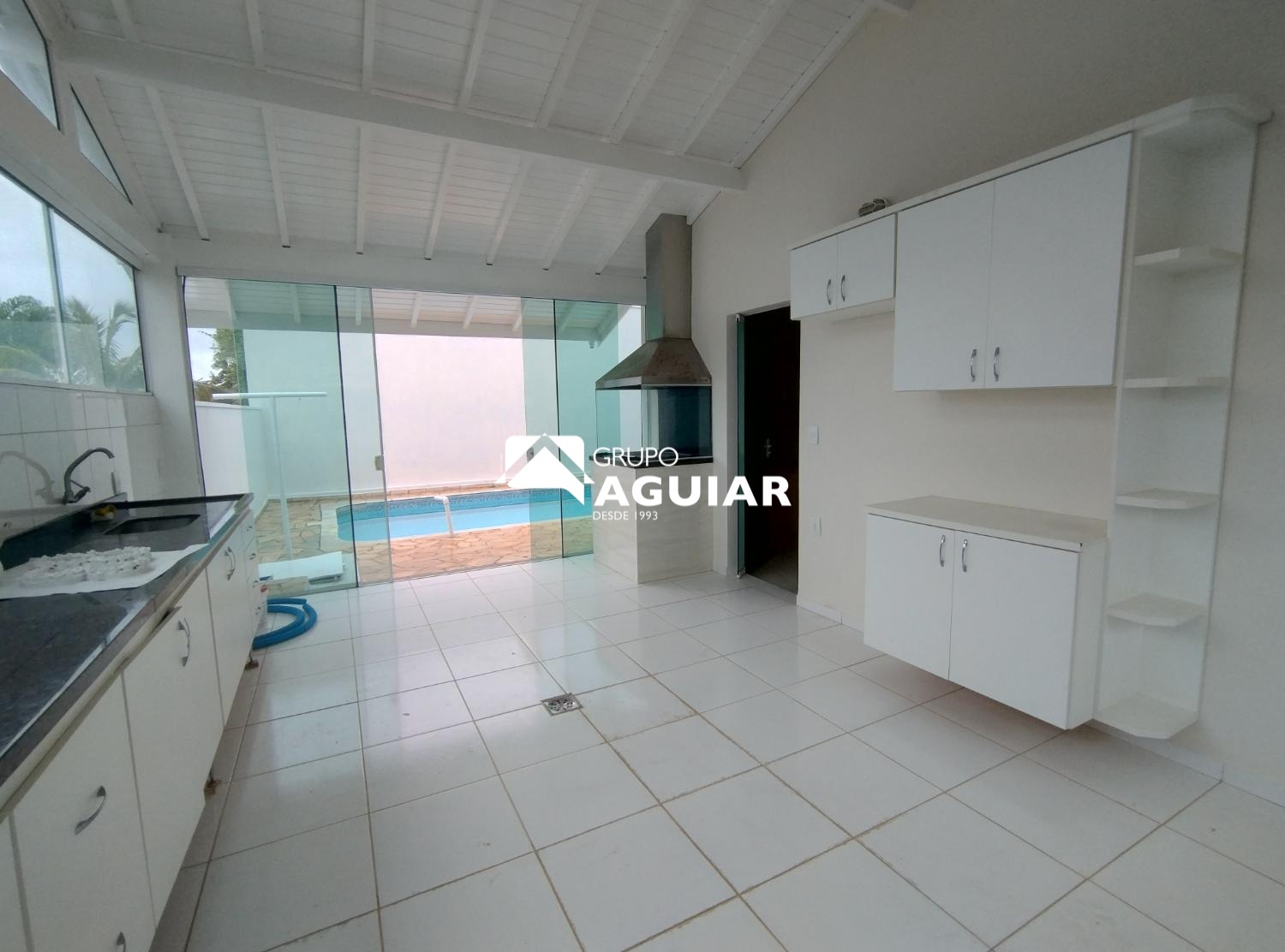 Amplo espaço interno e área gourmet com piscina