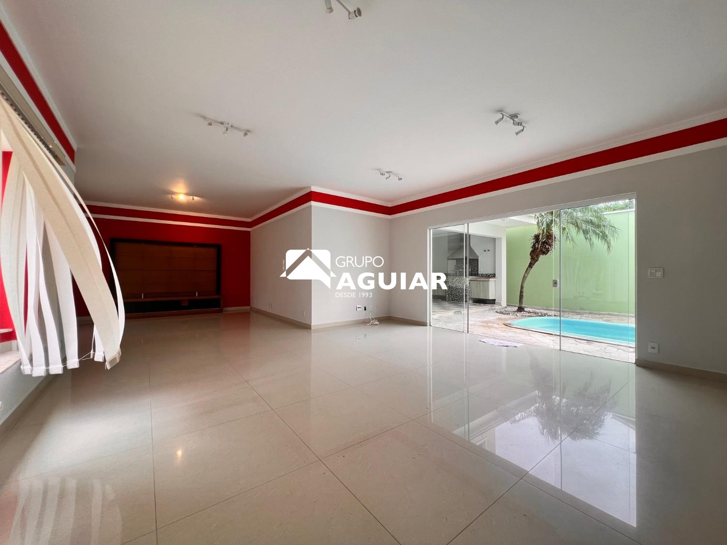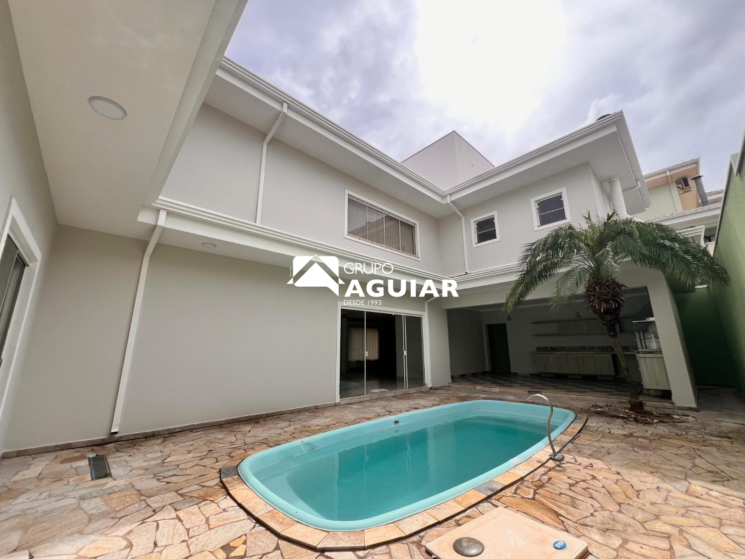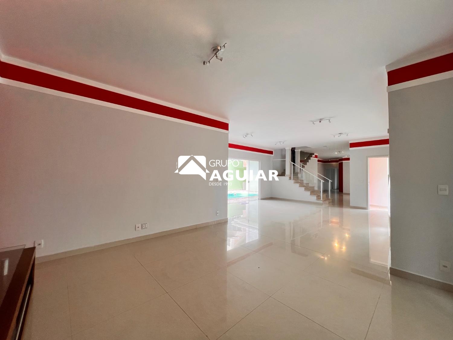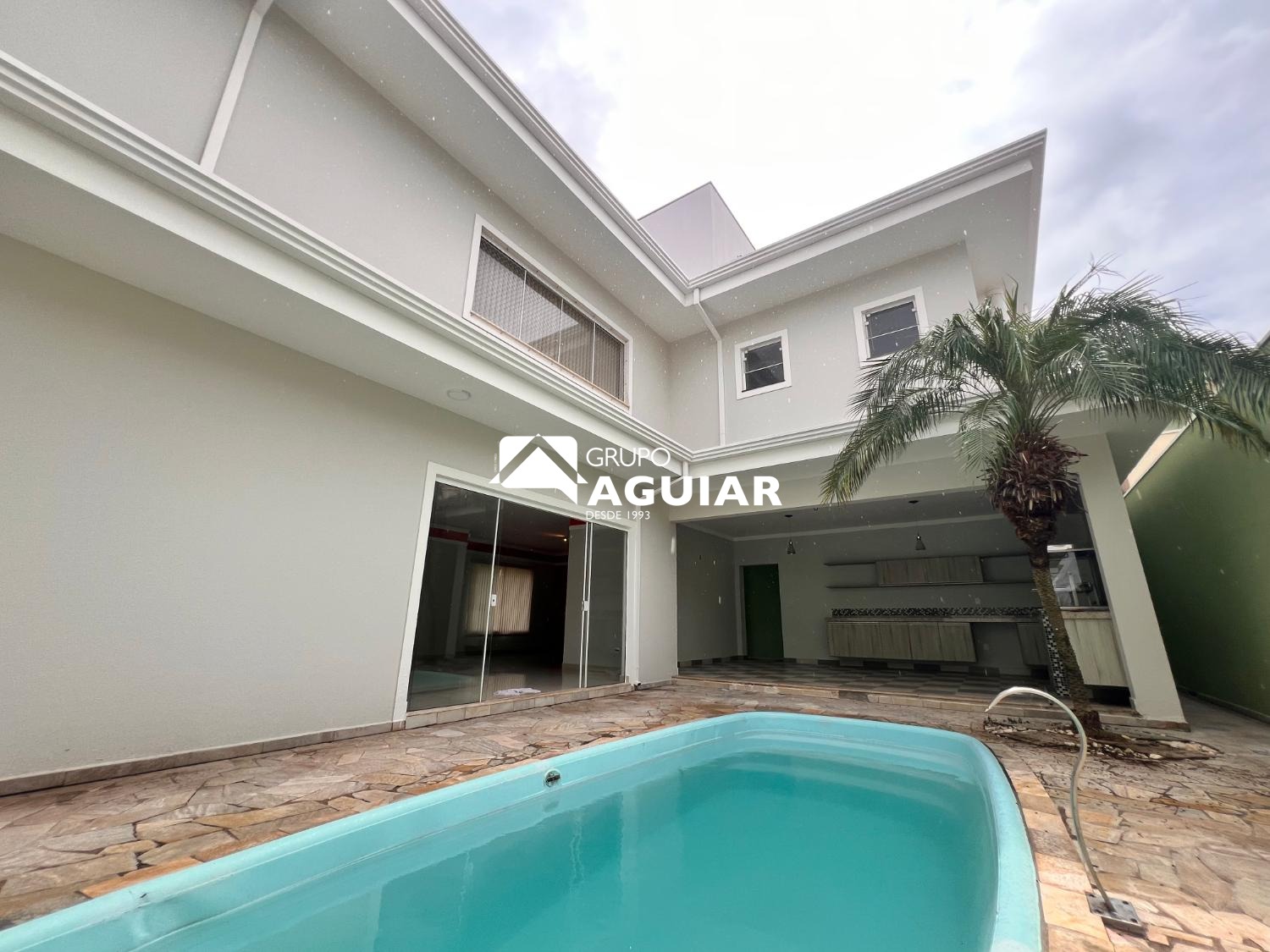 A residência apresenta acabamentos de alto padrão, com cozinha grande e planejada com ilha e cooktop, despensa, ampla sala de estar, sala de jantar, sala de TV, escritório e espaço gourmet com churrasqueira. A suíte master conta com closet e sacada, e todos os banheiros possuem box blindex. A casa possui piscina, quintal, lavanderia, lavabo, depósito e uma área íntima muito espaçosa no andar superior.