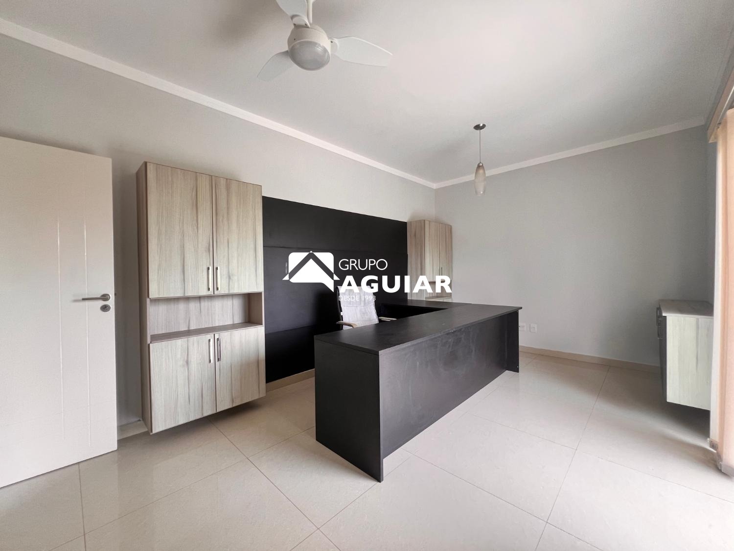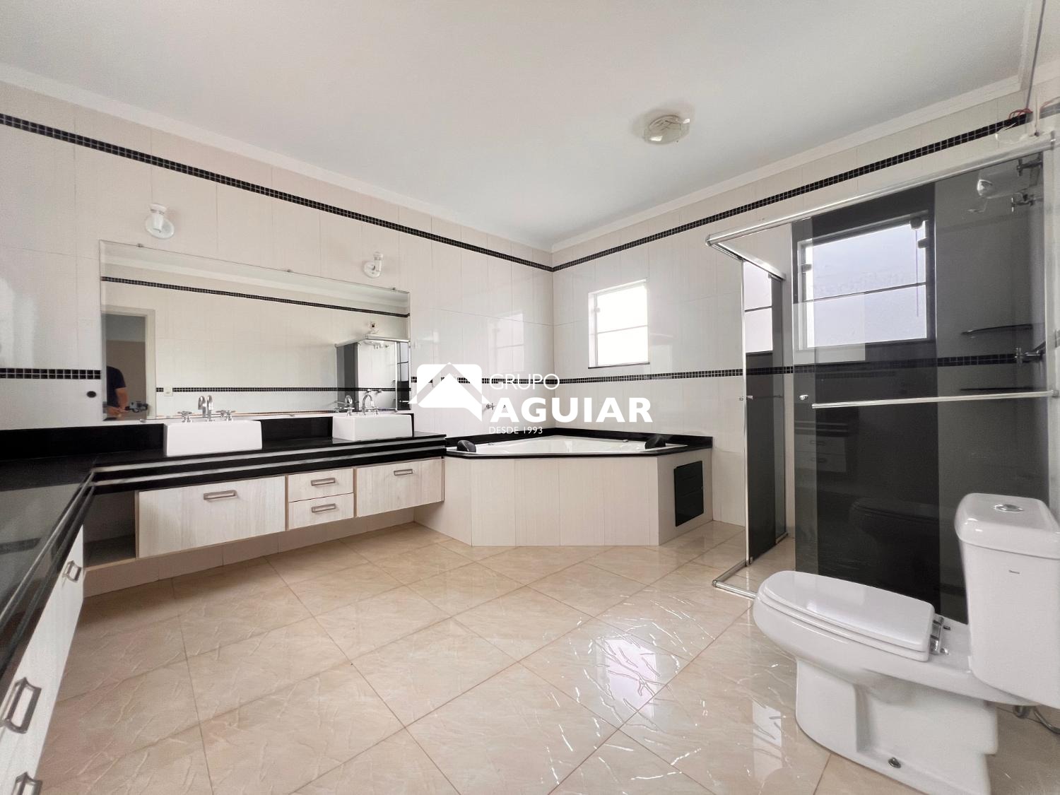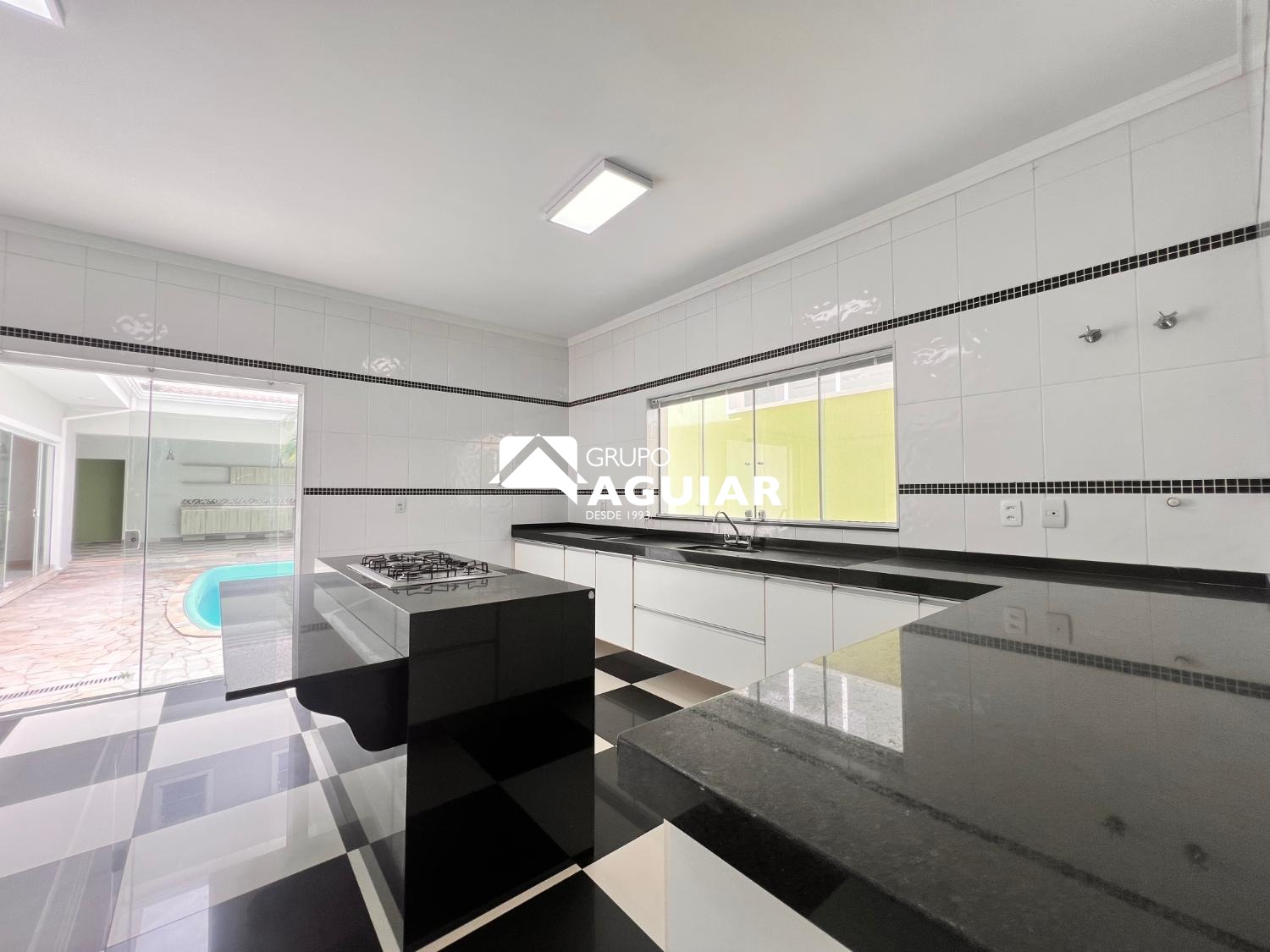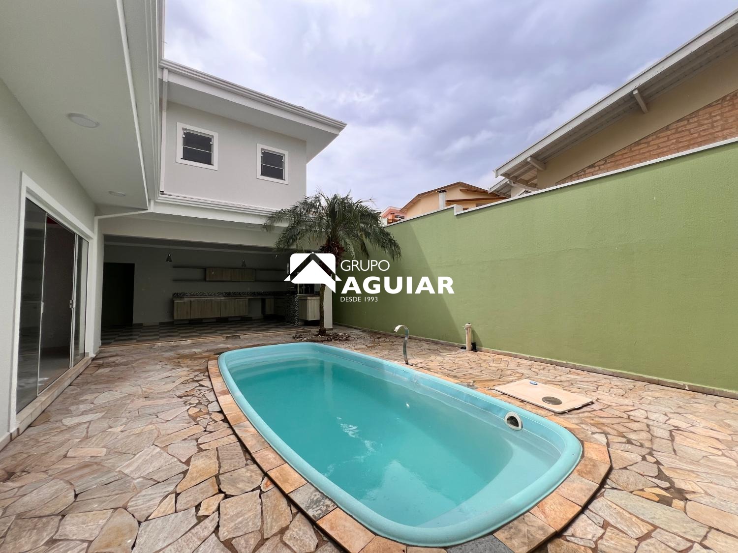 A residência apresenta acabamentos de alto padrão, com cozinha grande e planejada com ilha e cooktop, despensa, ampla sala de estar, sala de jantar, sala de TV, escritório e espaço gourmet com churrasqueira. A suíte master conta com closet e sacada, e todos os banheiros possuem box blindex. A casa possui piscina, quintal, lavanderia, lavabo, depósito e uma área íntima muito espaçosa no andar superior.