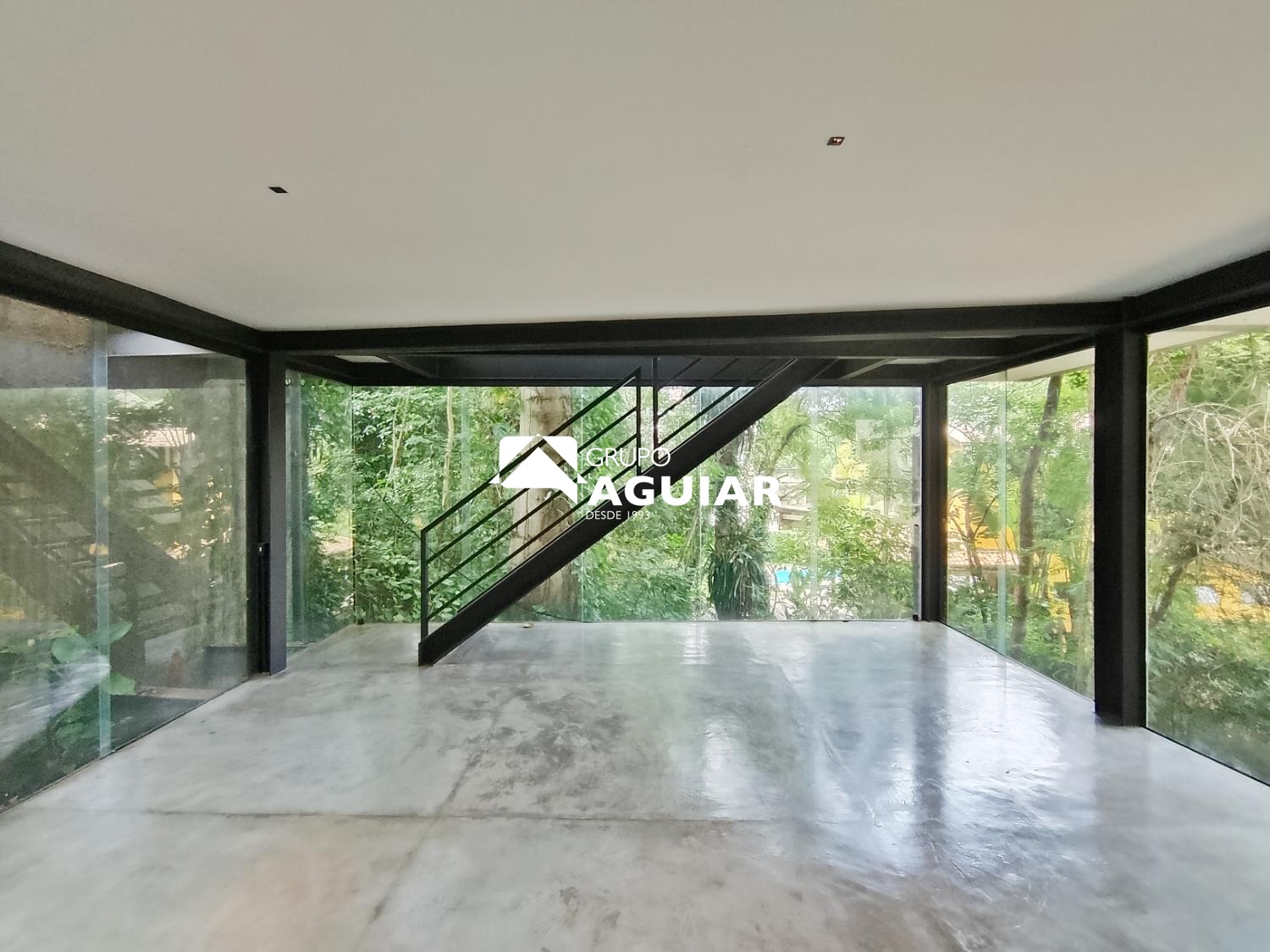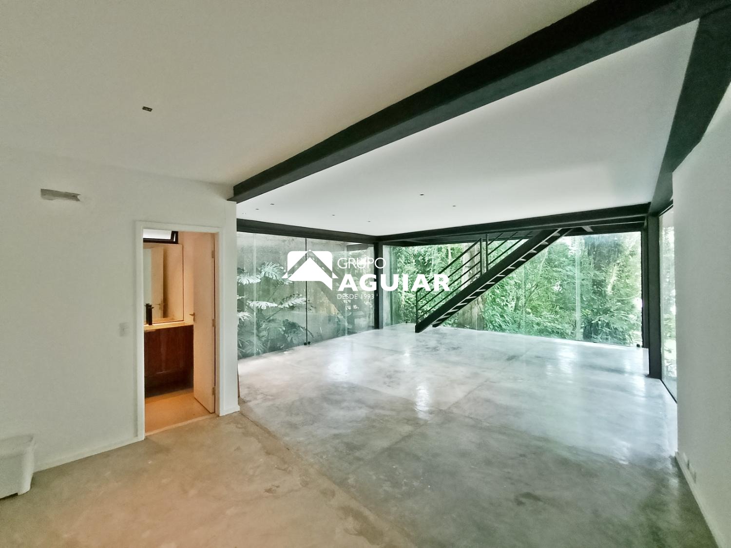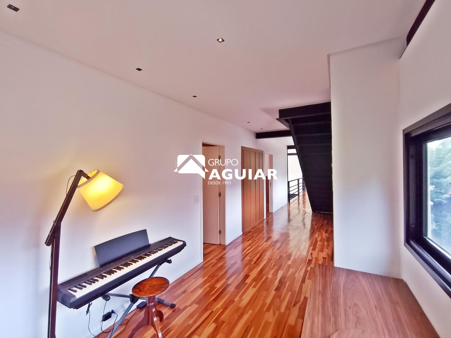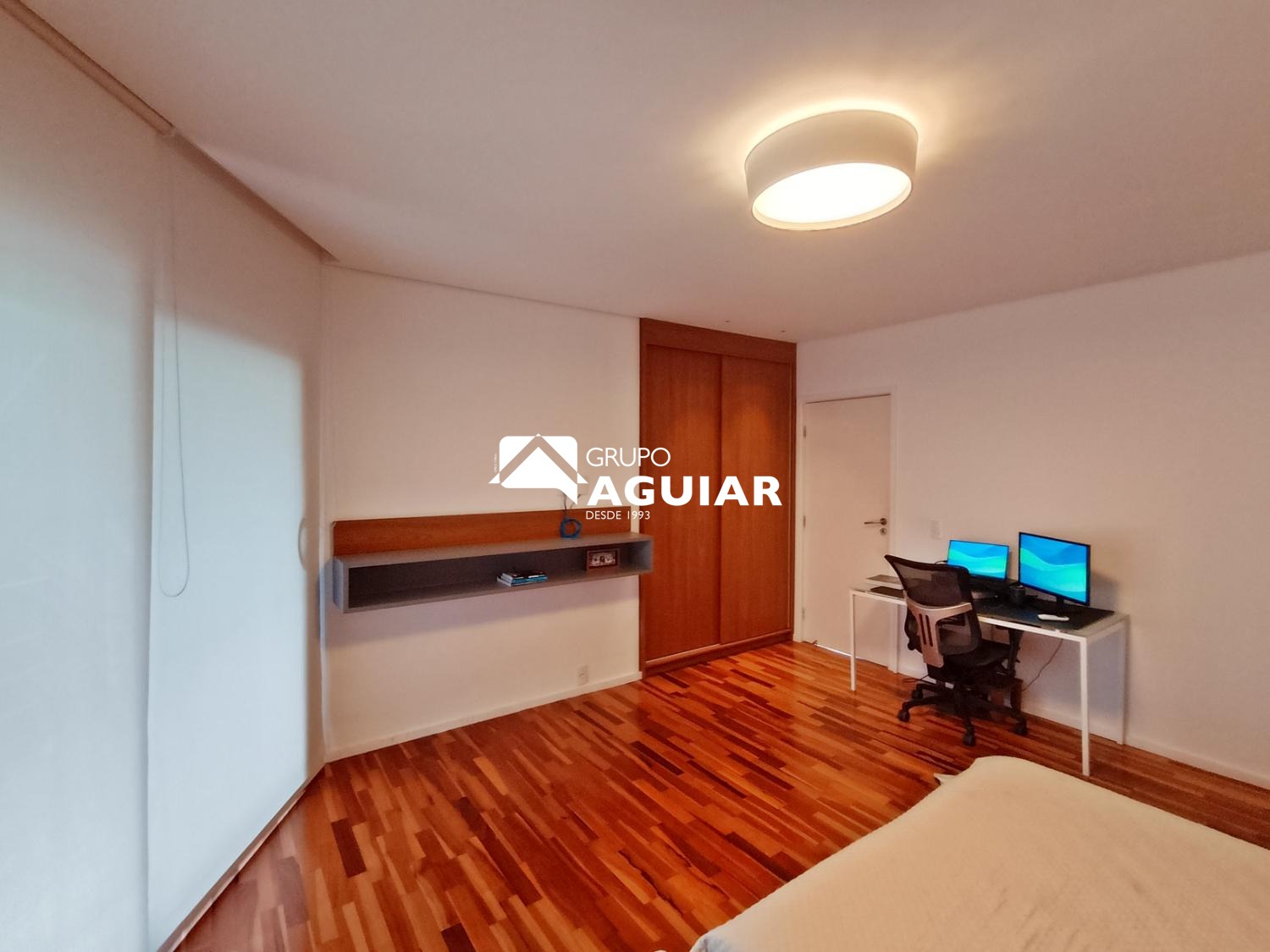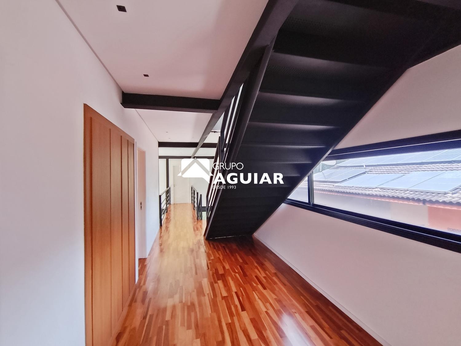 No pavimento superior, as três suítes contam com armários planejados e vista para o verde, garantindo privacidade e conforto.