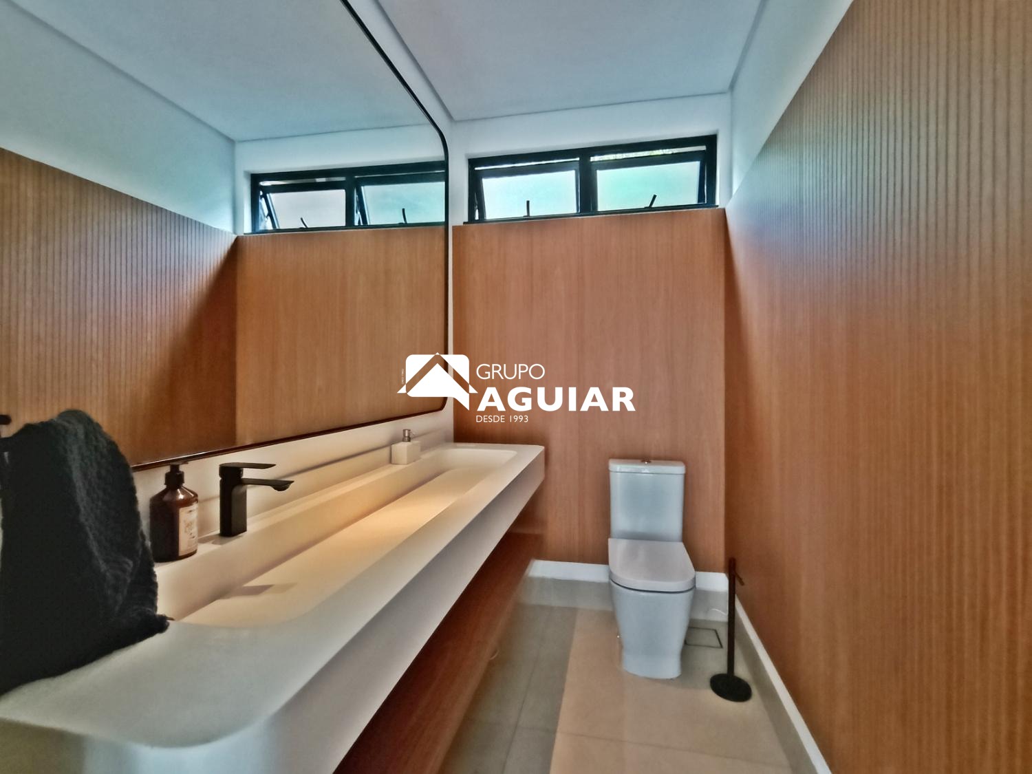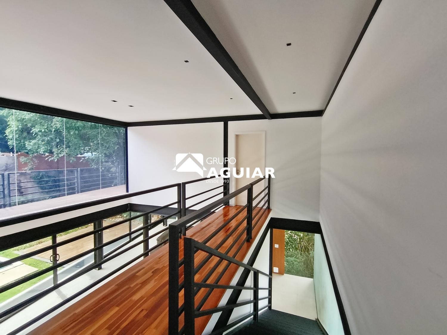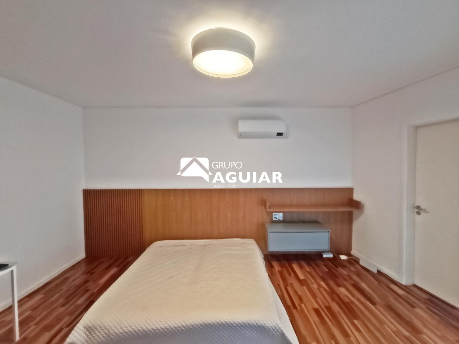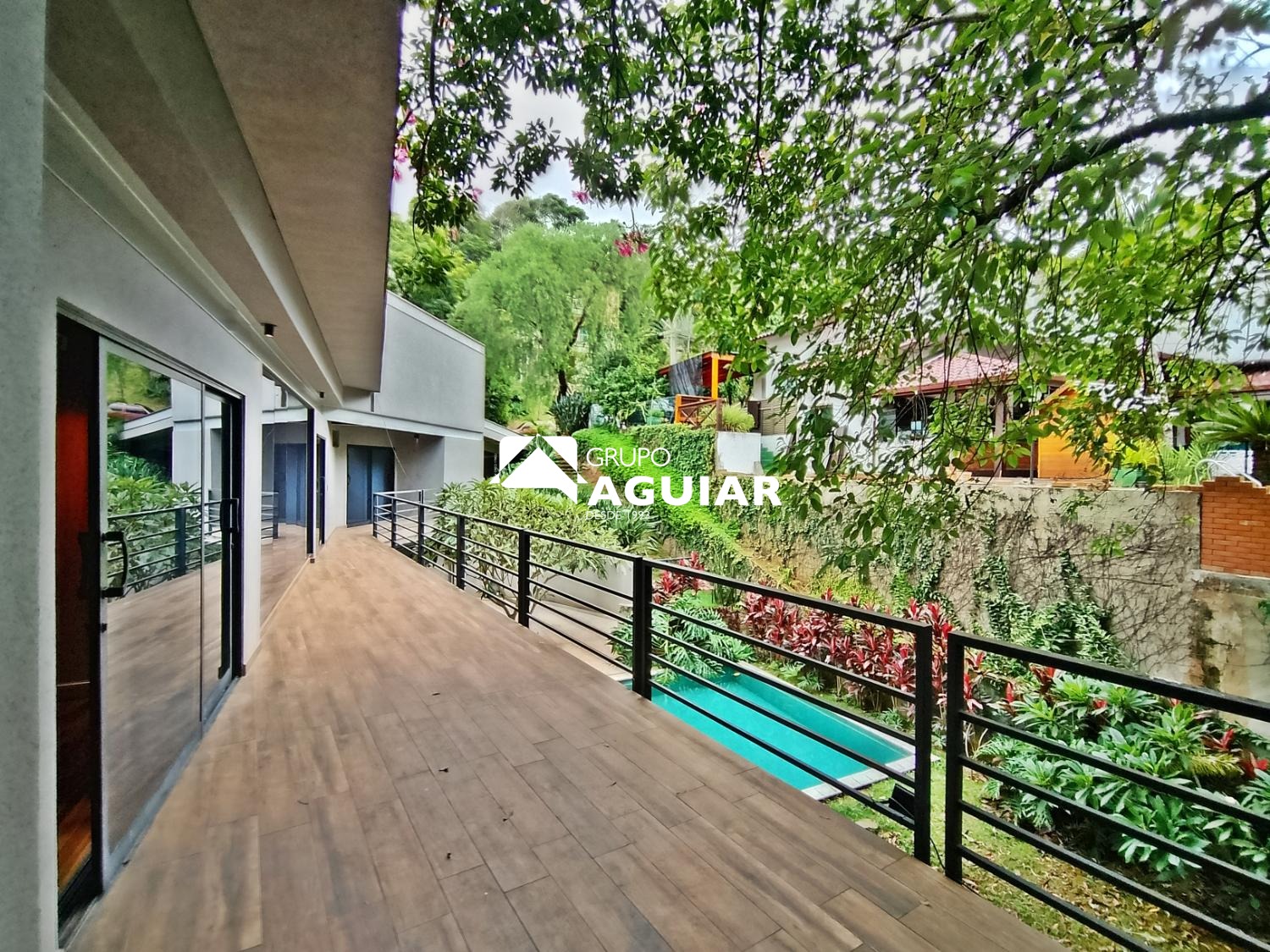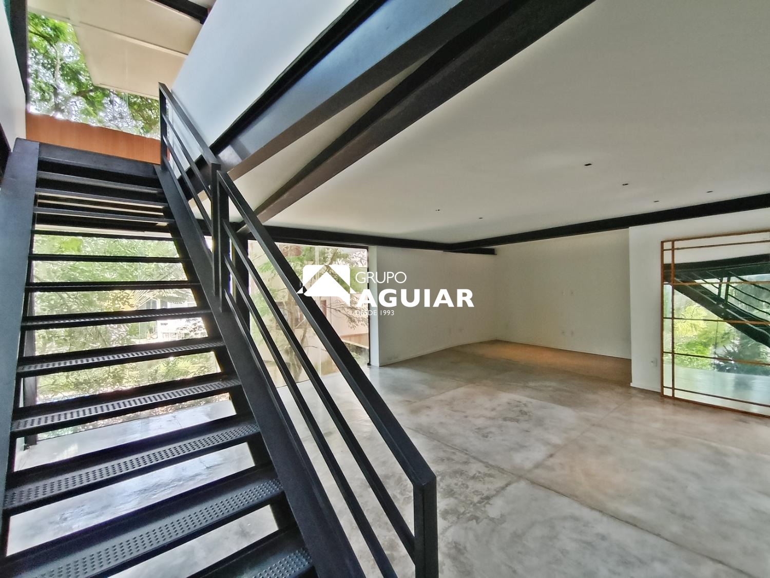 No pavimento superior, as três suítes contam com armários planejados e vista para o verde, garantindo privacidade e conforto.
