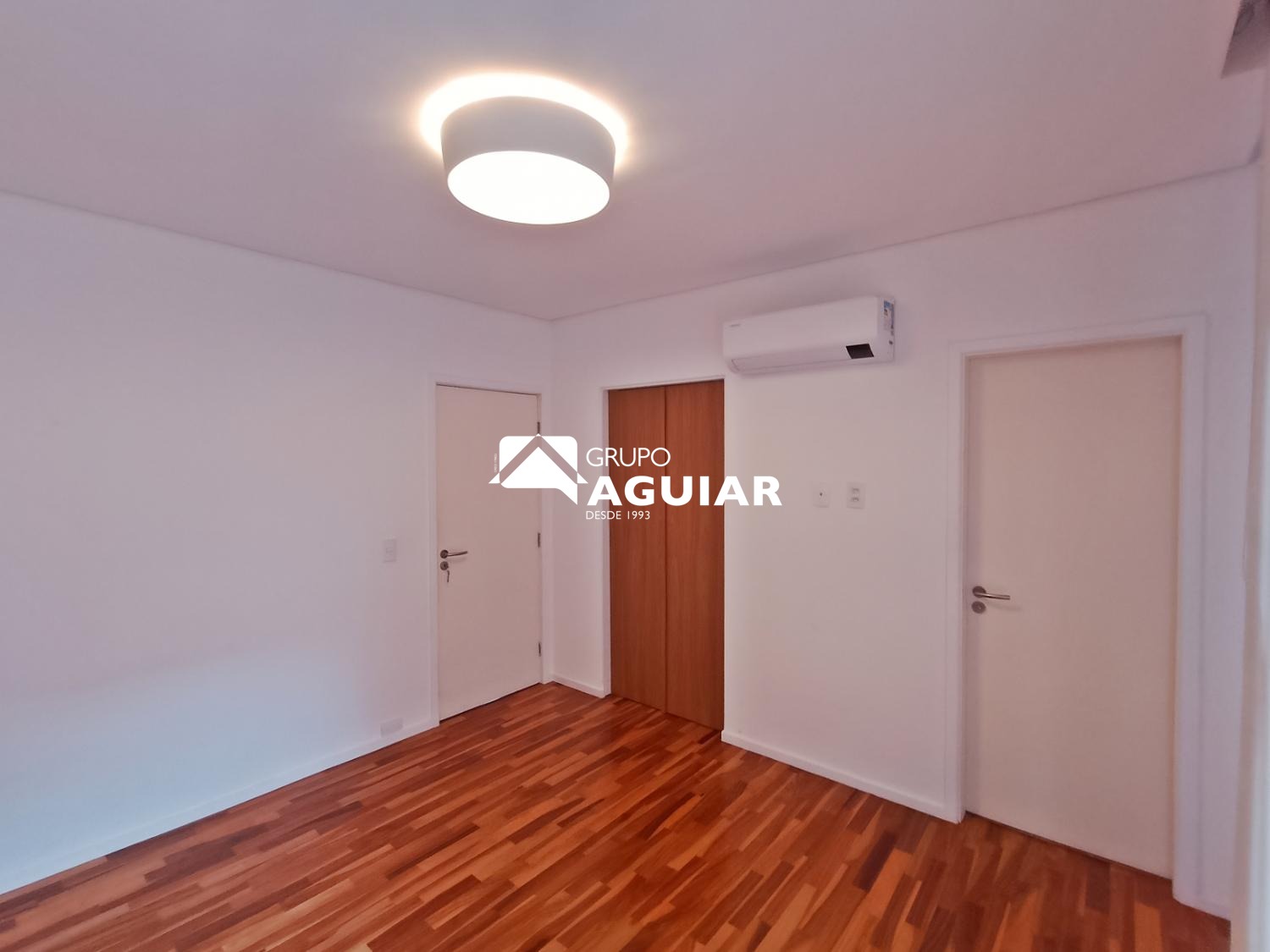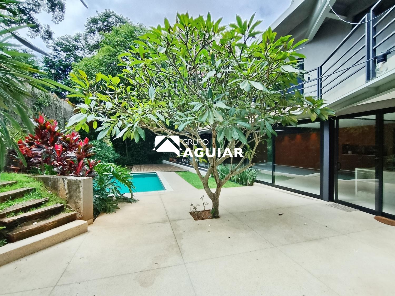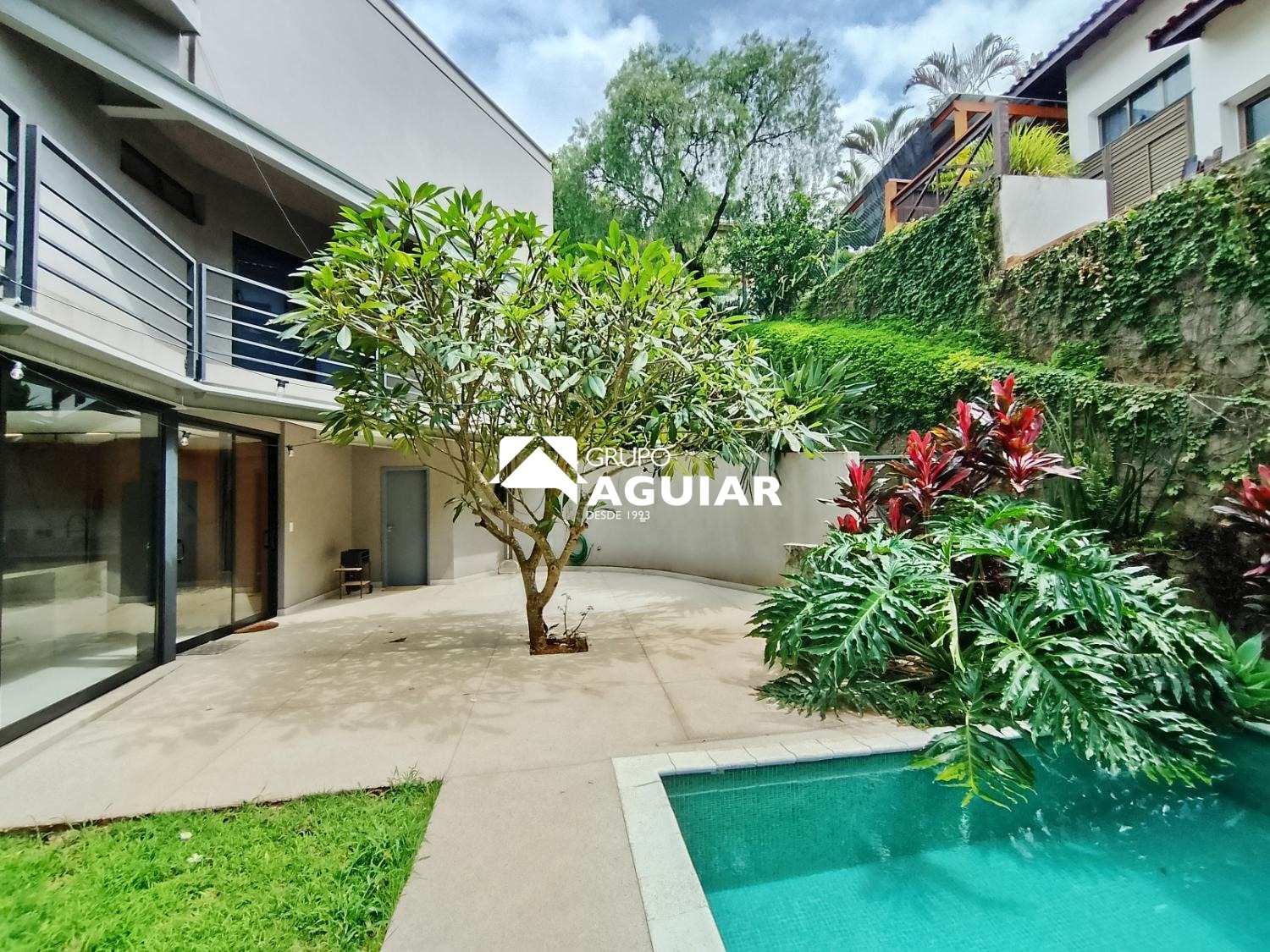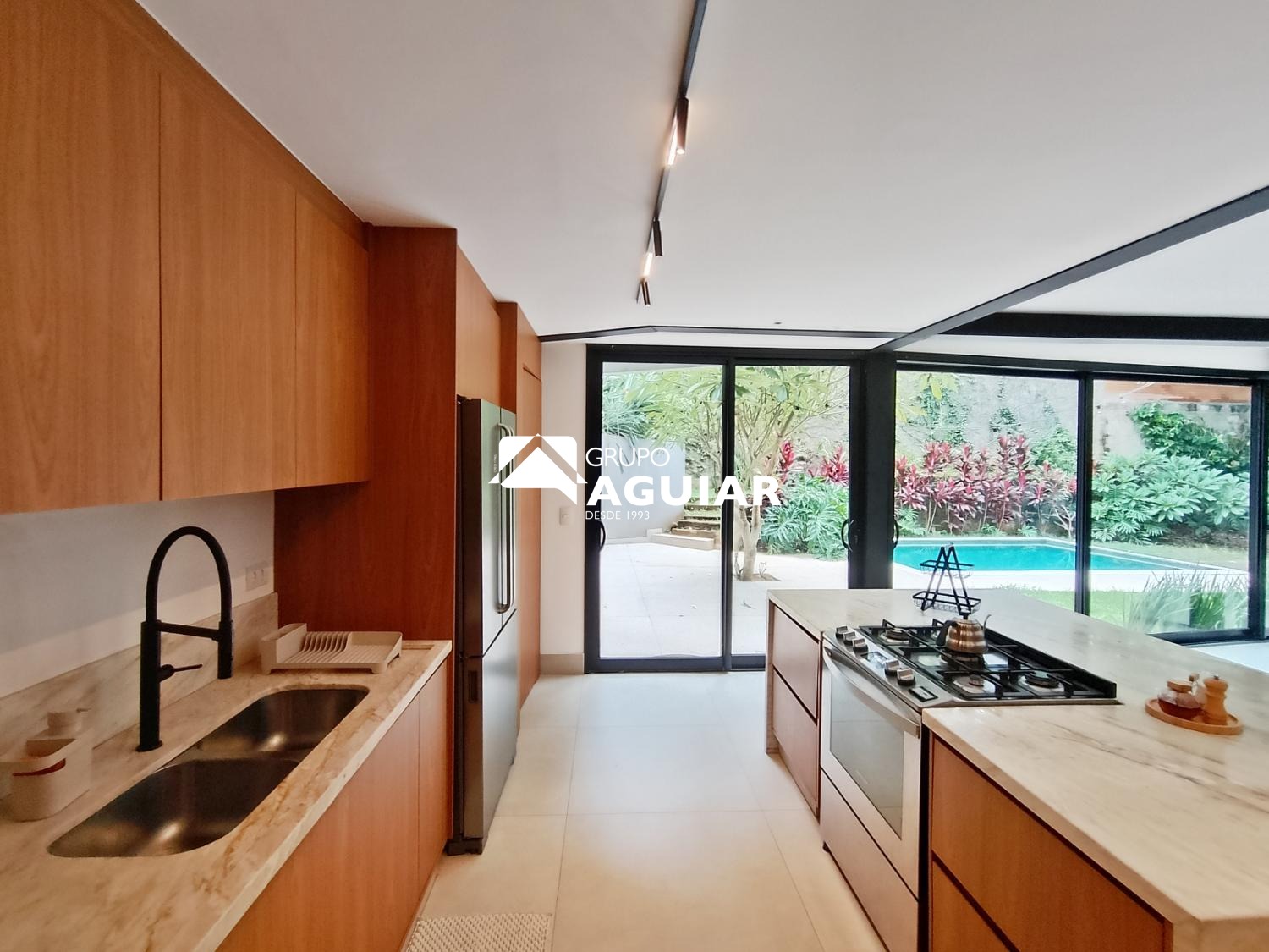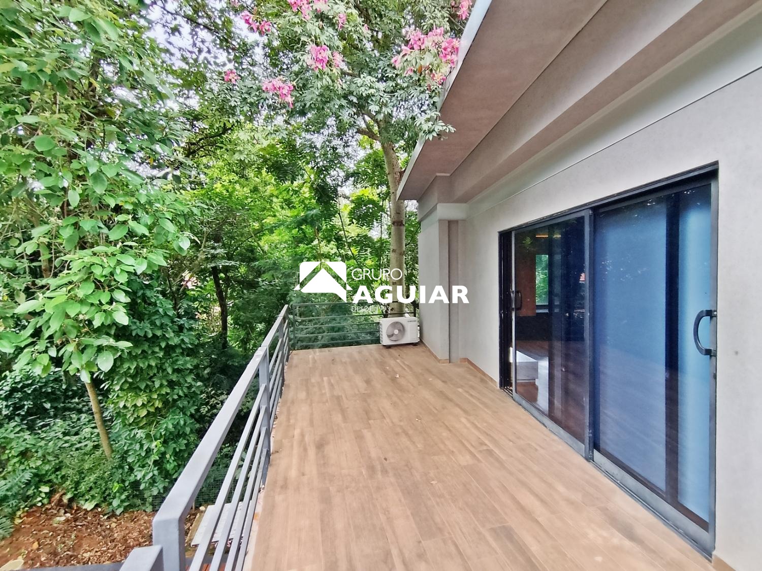 No pavimento superior, as três suítes contam com armários planejados e vista para o verde, garantindo privacidade e conforto.