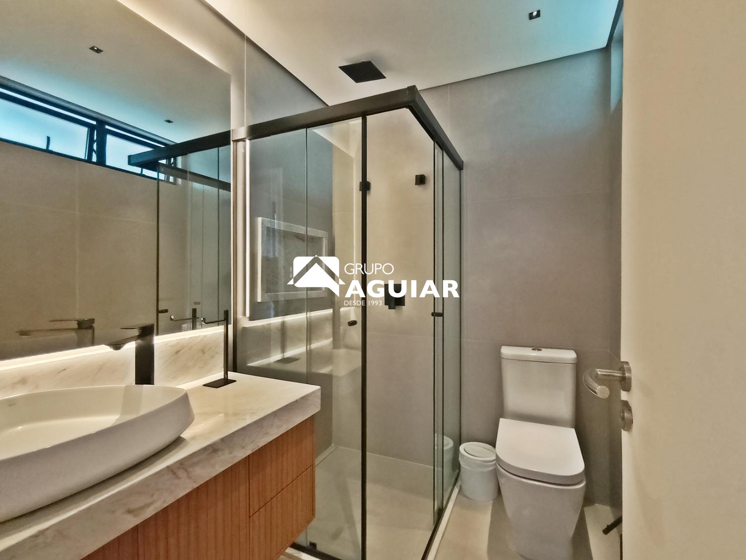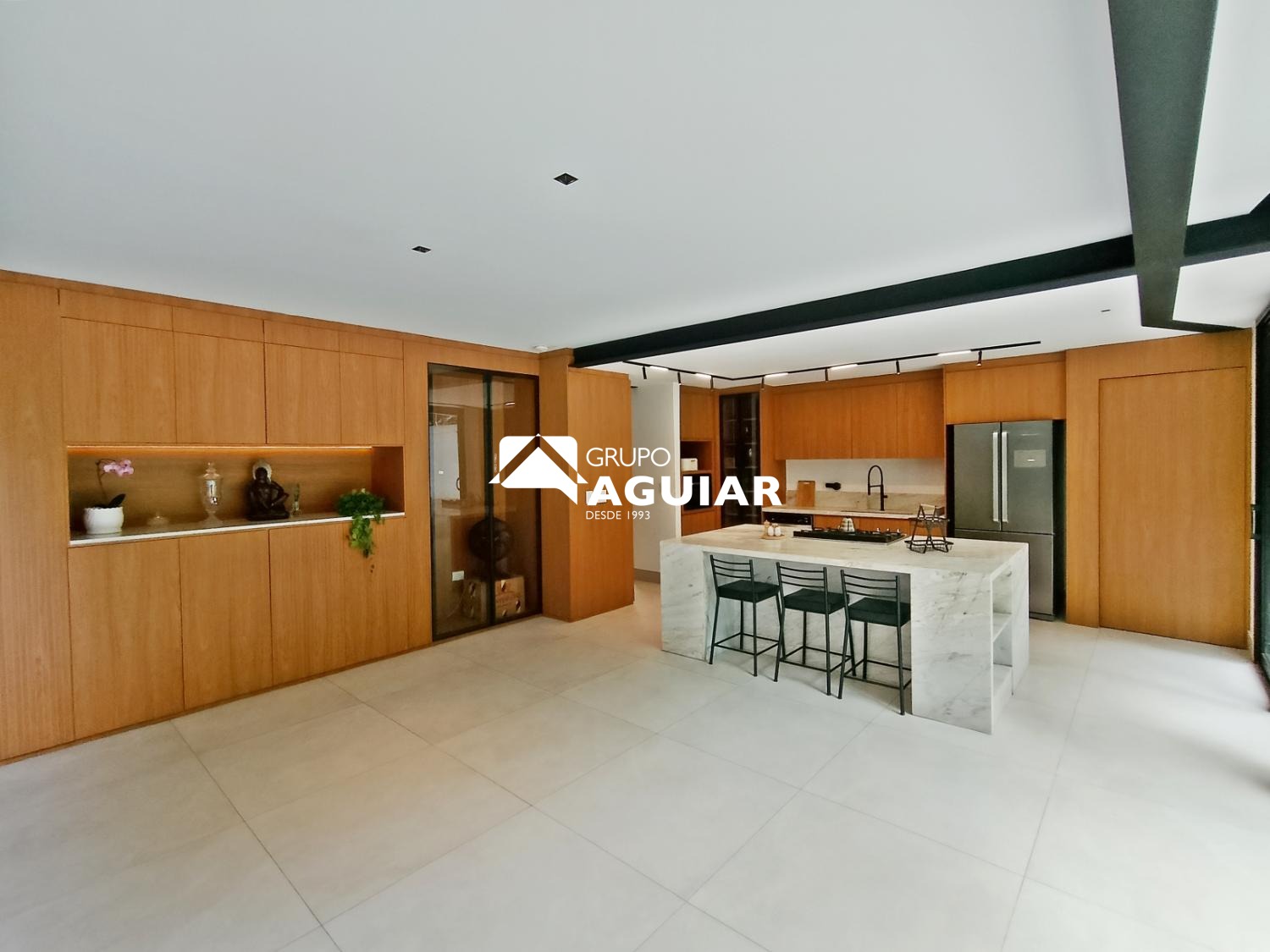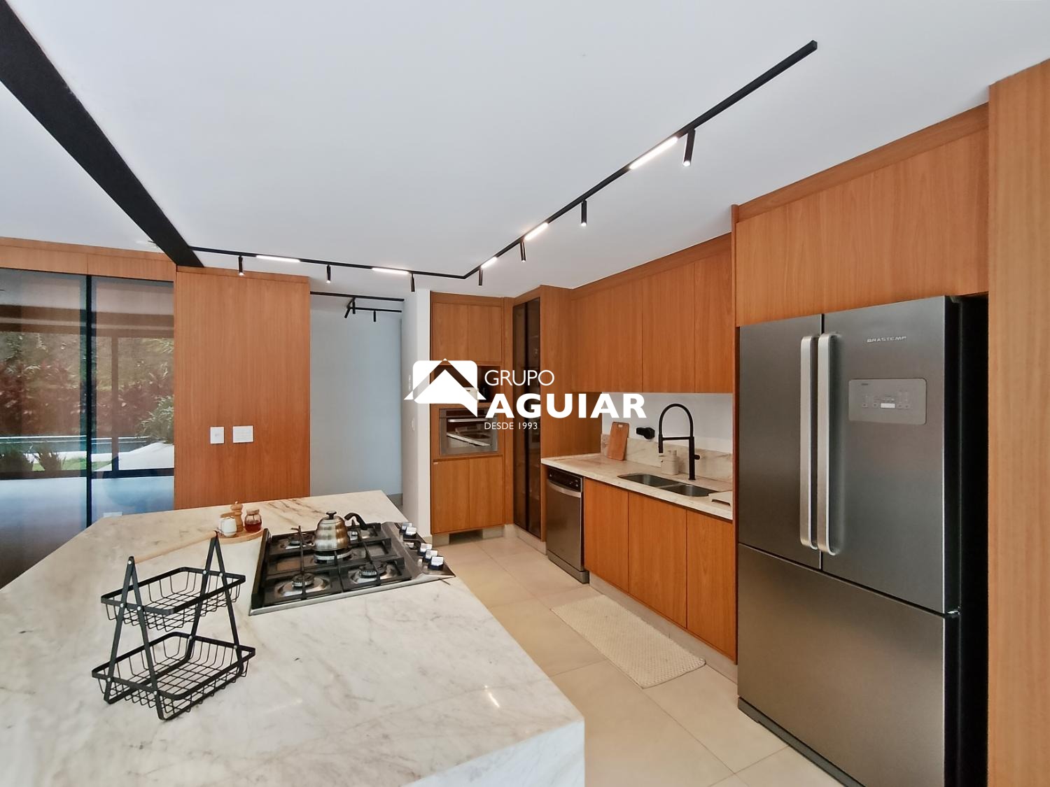 O living possui integração com sala de jantar e espaço gourmet, criando um ambiente ideal para receber convidados. A cozinha planejada oferece excelente funcionalidade e conexão direta com a área externa.
