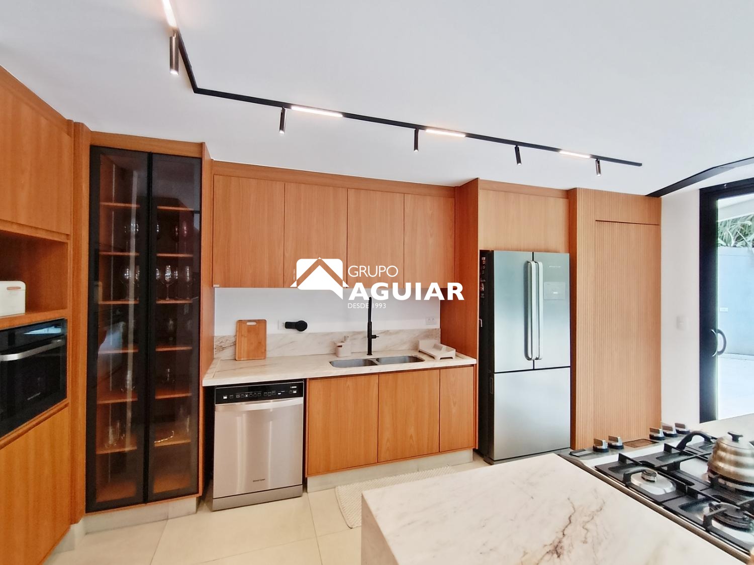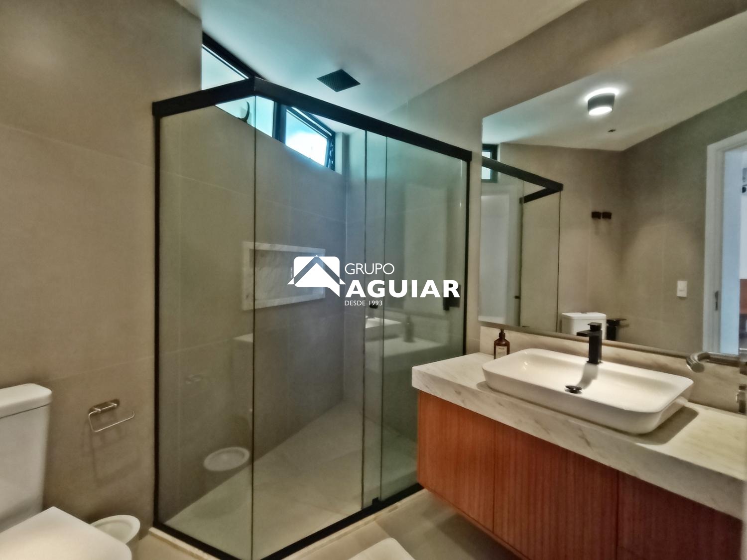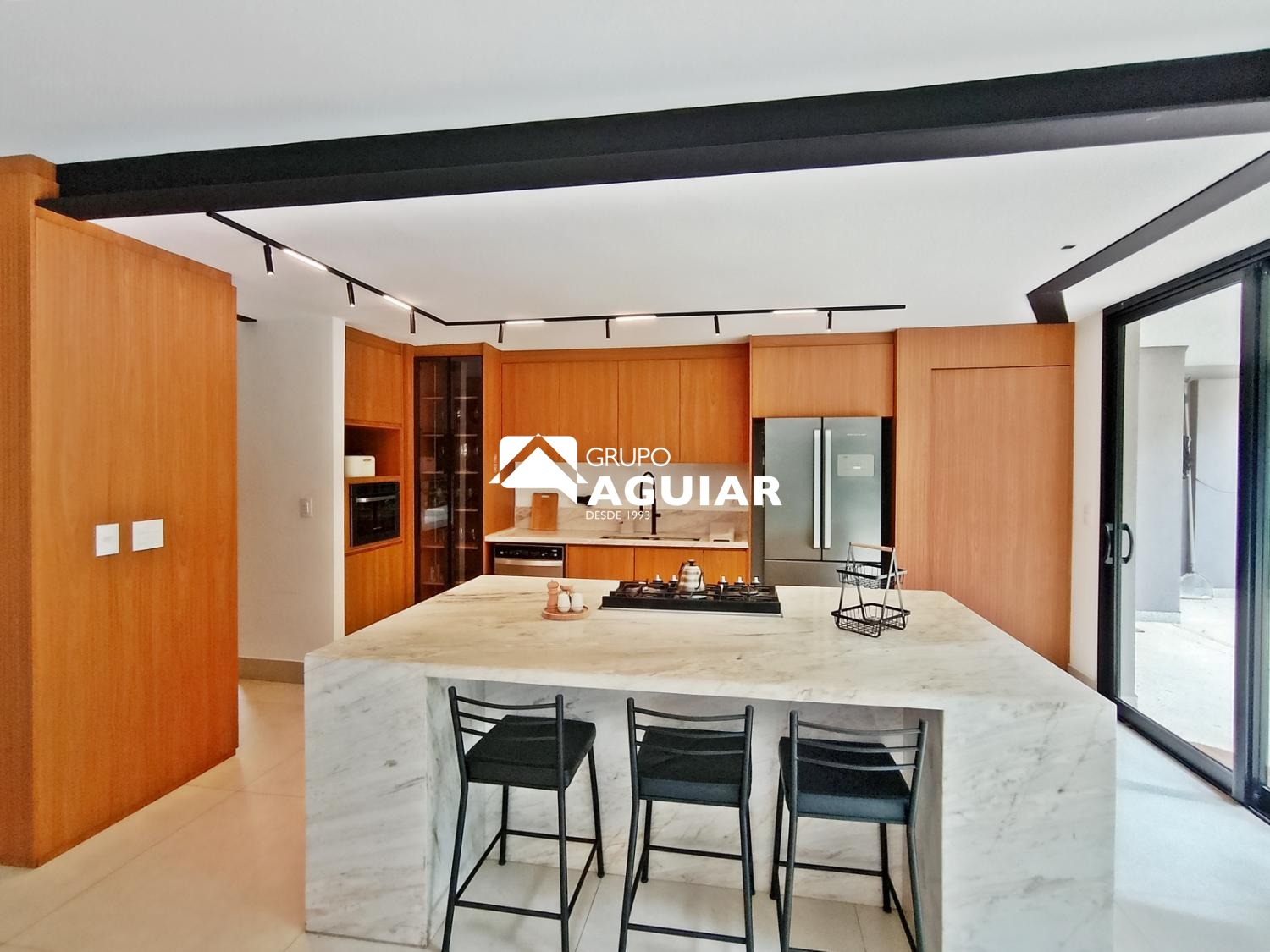 O living possui integração com sala de jantar e espaço gourmet, criando um ambiente ideal para receber convidados. A cozinha planejada oferece excelente funcionalidade e conexão direta com a área externa.