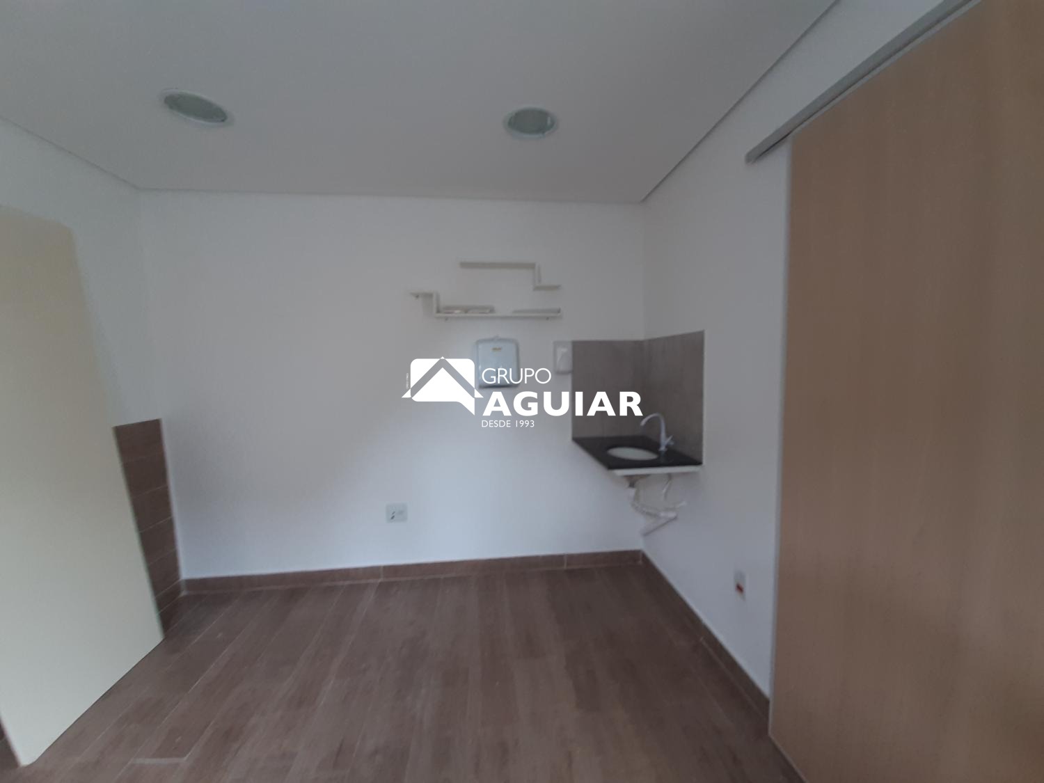 Com 54 metros quadrados de área útil e 100 metros quadrados de área total. O imóvel, desocupado, oferece 3 salas independentes, sendo duas salas com ar condicionado, cozinha e 1 banheiro de uso comunitário. Possui 3 vagas de garagem descobertas sendo uma no sistema gaveta rotativa e duas rotativa. Está localizado no bairro Vila El Aiub.